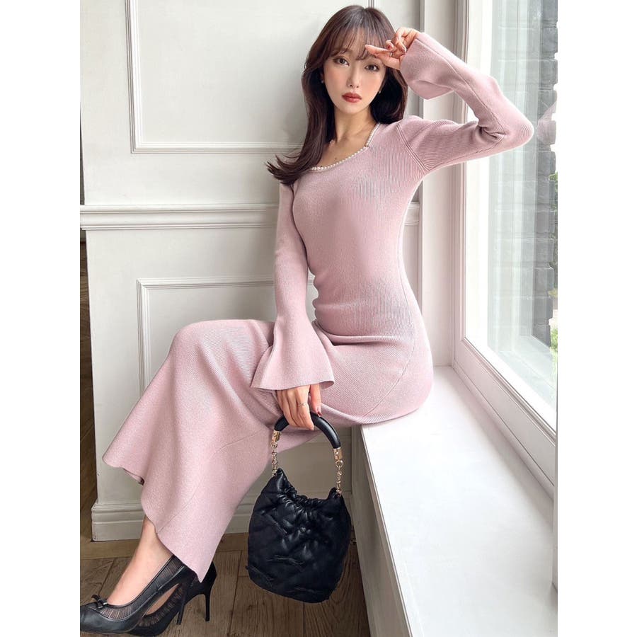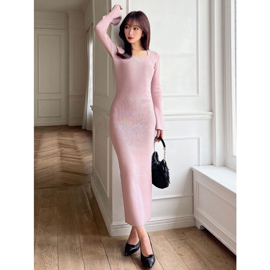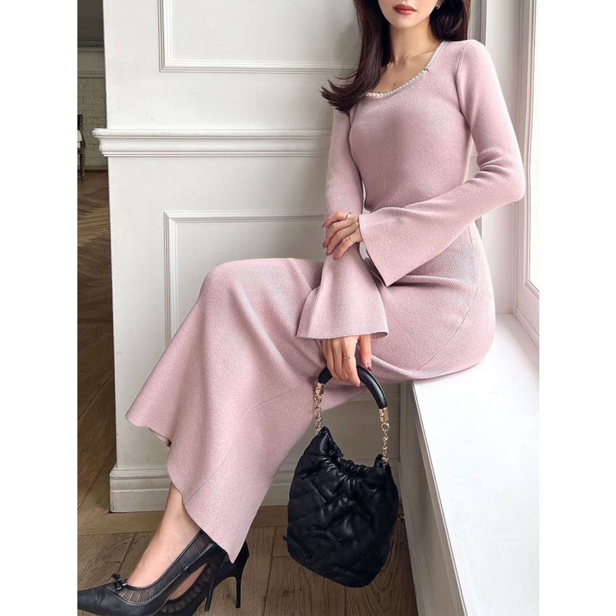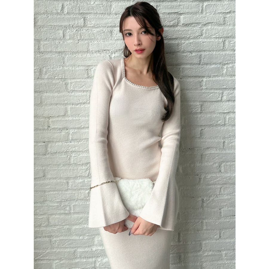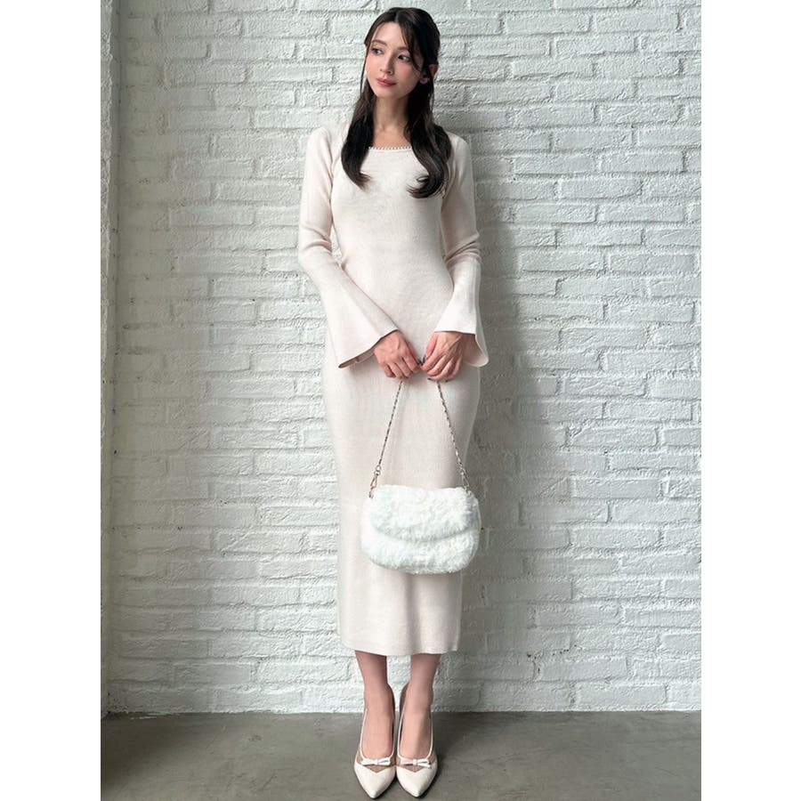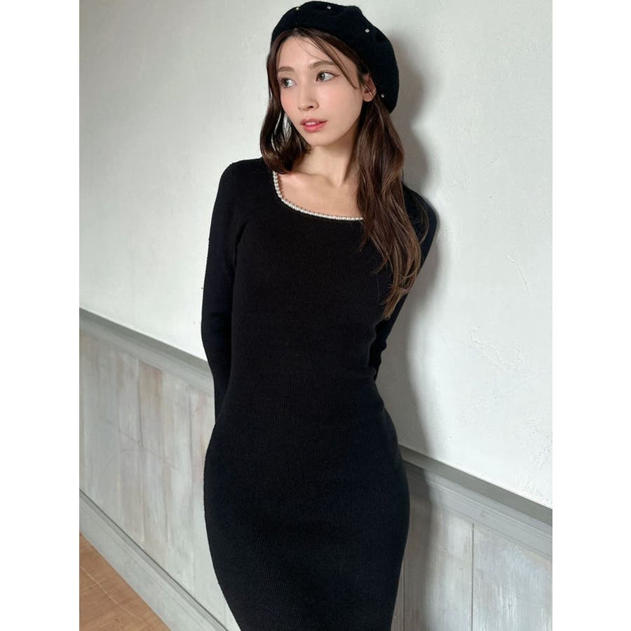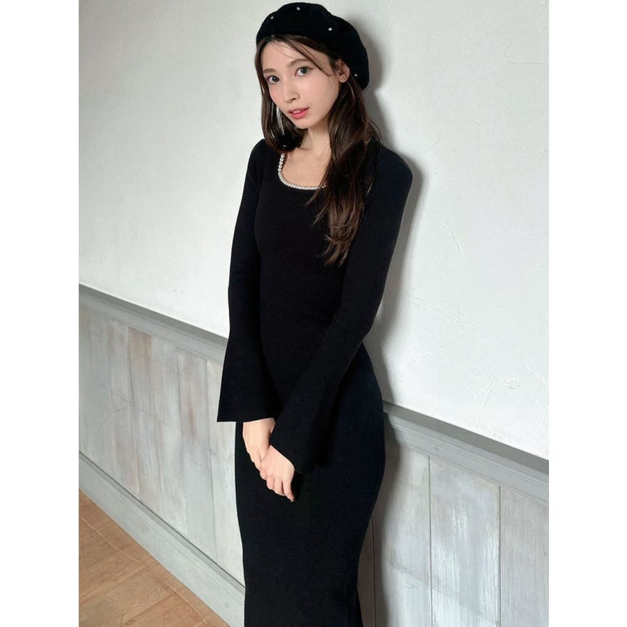 デコルテパールニットワンピース