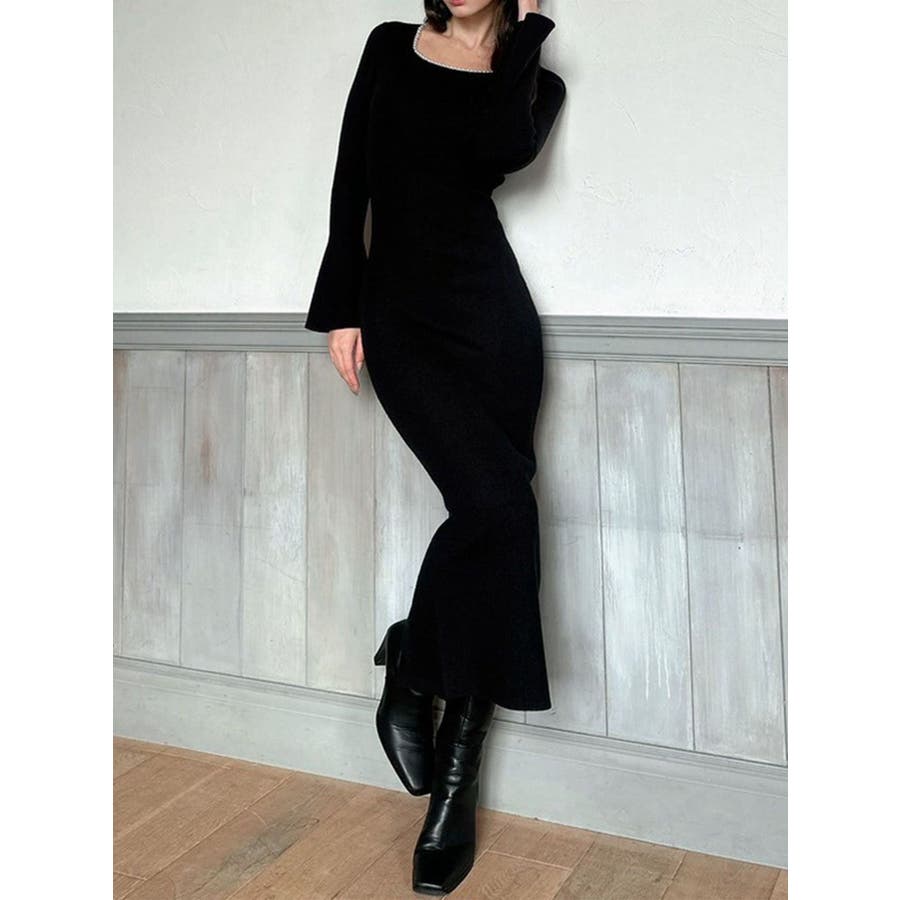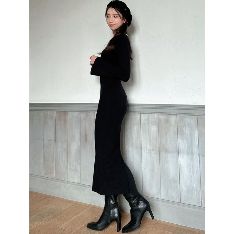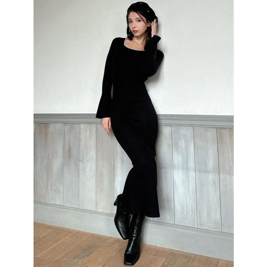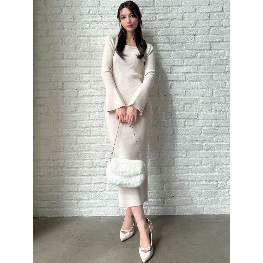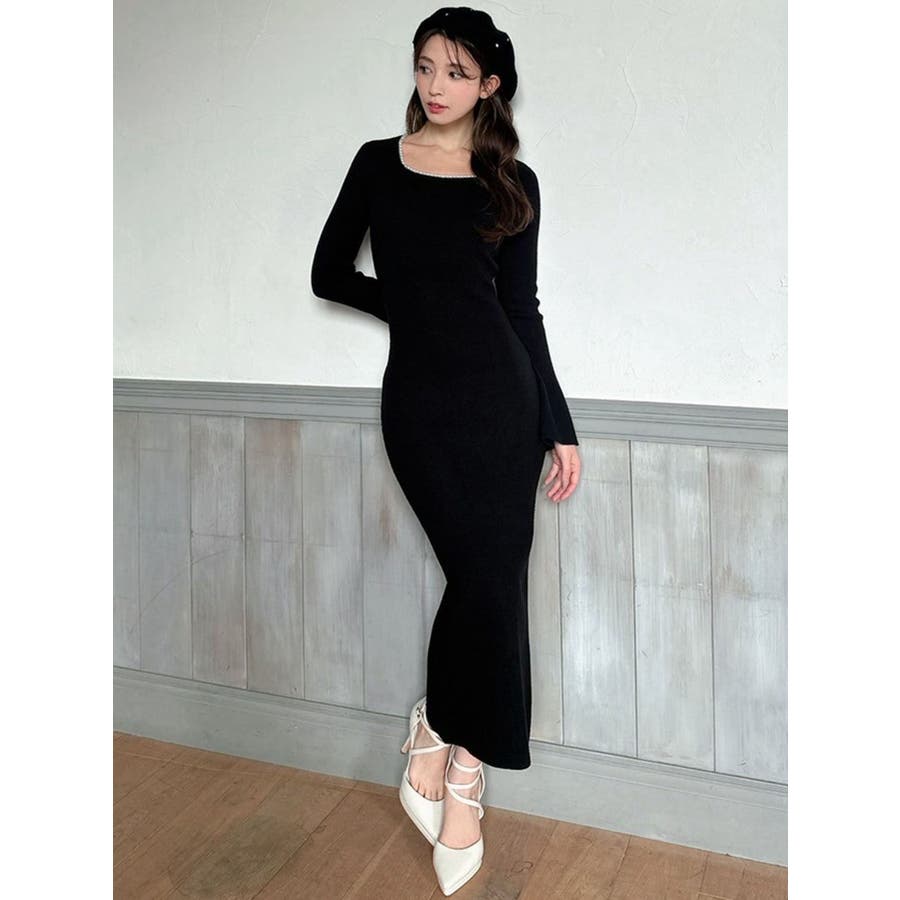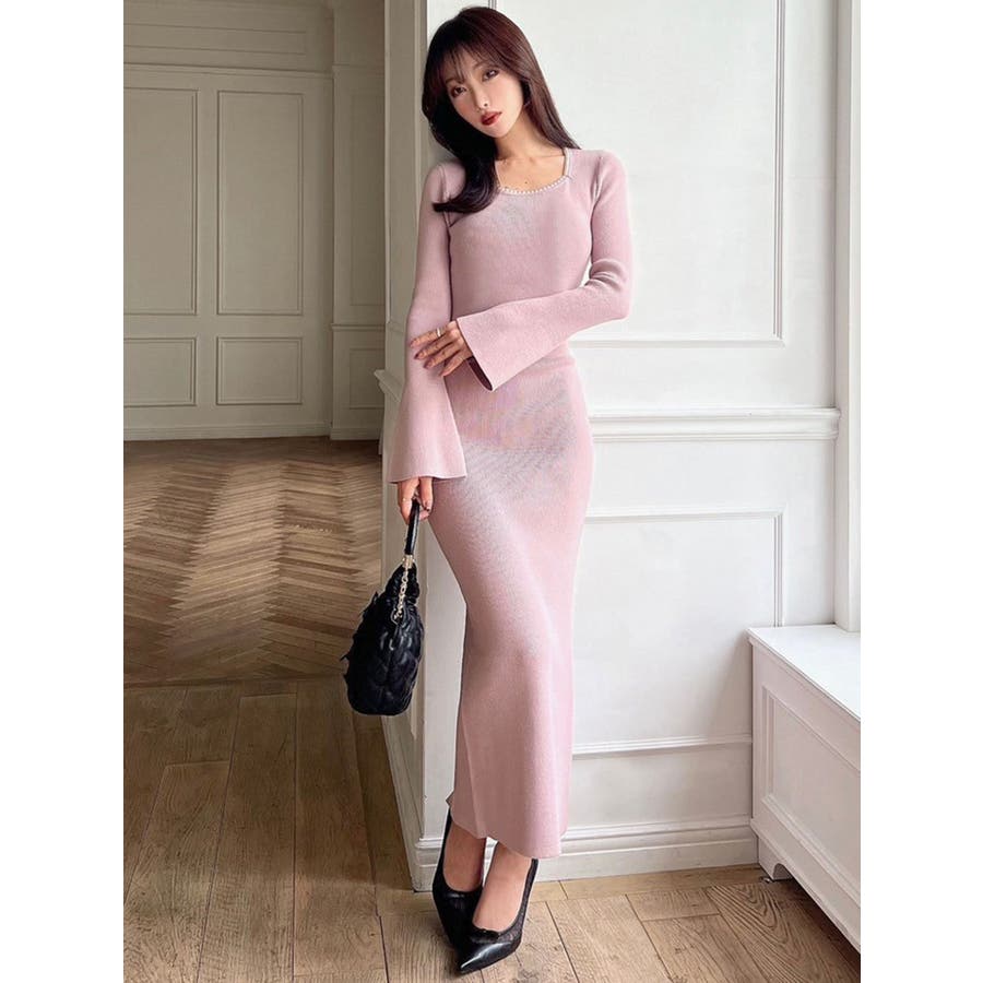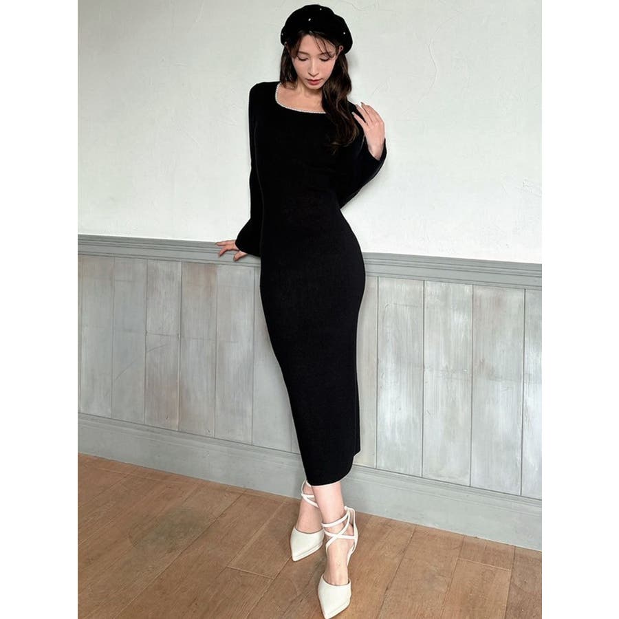 デコルテパールニットワンピース