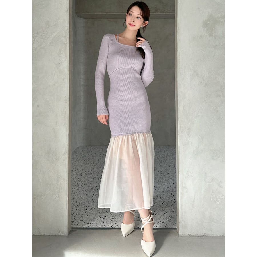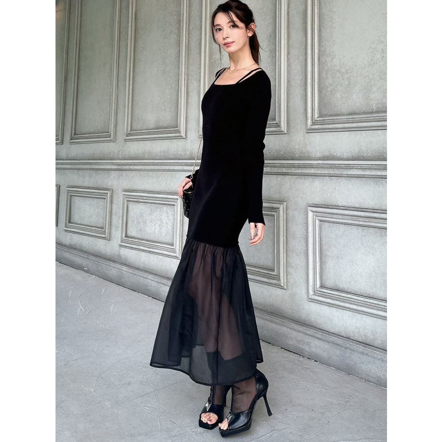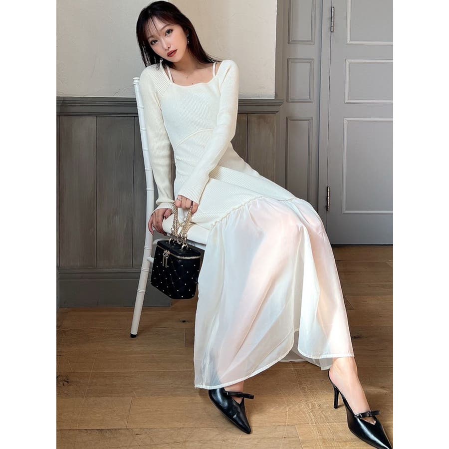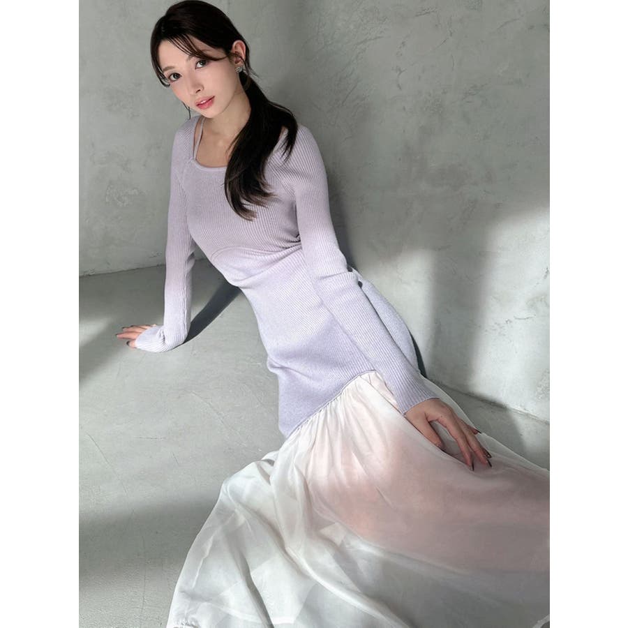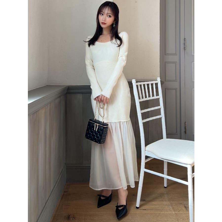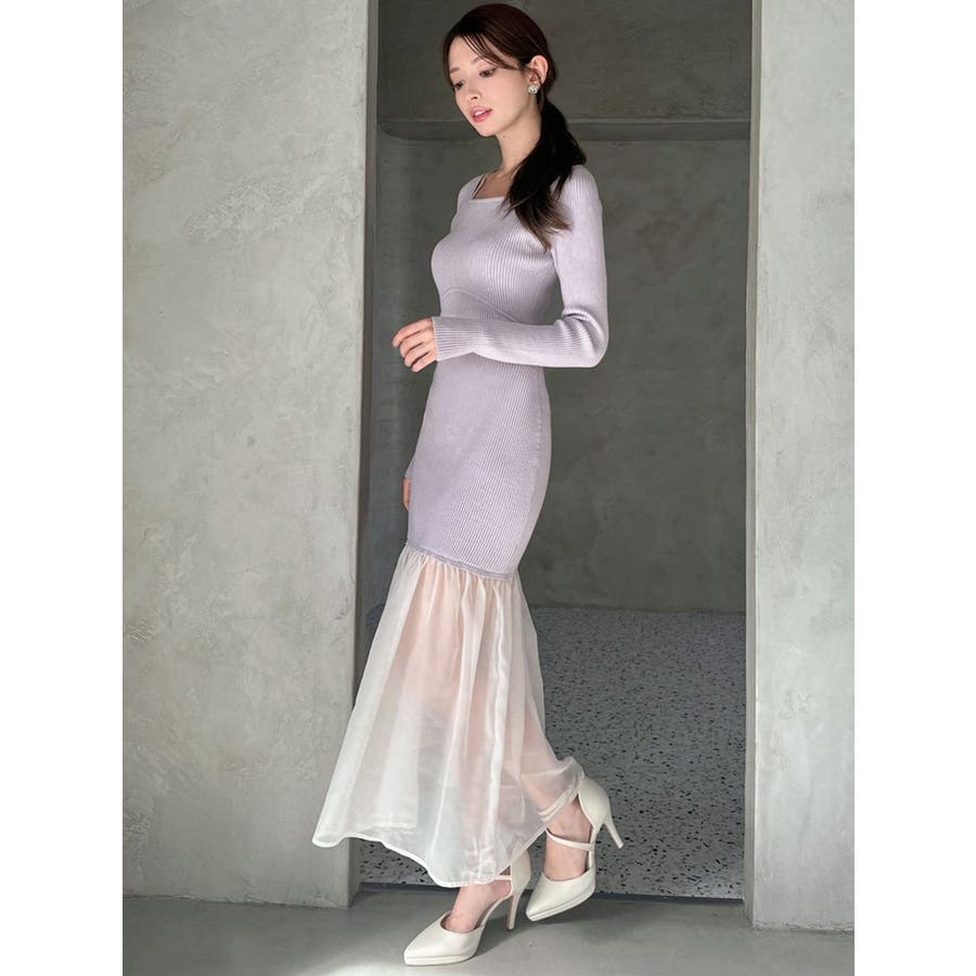膝上からシアー素材をドッキングし、揺れ感と透け感がポイントのワンピース。