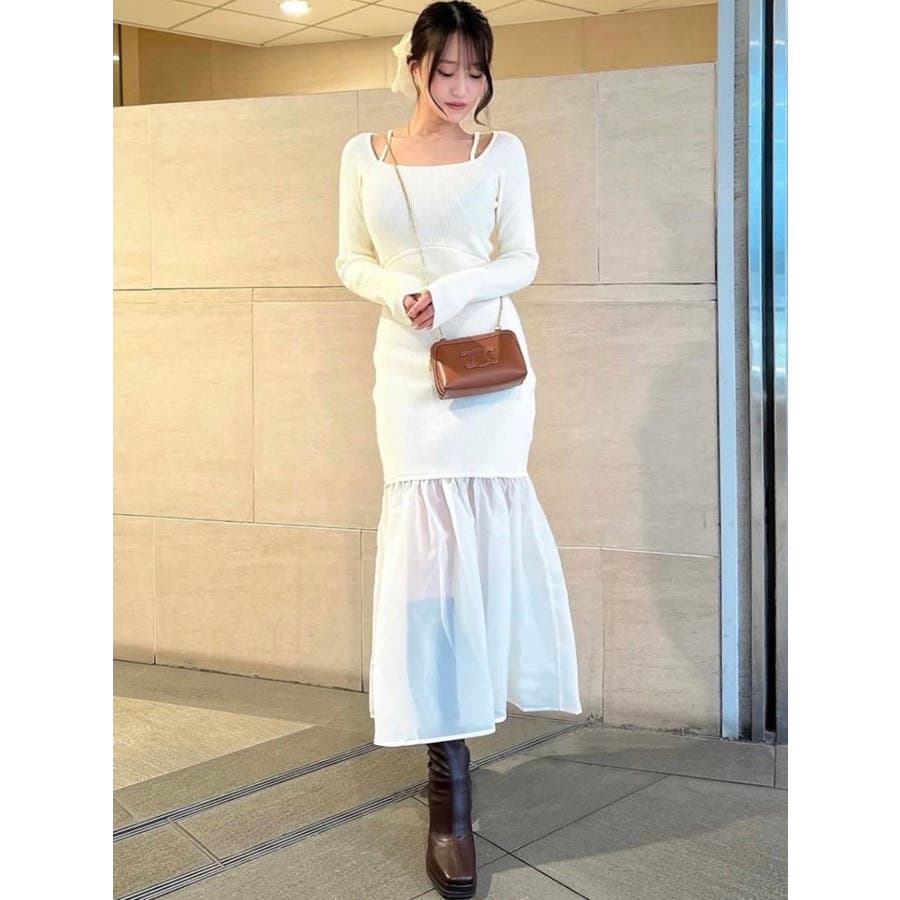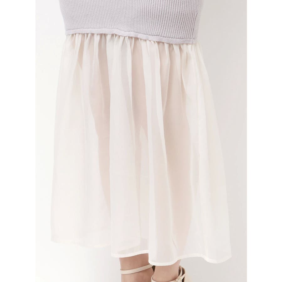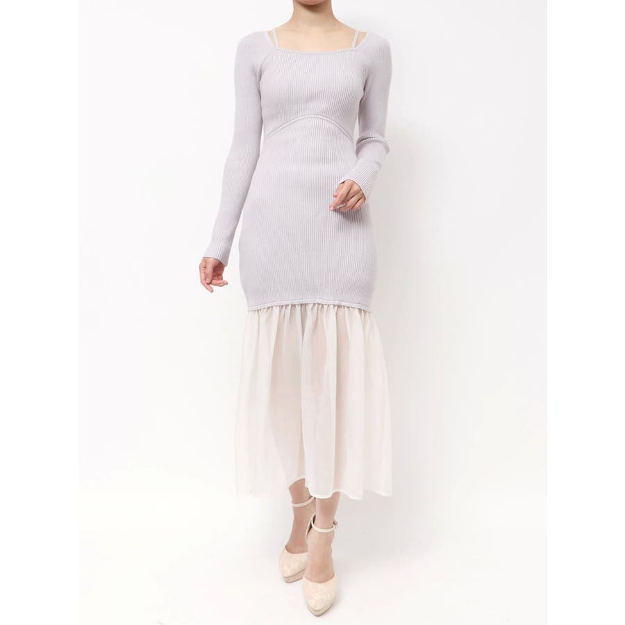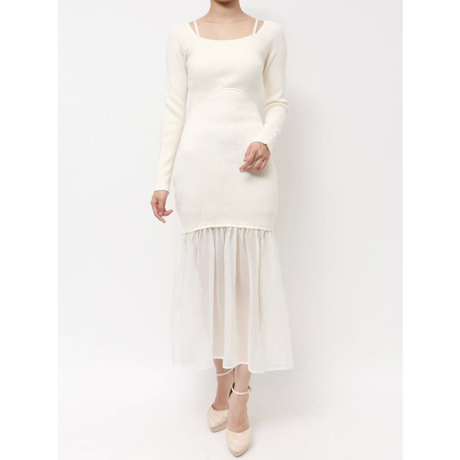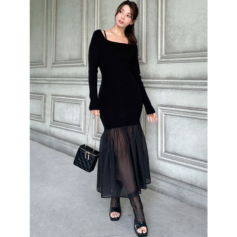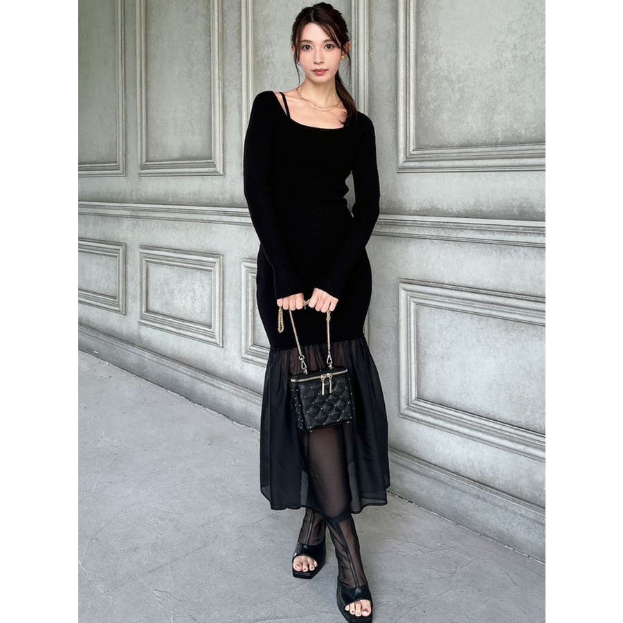膝上からシアー素材をドッキングし、揺れ感と透け感がポイントのワンピース。
