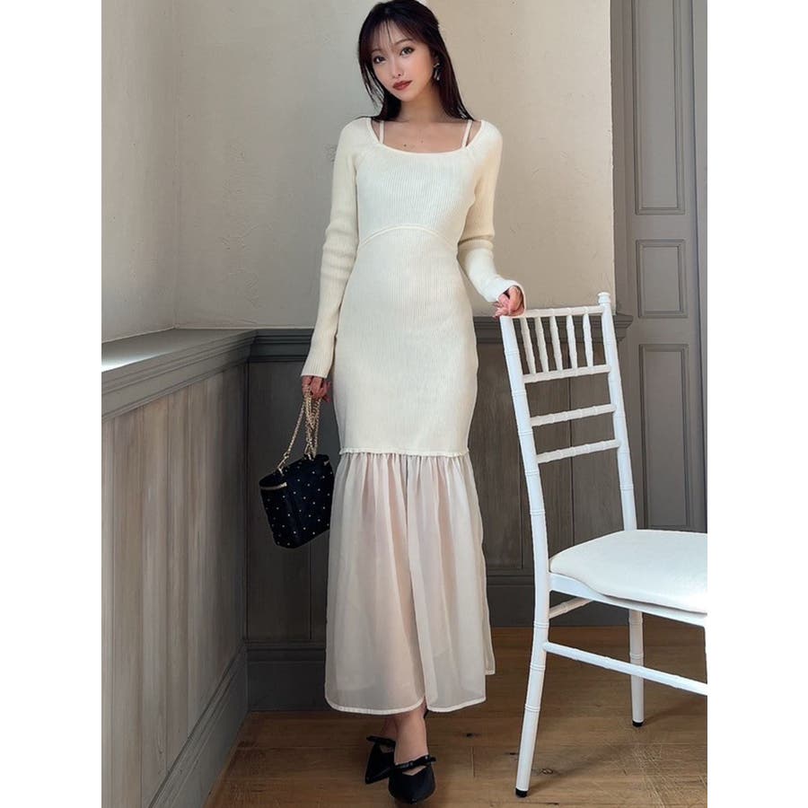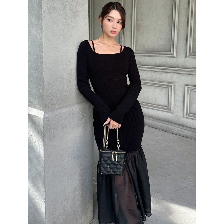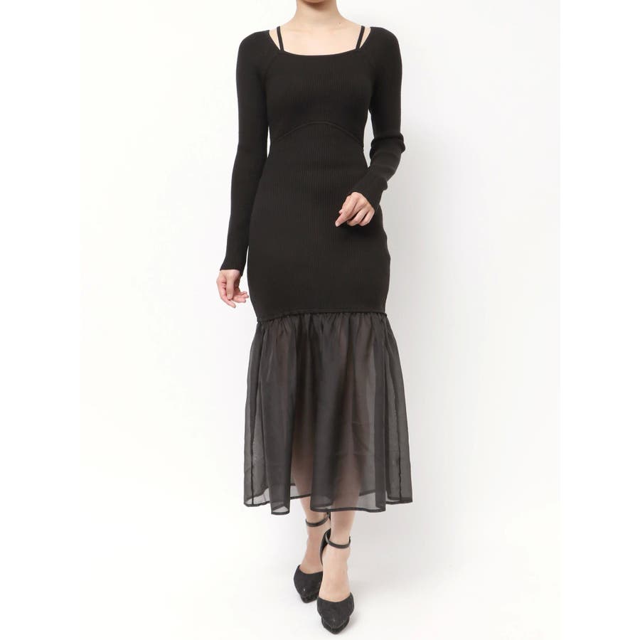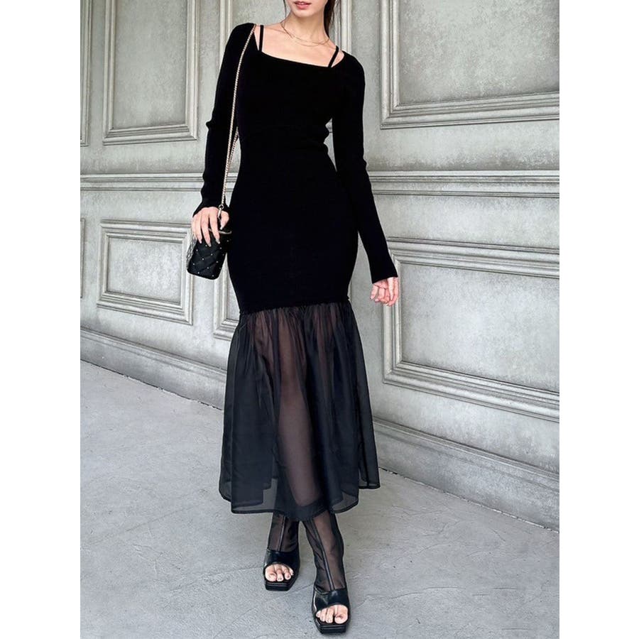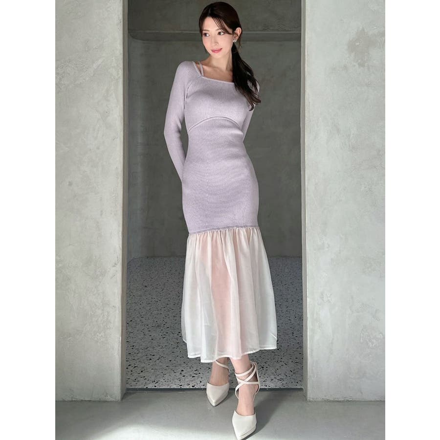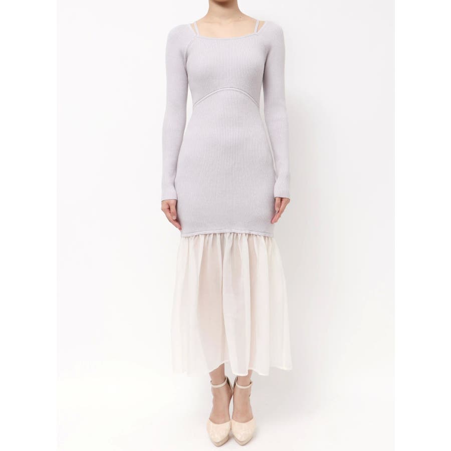 膝上からシアー素材をドッキングし、揺れ感と透け感がポイントのワンピース。