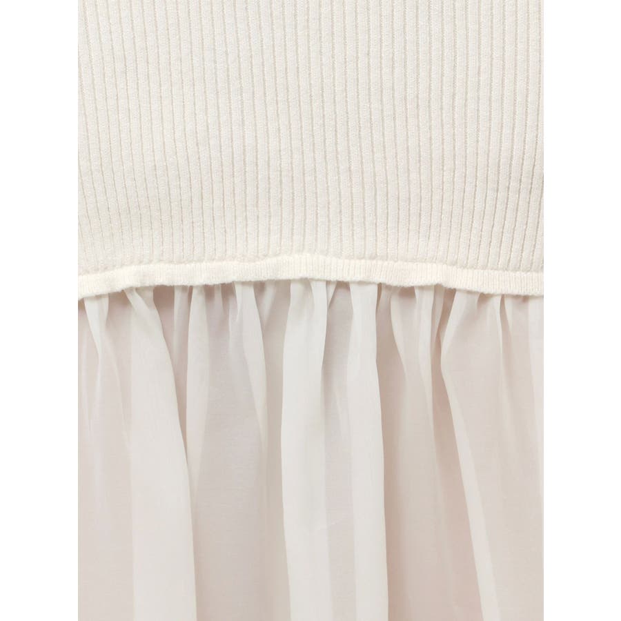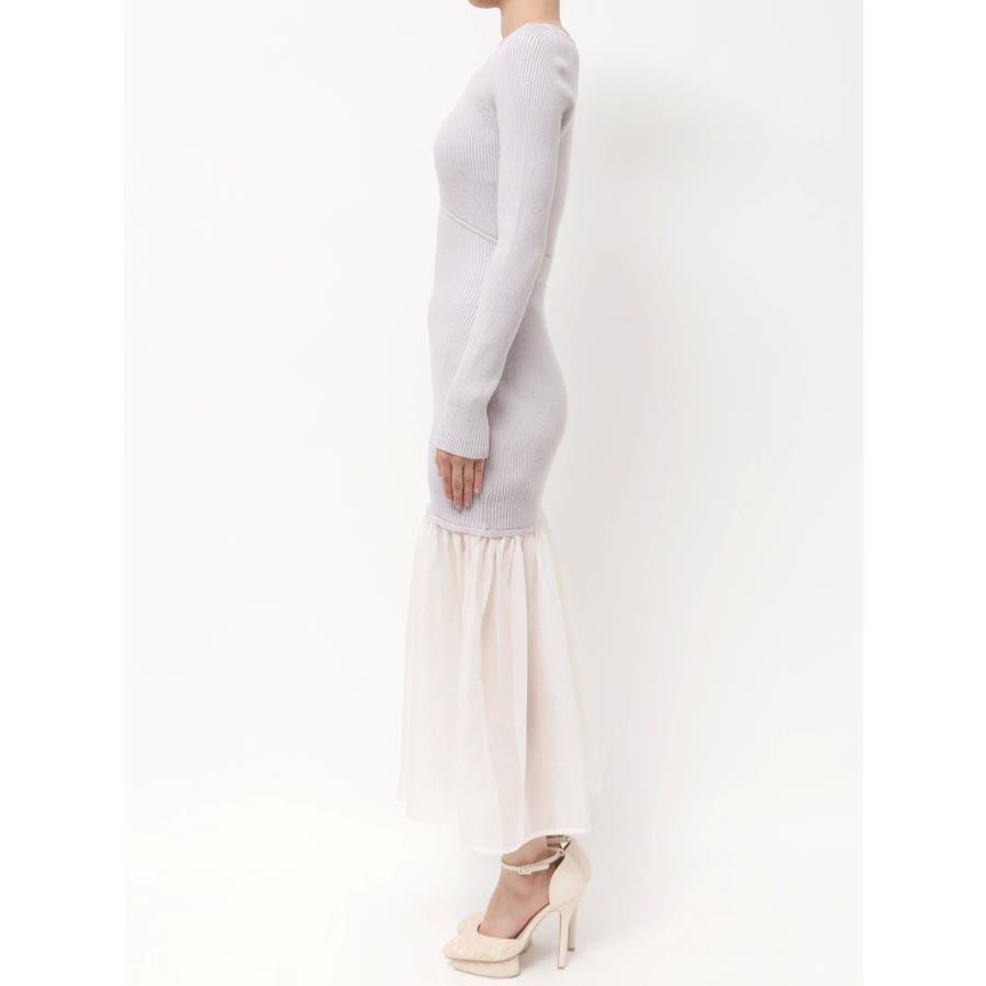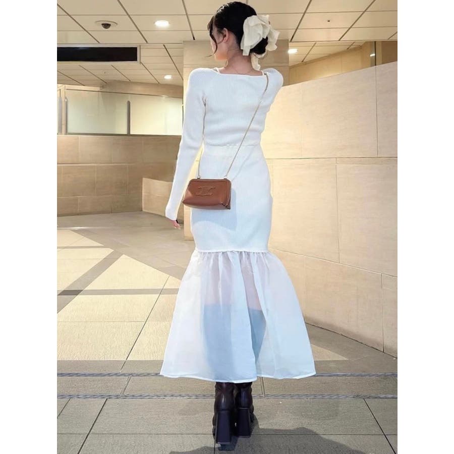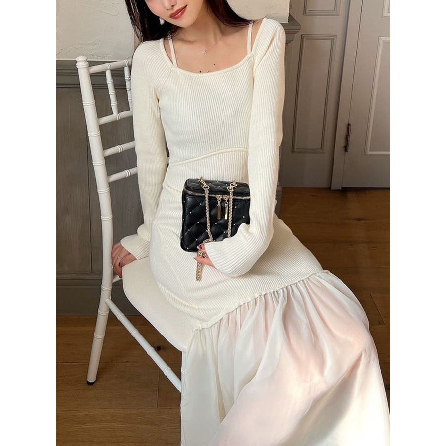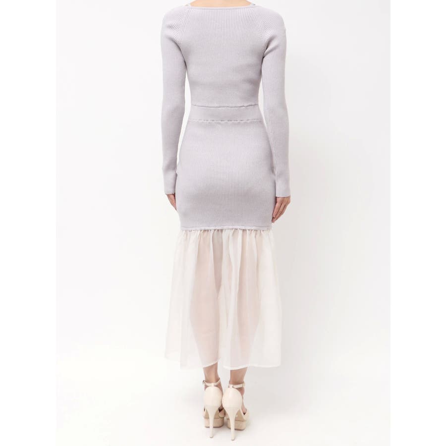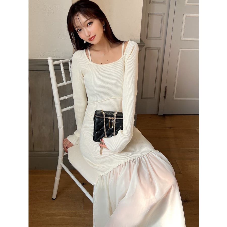 膝上からシアー素材をドッキングし、揺れ感と透け感がポイントのワンピース。