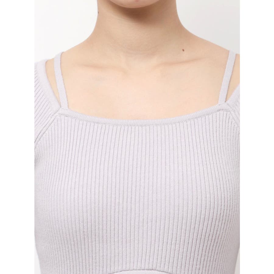 身頃はボディにフィットするニット素材で伸縮性があり着やすさ◎