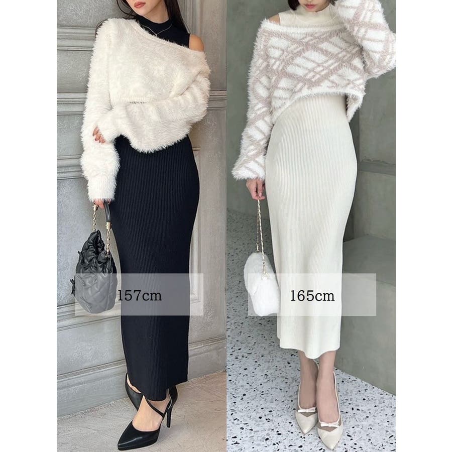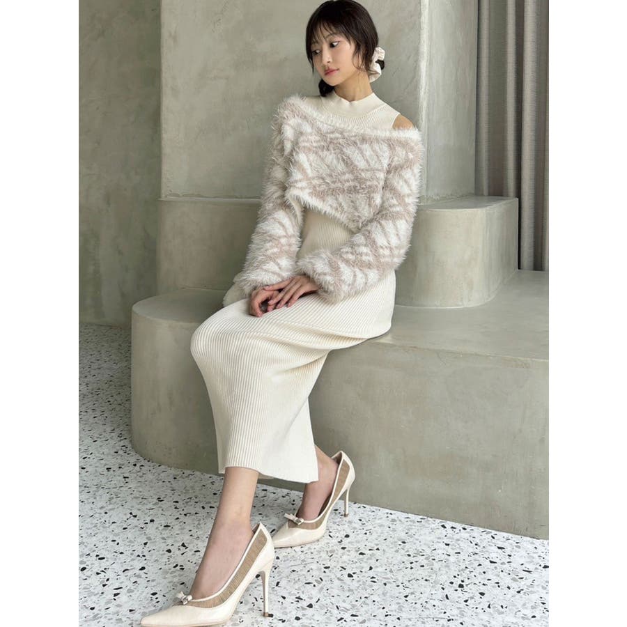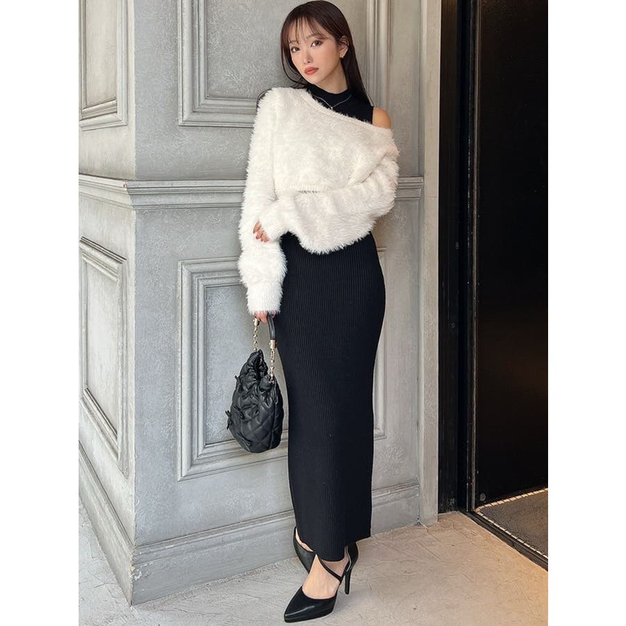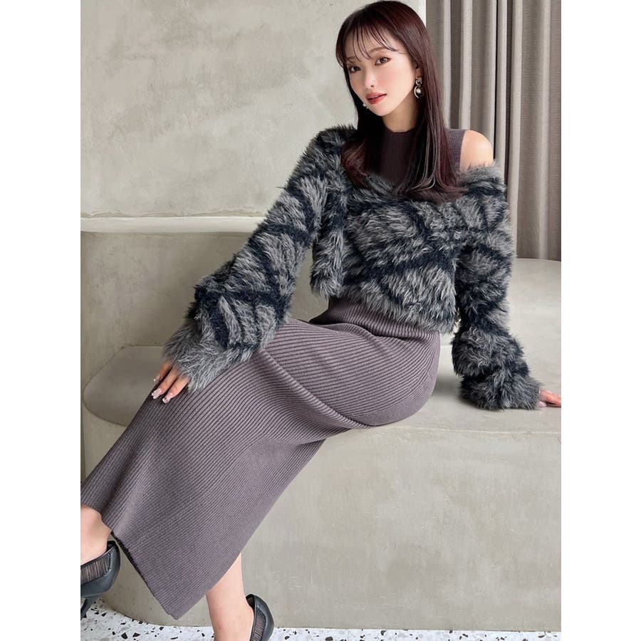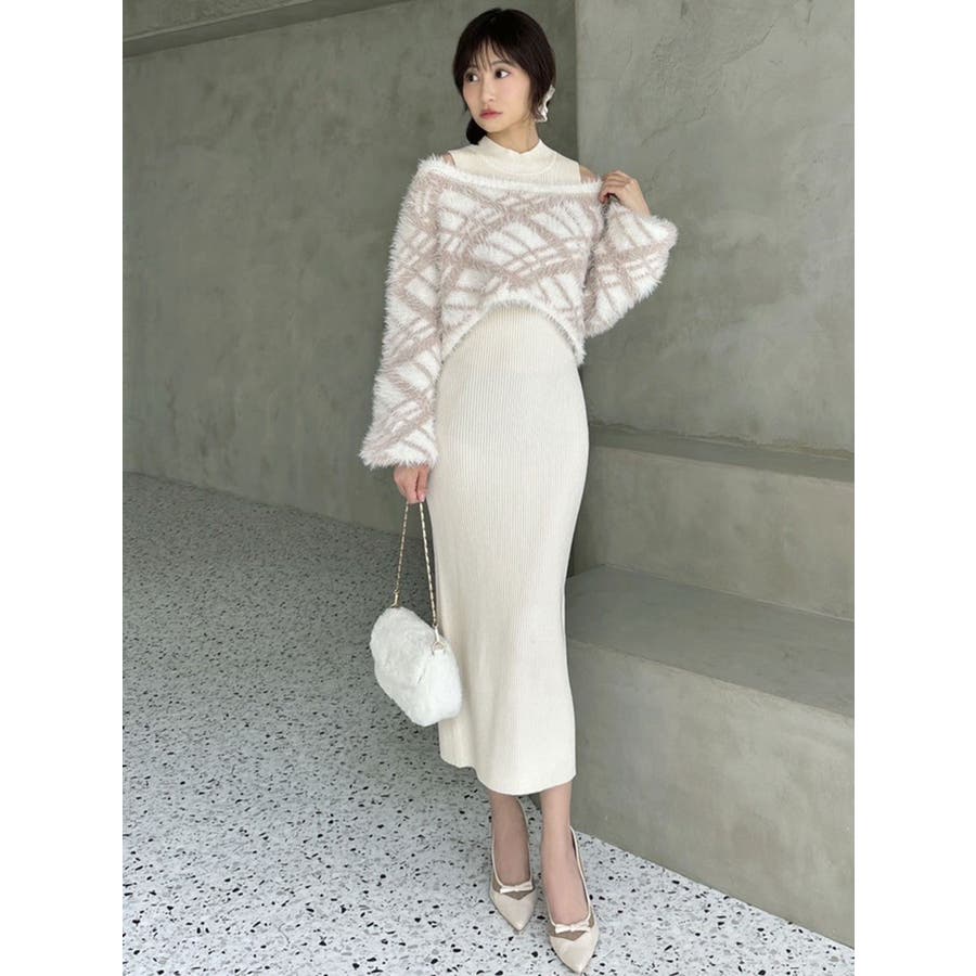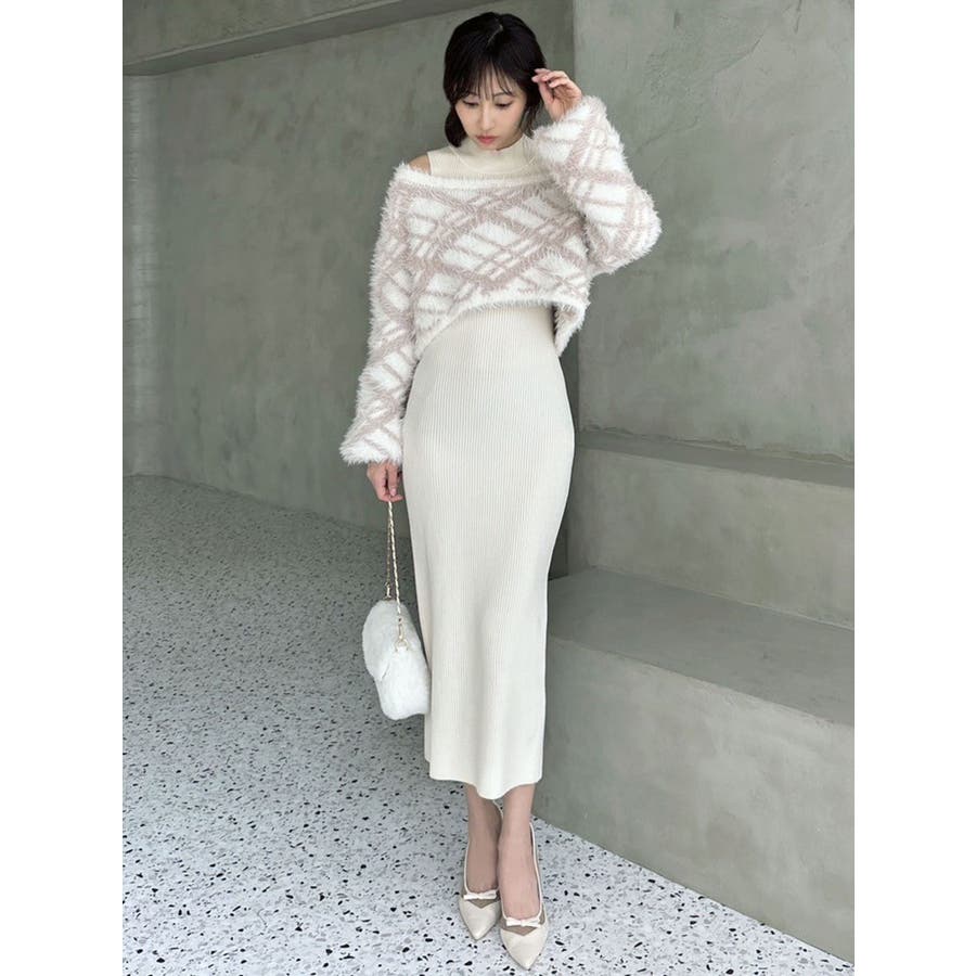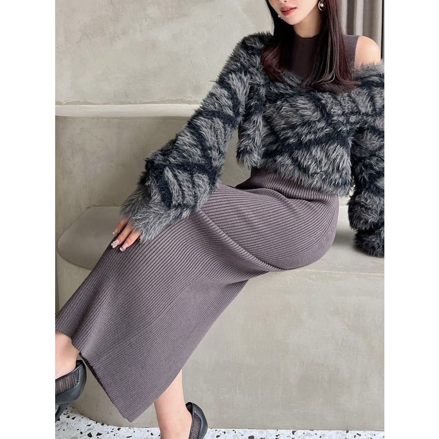 シャギーレイヤードリブニットワンピース