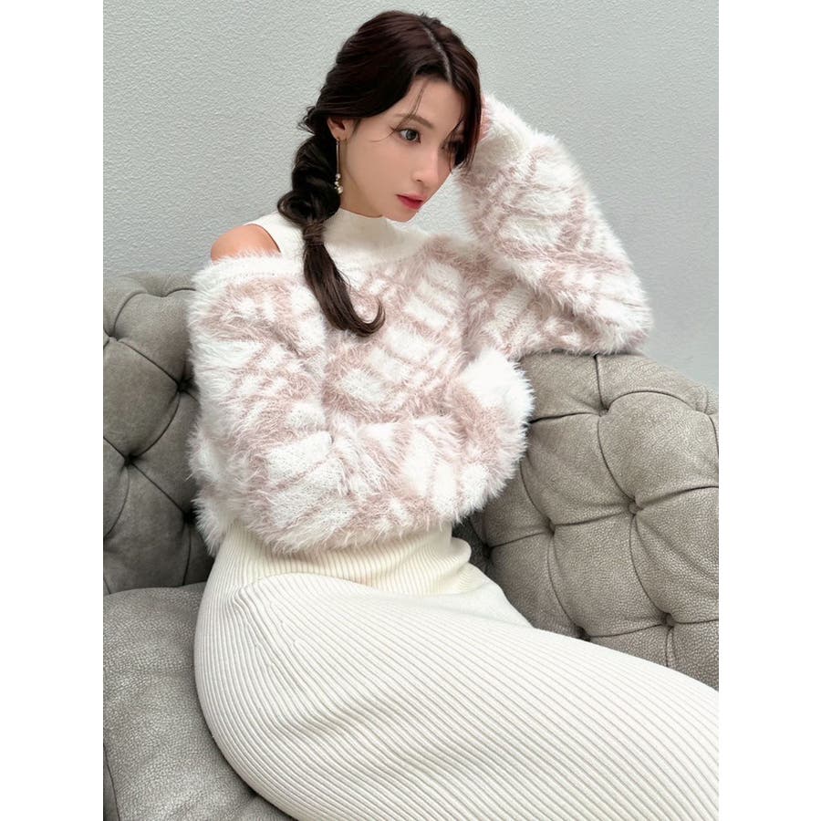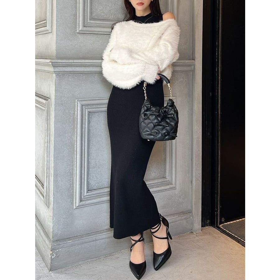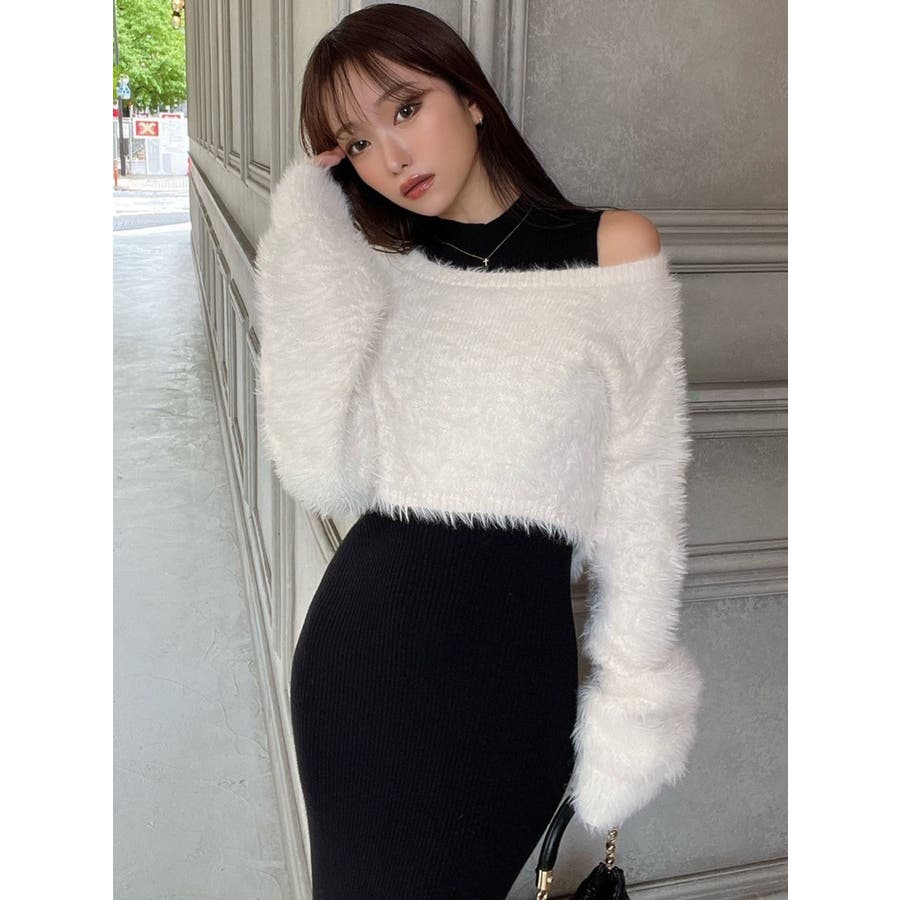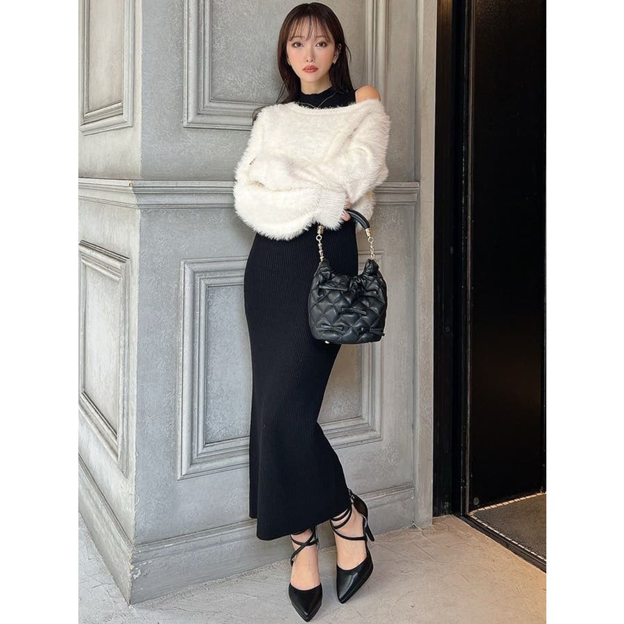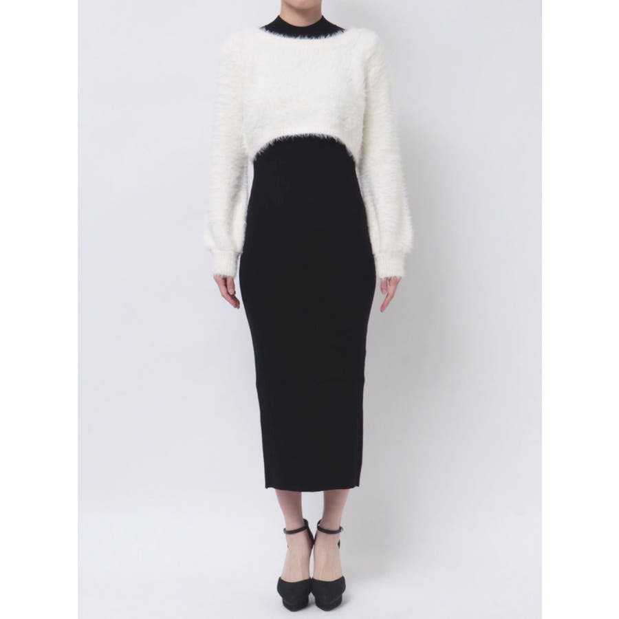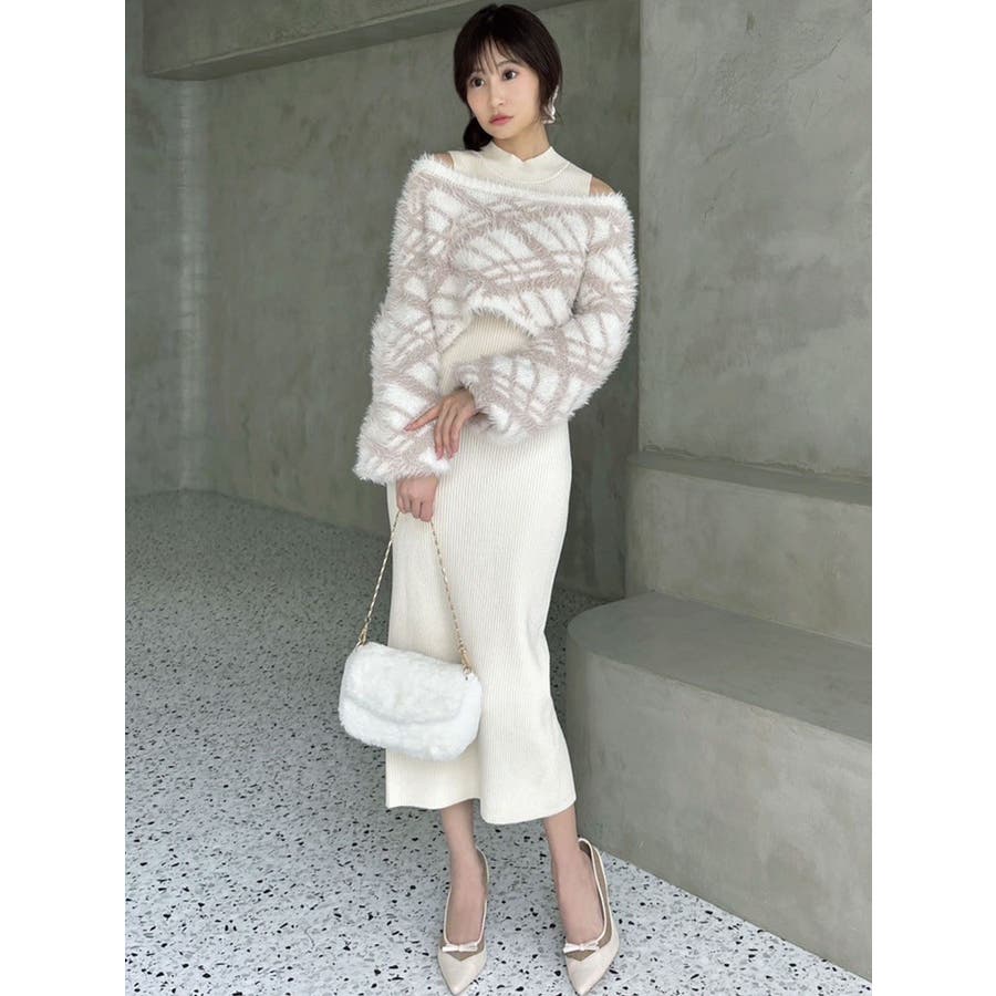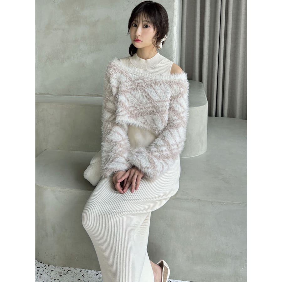 シャギーレイヤードリブニットワンピース