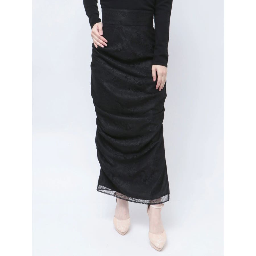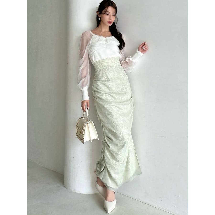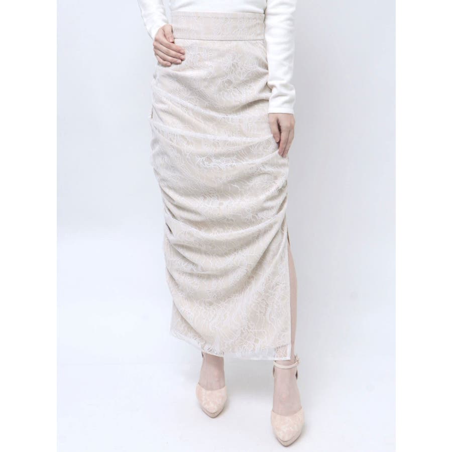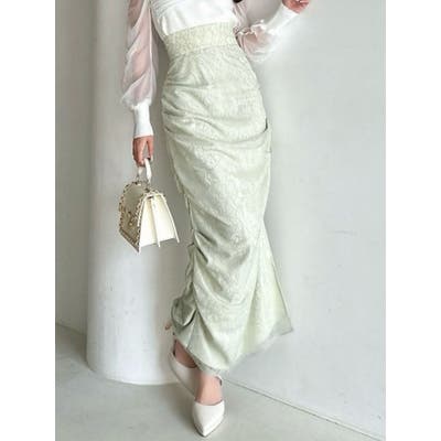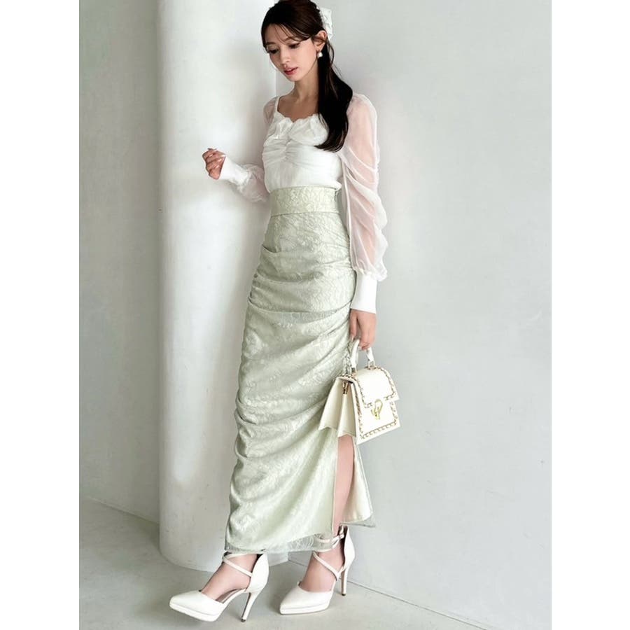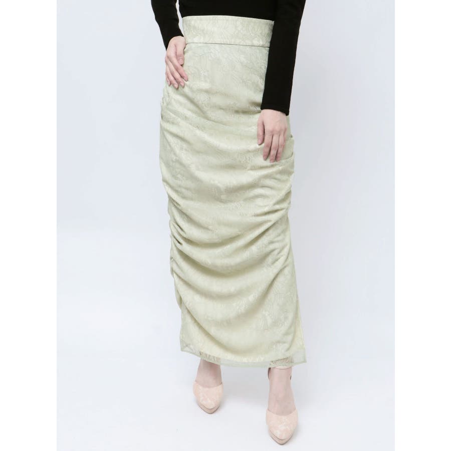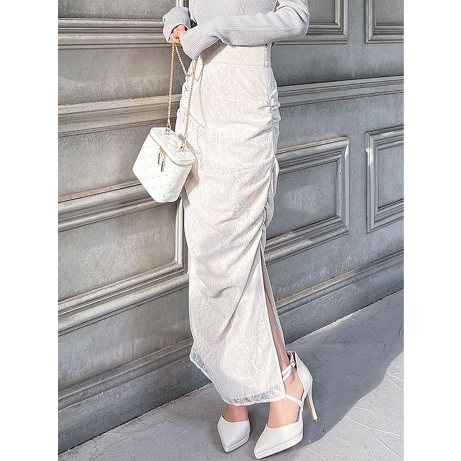 繊細なレース生地とギャザーを寄せたデザインがポイントのスカート▽デザイン▽サイドにタックとギャザーをたっぷり寄せ、ドレープ感あるタイトスカートに。繊細なレース生地とドレープ具合が女性らしい印象をUP!タックやギャザーが入っているのでタイトシルエットでもインナーのラインもが目立たず1枚で着用できます♪ハイウエストでウエスト幅がしっかりあるデザインなのでスタイルアップ効果抜群!左脇にスリットが入っているので足さばきも良く、さりげなく足が見えるのもポイントです。▽カラー▽白・黒・ミントの3色展開。▽スタイリング▽ニットからブラウスまで様々なトップスとマッチし、レースが上品なスタイリングに仕上げてくれます。デイリーはもちろんオフィスコーデやお呼ばれコーデなど様々なシーンで活躍するタイトスカートです。※着用画像はフラッシュの加減で実際の製品と色味等が異なる場合がございますので、生地のズームアップ画像をご確認ください。※ご利用の端末画面の設定により実際の商品と色味が異なる場合がございます。【商品特徴】透け感:なし伸縮性:なし生地の厚さ:普通サイズ感:普通裏地:ありポケット:なし