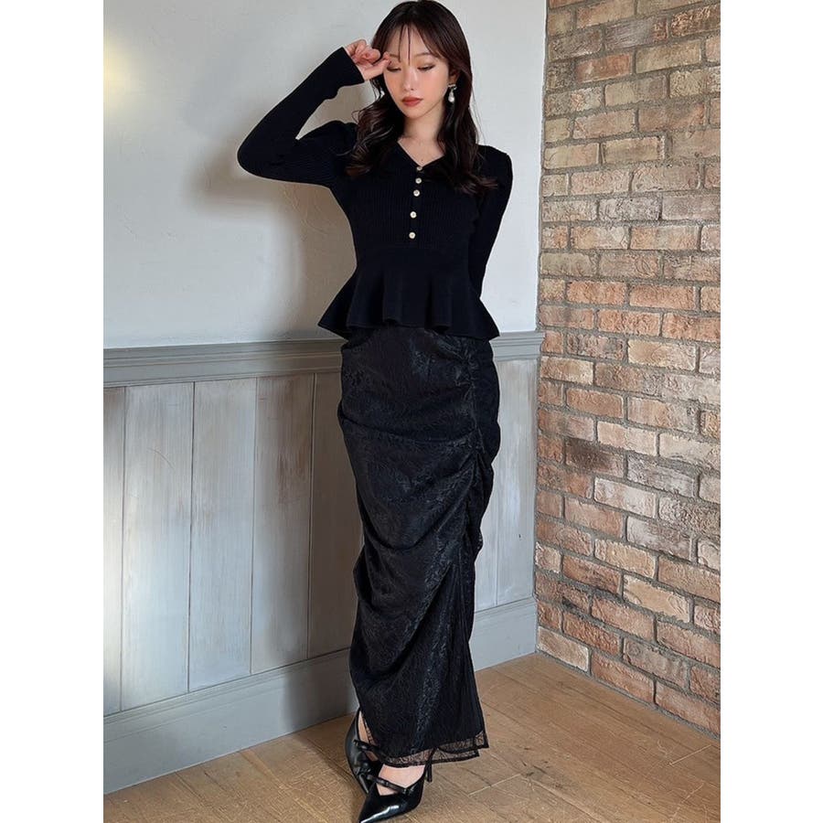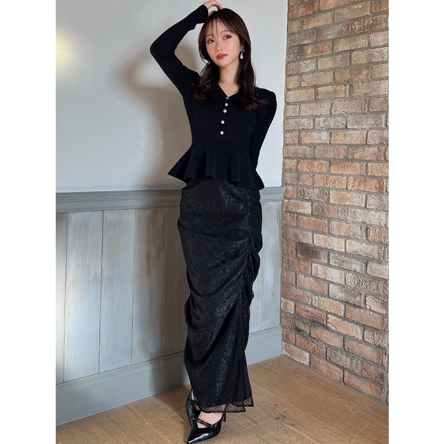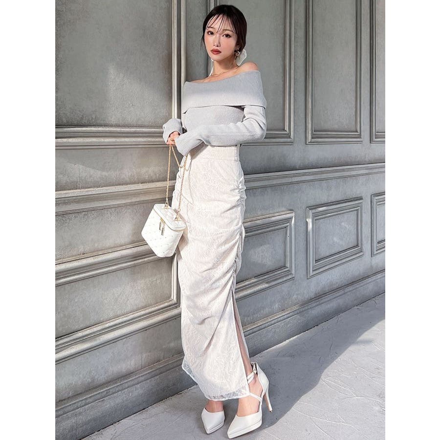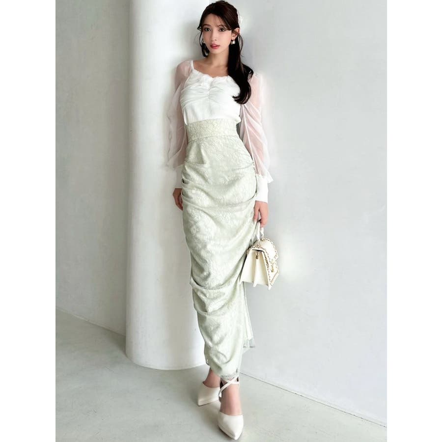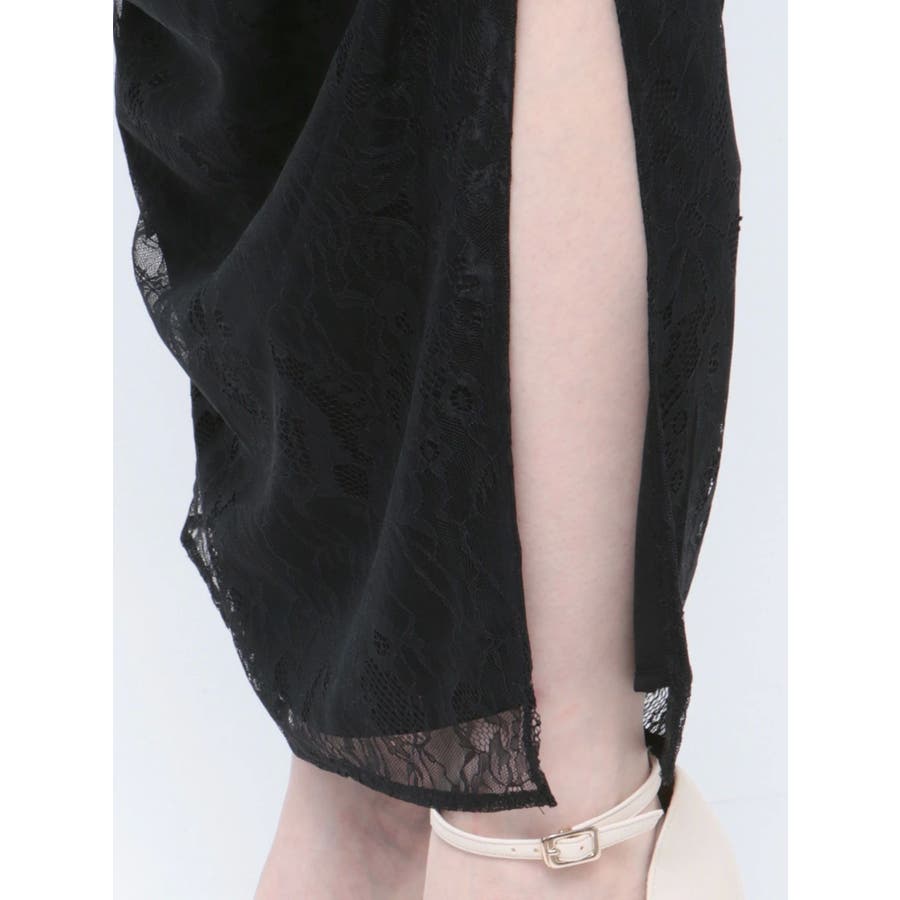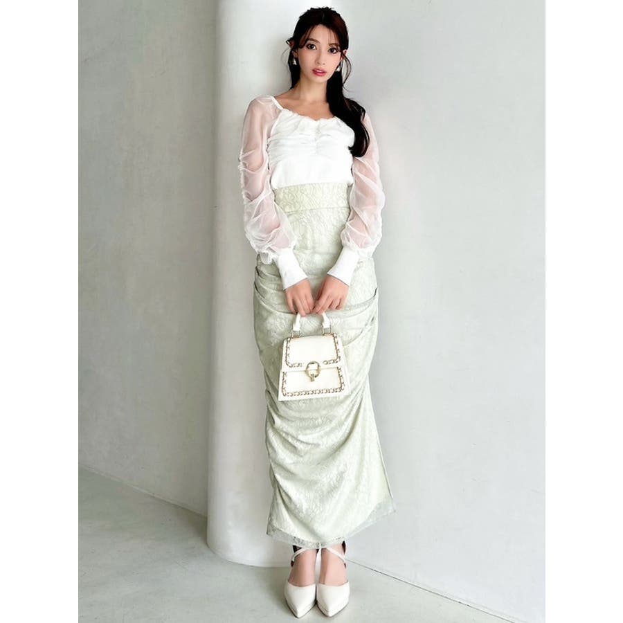 繊細なレース生地とギャザーを寄せたデザインがポイントのスカート▽デザイン▽サイドにタックとギャザーをたっぷり寄せ、ドレープ感あるタイトスカートに。繊細なレース生地とドレープ具合が女性らしい印象をUP!タックやギャザーが入っているのでタイトシルエットでもインナーのラインもが目立たず1枚で着用できます♪ハイウエストでウエスト幅がしっかりあるデザインなのでスタイルアップ効果抜群!左脇にスリットが入っているので足さばきも良く、さりげなく足が見えるのもポイントです。▽カラー▽白・黒・ミントの3色展開。▽スタイリング▽ニットからブラウスまで様々なトップスとマッチし、レースが上品なスタイリングに仕上げてくれます。デイリーはもちろんオフィスコーデやお呼ばれコーデなど様々なシーンで活躍するタイトスカートです。※着用画像はフラッシュの加減で実際の製品と色味等が異なる場合がございますので、生地のズームアップ画像をご確認ください。※ご利用の端末画面の設定により実際の商品と色味が異なる場合がございます。【商品特徴】透け感:なし伸縮性:なし生地の厚さ:普通サイズ感:普通裏地:ありポケット:なし