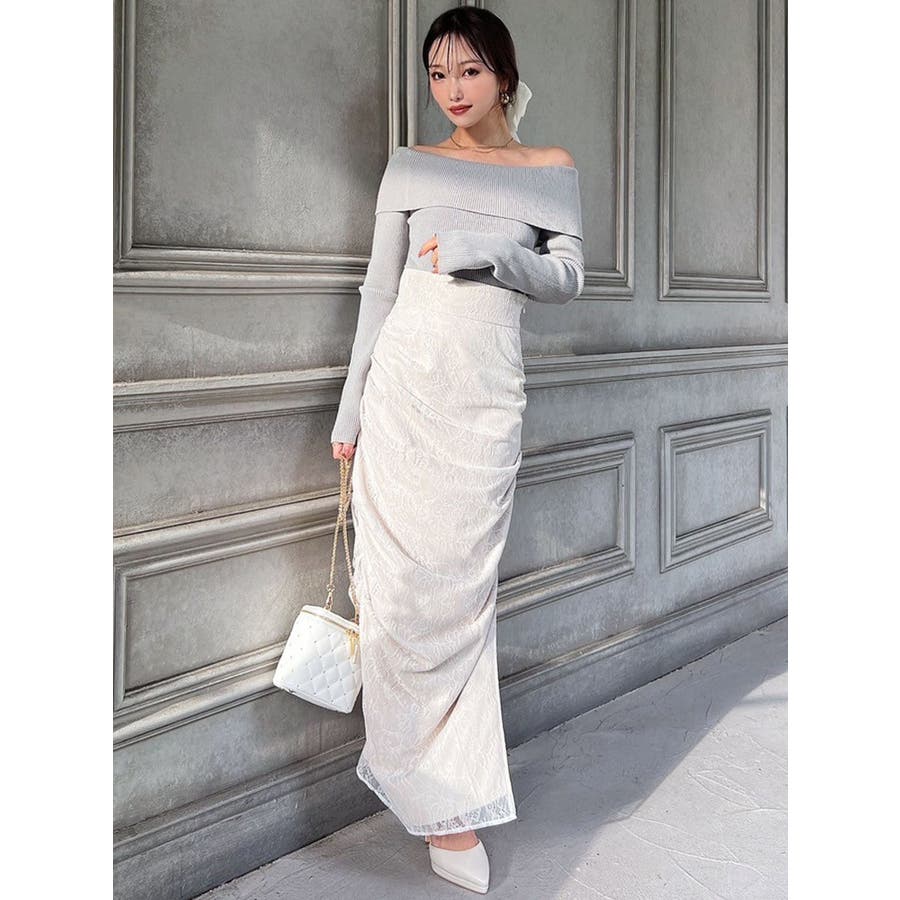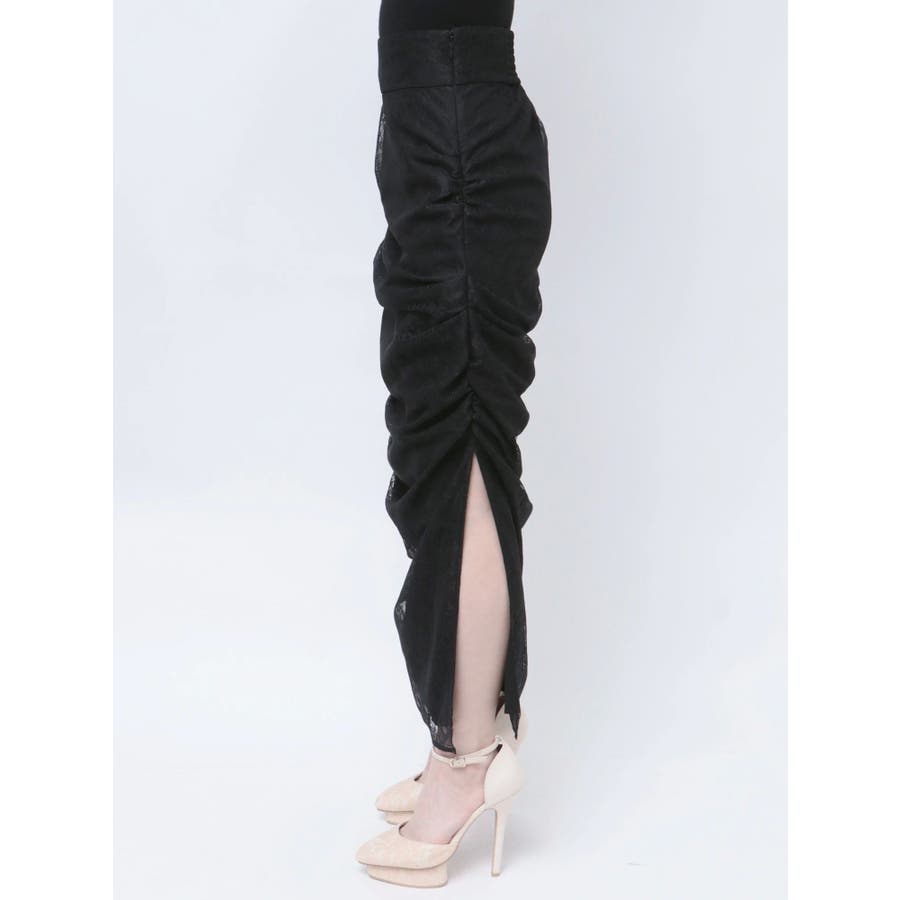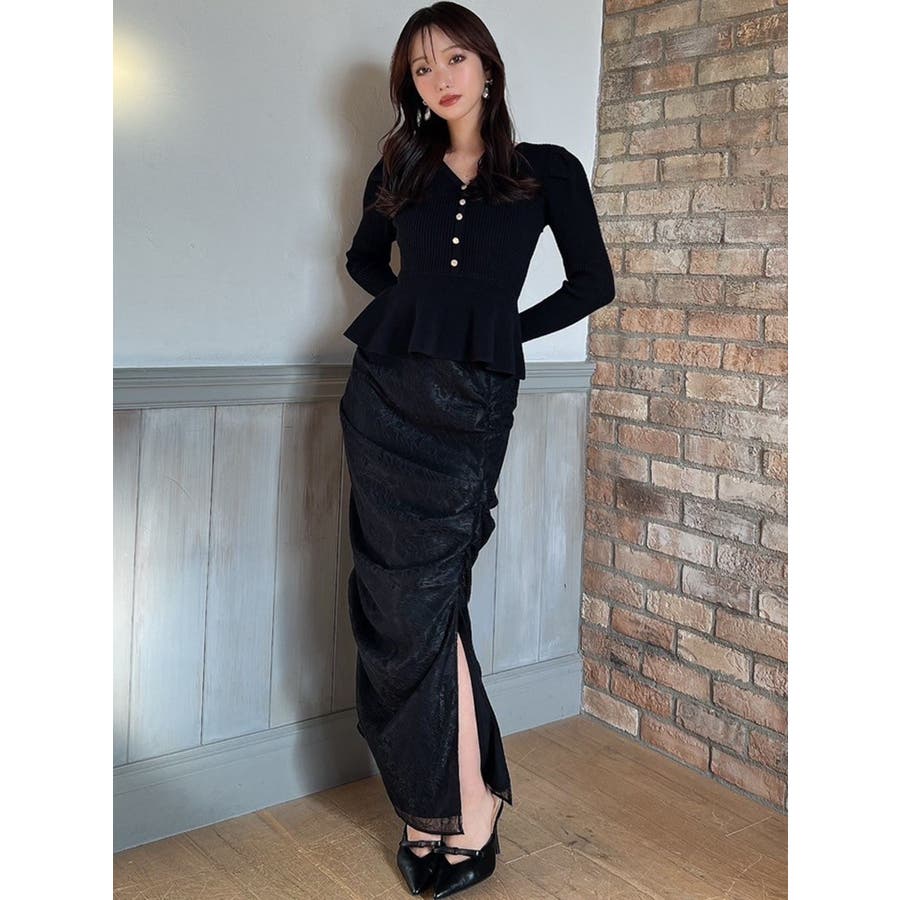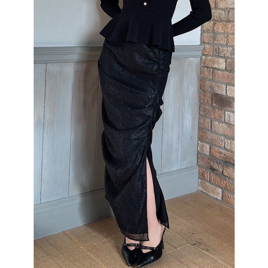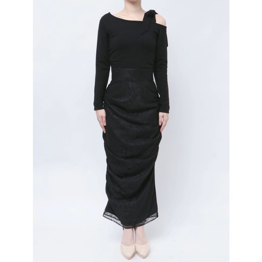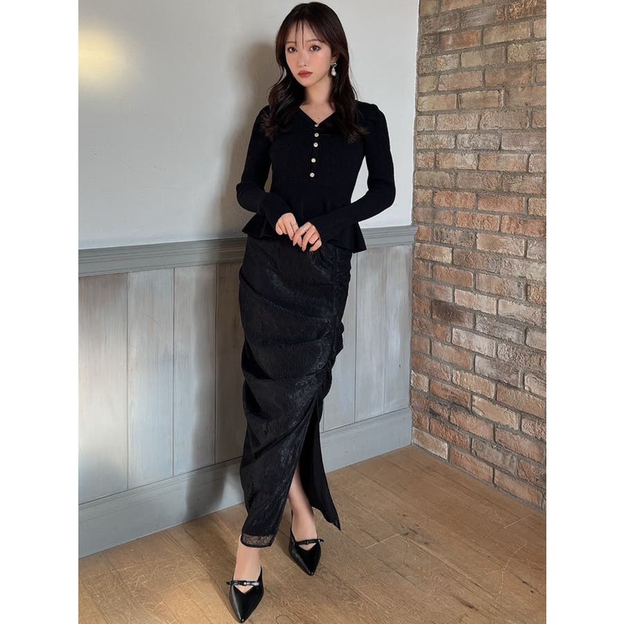 繊細なレース生地とギャザーを寄せたデザインがポイントのスカート▽デザイン▽サイドにタックとギャザーをたっぷり寄せ、ドレープ感あるタイトスカートに。繊細なレース生地とドレープ具合が女性らしい印象をUP!タックやギャザーが入っているのでタイトシルエットでもインナーのラインもが目立たず1枚で着用できます♪ハイウエストでウエスト幅がしっかりあるデザインなのでスタイルアップ効果抜群!左脇にスリットが入っているので足さばきも良く、さりげなく足が見えるのもポイントです。▽カラー▽白・黒・ミントの3色展開。▽スタイリング▽ニットからブラウスまで様々なトップスとマッチし、レースが上品なスタイリングに仕上げてくれます。デイリーはもちろんオフィスコーデやお呼ばれコーデなど様々なシーンで活躍するタイトスカートです。※着用画像はフラッシュの加減で実際の製品と色味等が異なる場合がございますので、生地のズームアップ画像をご確認ください。※ご利用の端末画面の設定により実際の商品と色味が異なる場合がございます。【商品特徴】透け感:なし伸縮性:なし生地の厚さ:普通サイズ感:普通裏地:ありポケット:なし