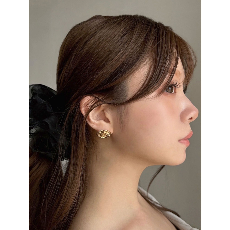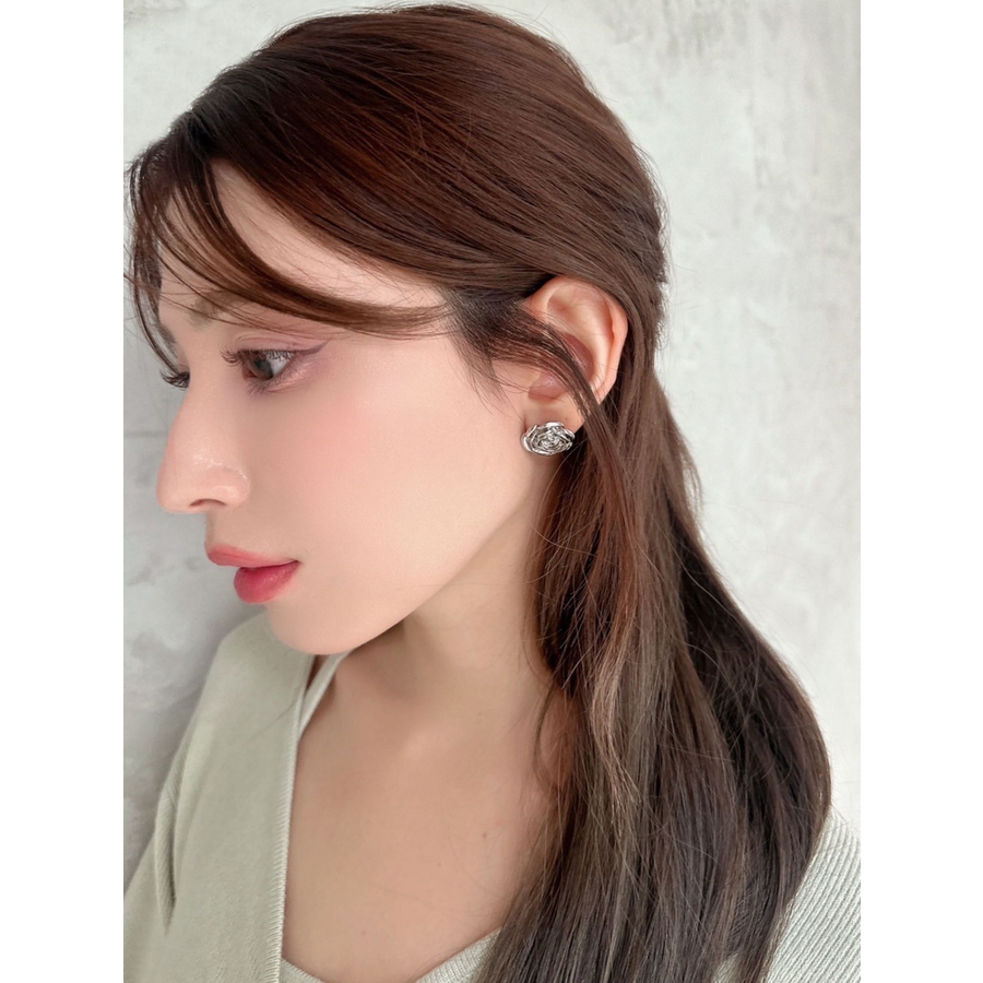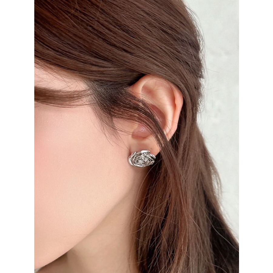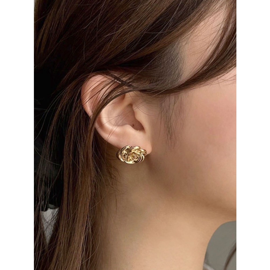 シンプルだけど大人っぽい印象も与えてくれる、メタル素材の薔薇のモチーフピアスです。小ぶりですが、メタル素材で顔周りを華やかにしてくれます。コーディネートのワンポイントに。