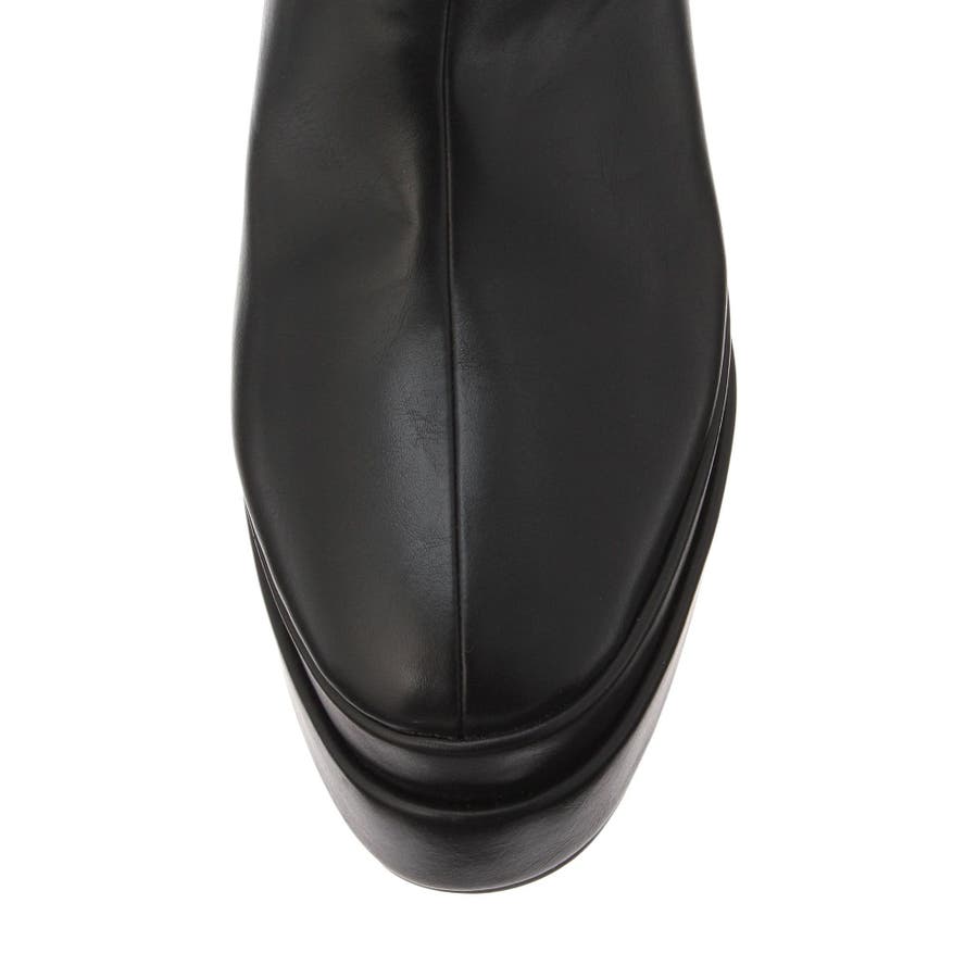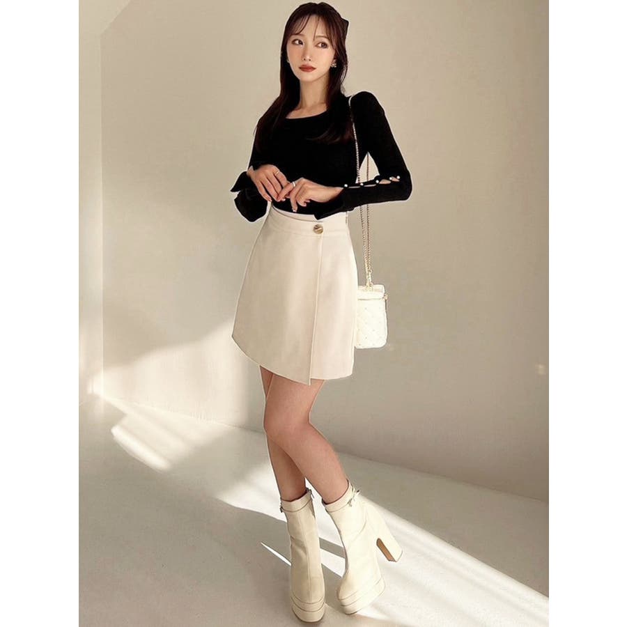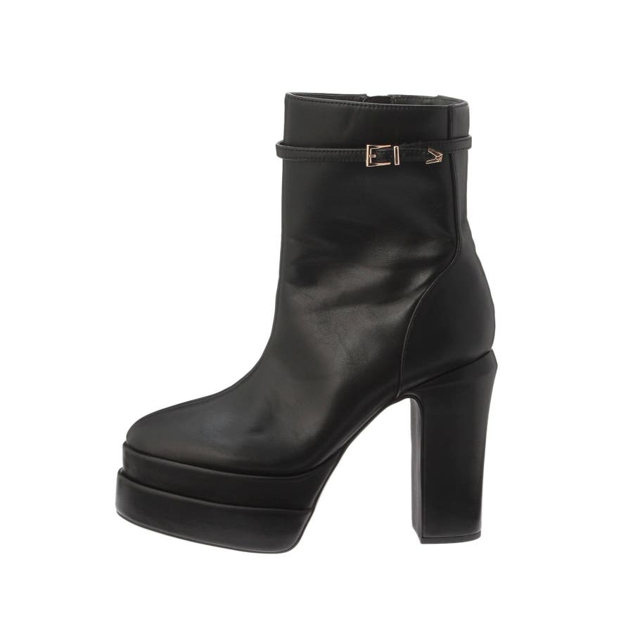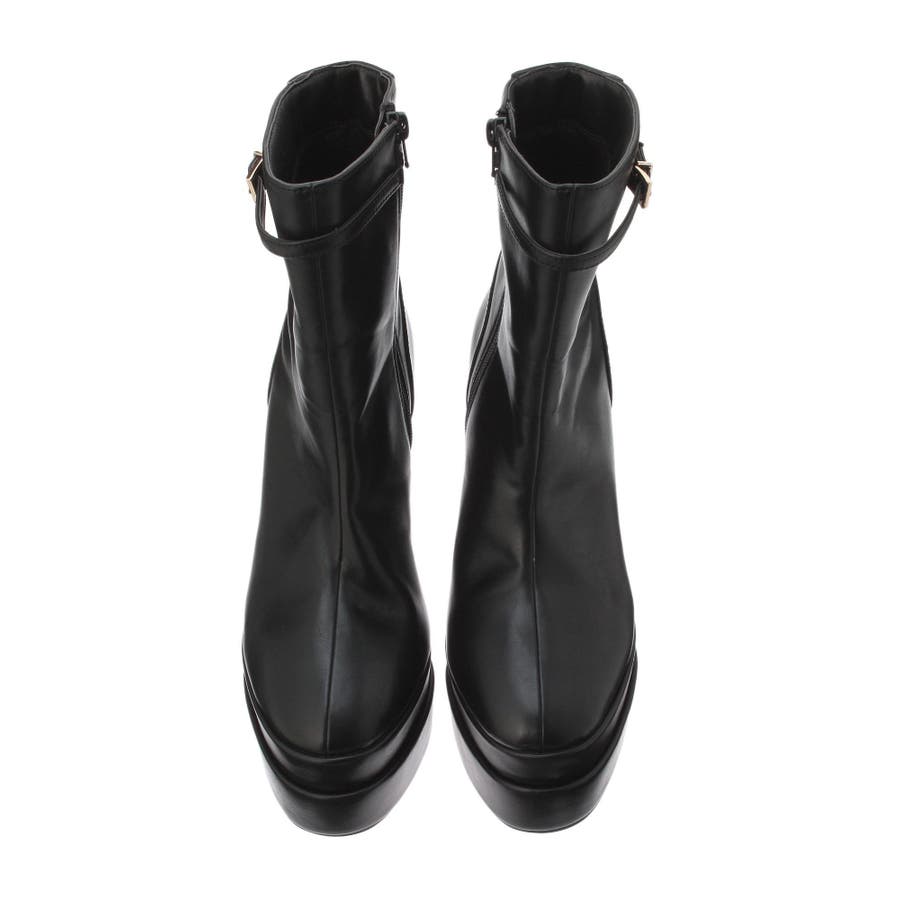 美脚効果抜群!シンプルで使いやすいショートブーツ▽デザイン▽ワンポイントでサイドにバックルを付けたプラットフォームブーツ。