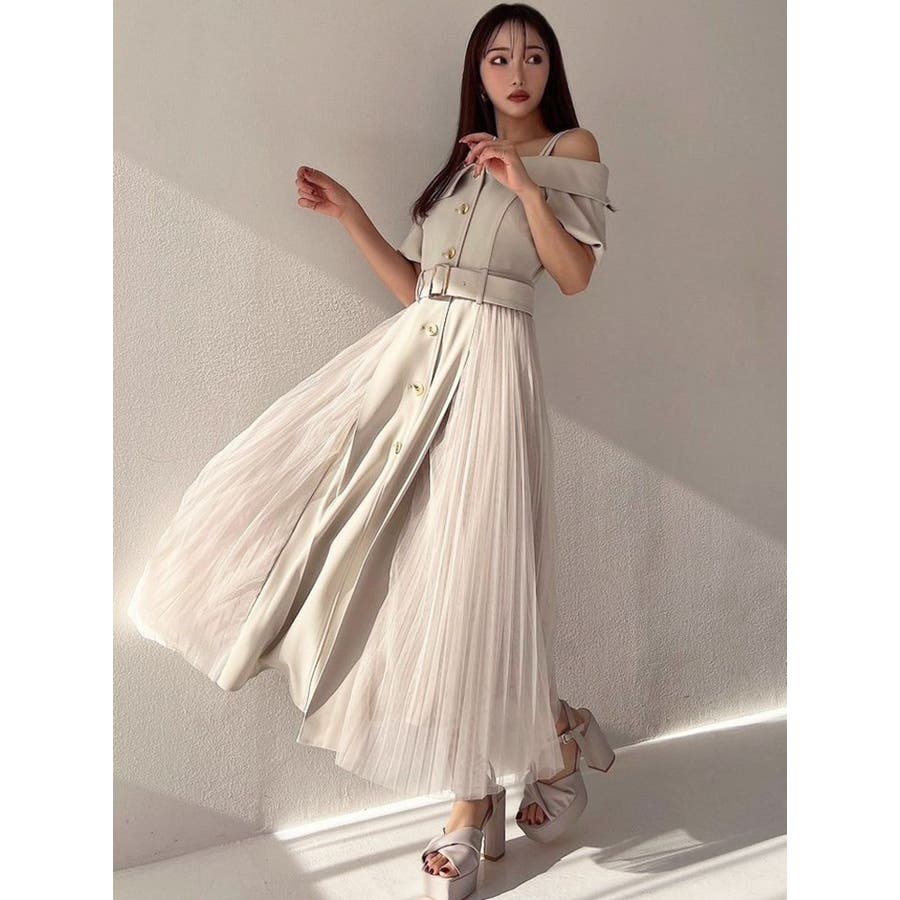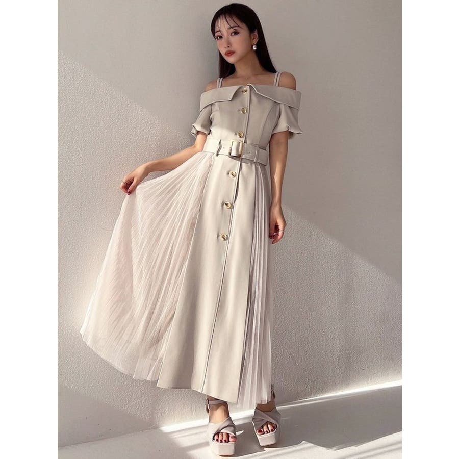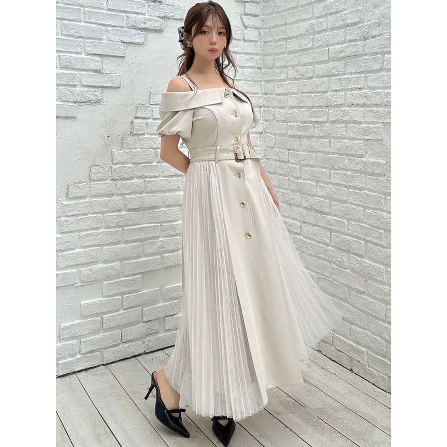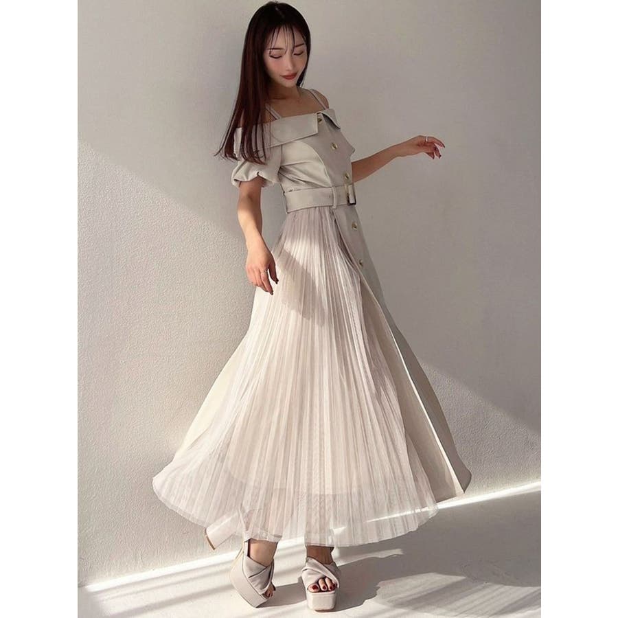 1枚で着映え間違いなしのトレンチワンピースが今年も登場!▽デザイン▽サイドの細かいシアープリーツが程よいボリューム感と透け感をプラス。オフショルデザインでトレンチのカッチリ感を無くし女性らしい抜け感を出しました。程よいボリュームのある袖が二の腕周りを華奢に見せ、着痩せ効果抜群!ベルト付きでウエストマークができるので、裾に向かって広がるフレアシルエットが女性らしい美シルエットを演出します。▽カラー▽黒・ネイビー・ベージュの定番人気カラー。▽スタイリング▽トレンチワンピースはサラッと着るだけで上品なスタイリングに。1枚持っていると様々なシーンで活躍するイチオシの春ワンピースです!※着用画像はフラッシュの加減で実際の製品と色味等が異なる場合がございますので、生地のズームアップ画像をご確認ください。※ご利用の端末画面の設定により実際の商品と色味が異なる場合がございます。【商品特徴】透け感:なし伸縮性:なし生地の厚さ:普通サイズ感:普通裏地:ありポケット:なしファスナー:なし
