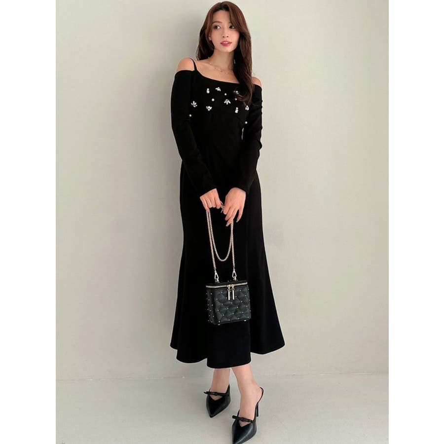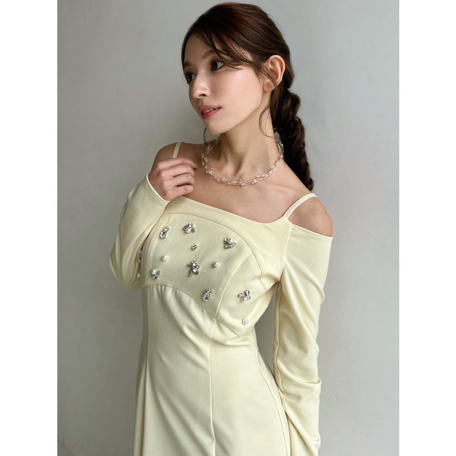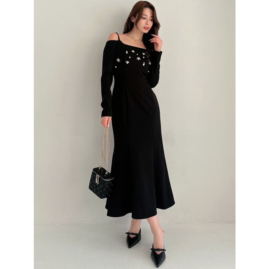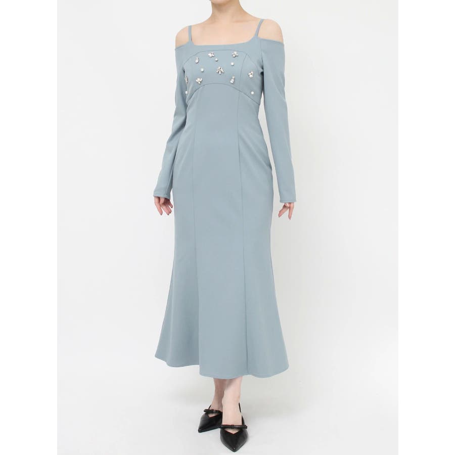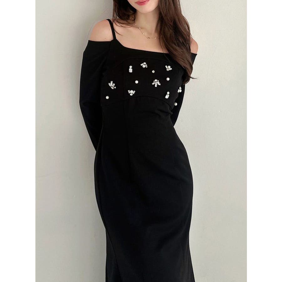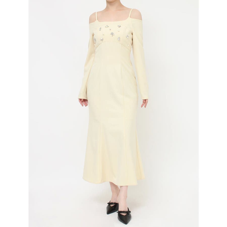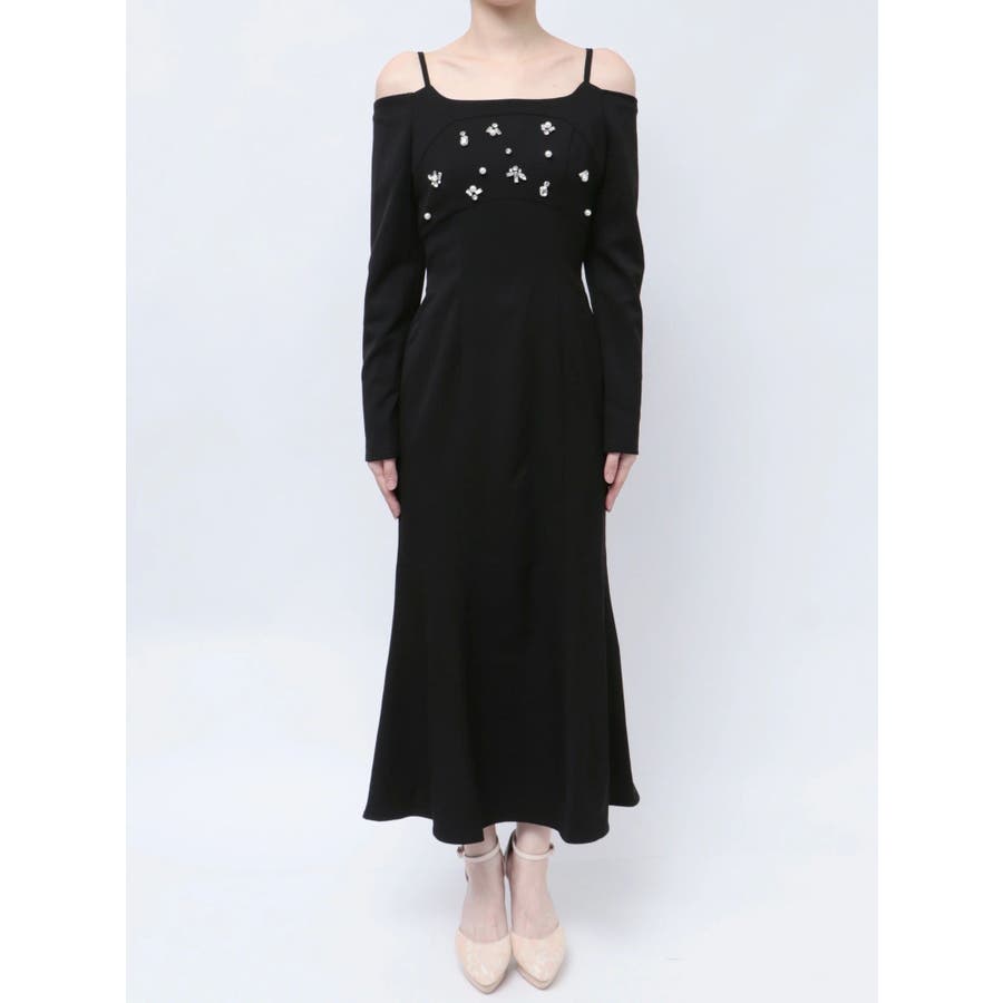 ビジューの煌めきがアクセントになるワンピース▽デザイン▽バスト周りの立体的に刺繍されたビジューが目を惹くマーメイドワンピース。デコルテと肩をスッキリと開け抜け感のあるフェミニンな仕上がりにしました。オフショルデザインがこれからの季節にピッタリ◎ハイウエストの切り替えとバックゴムの仕様で女性らしいシルエットに。表地の程よい光沢感が上品な雰囲気を演出してくれます。▽カラー▽黒・黄色・青の3色展開。▽スタイリング▽シンプルなデザインにビジューが映えるのでパーティーシーンにもオススメ!肌寒い時期はアウターを羽織ってもフロントのビジューがアクセントに◎シューズや小物もキレイめなアイテムでまとめるのがオススメです!※着用画像はフラッシュの加減で実際の製品と色味等が異なる場合がございますので、生地のズームアップ画像をご確認ください。※ご利用の端末画面の設定により実際の商品と色味が異なる場合がございます。【商品特徴】透け感:なし伸縮性:なし生地の厚さ:普通サイズ感:普通裏地:なしポケット:なしファスナー:あり(横)