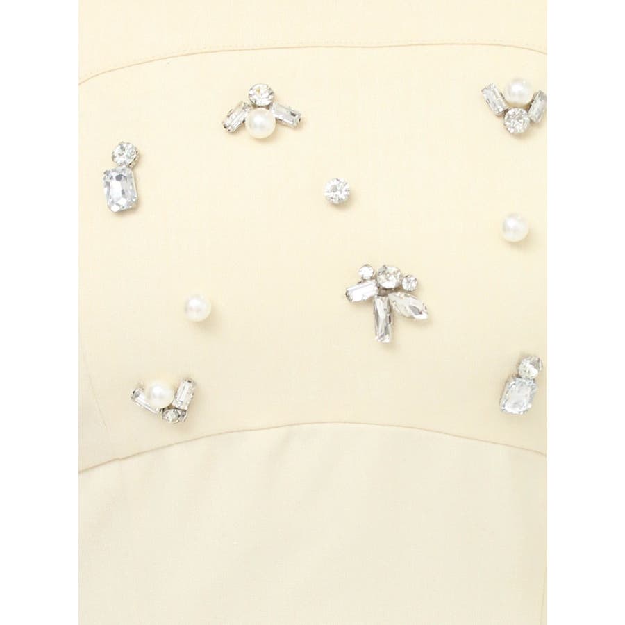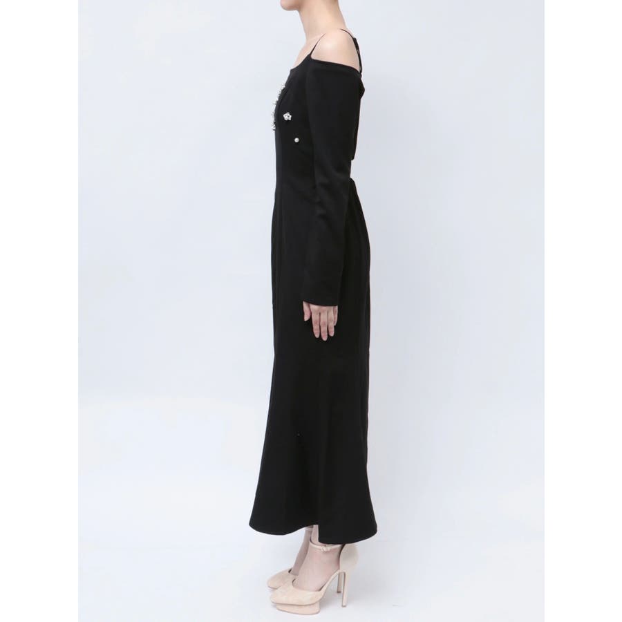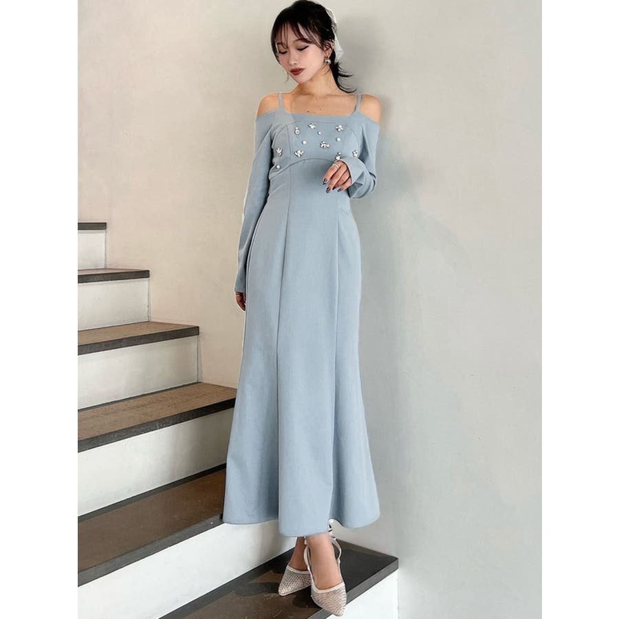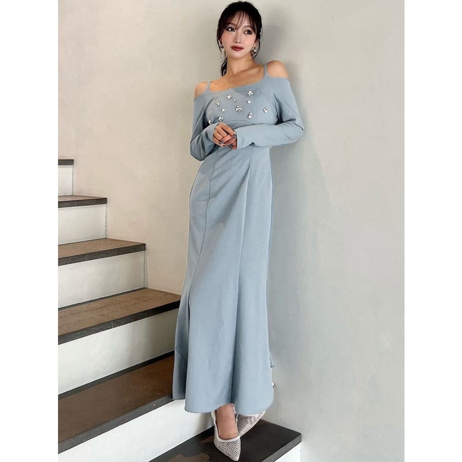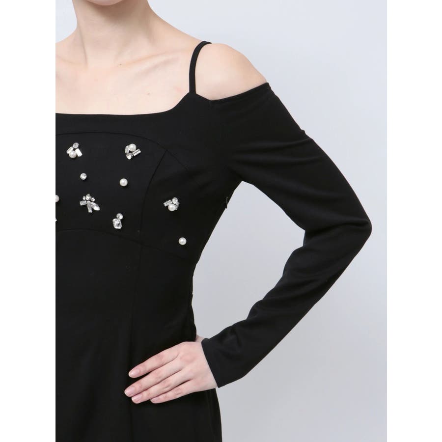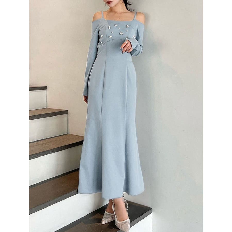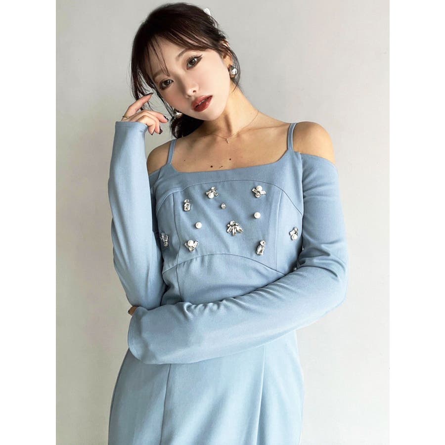 ビジューの煌めきがアクセントになるワンピース▽デザイン▽バスト周りの立体的に刺繍されたビジューが目を惹くマーメイドワンピース。デコルテと肩をスッキリと開け抜け感のあるフェミニンな仕上がりにしました。オフショルデザインがこれからの季節にピッタリ◎ハイウエストの切り替えとバックゴムの仕様で女性らしいシルエットに。表地の程よい光沢感が上品な雰囲気を演出してくれます。▽カラー▽黒・黄色・青の3色展開。▽スタイリング▽シンプルなデザインにビジューが映えるのでパーティーシーンにもオススメ!肌寒い時期はアウターを羽織ってもフロントのビジューがアクセントに◎シューズや小物もキレイめなアイテムでまとめるのがオススメです!※着用画像はフラッシュの加減で実際の製品と色味等が異なる場合がございますので、生地のズームアップ画像をご確認ください。※ご利用の端末画面の設定により実際の商品と色味が異なる場合がございます。【商品特徴】透け感:なし伸縮性:なし生地の厚さ:普通サイズ感:普通裏地:なしポケット:なしファスナー:あり(横)
