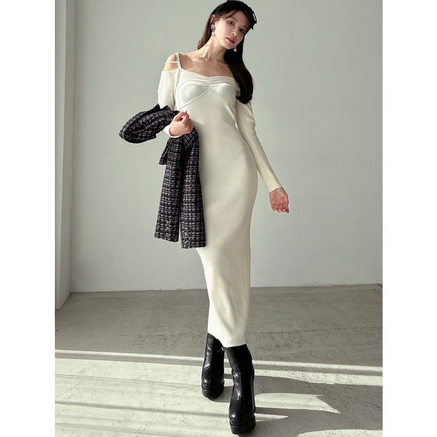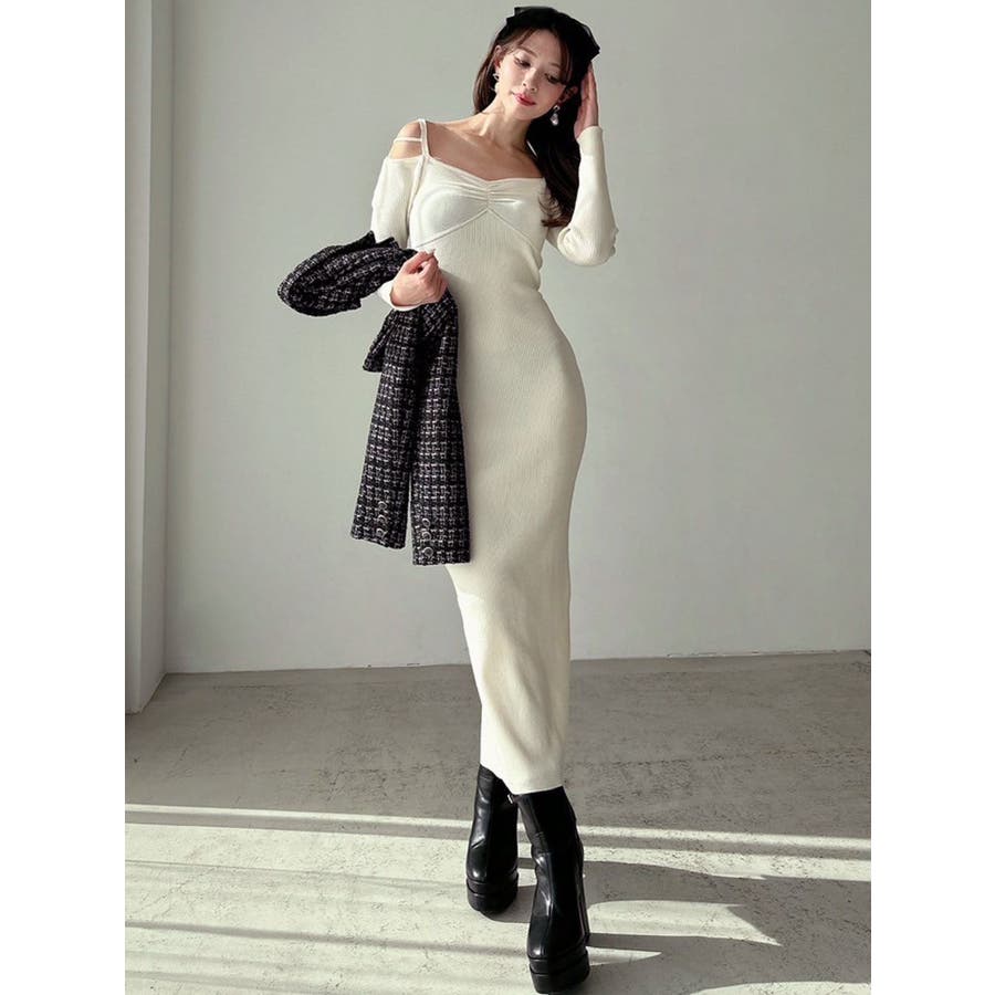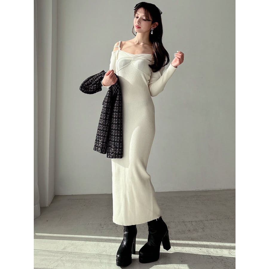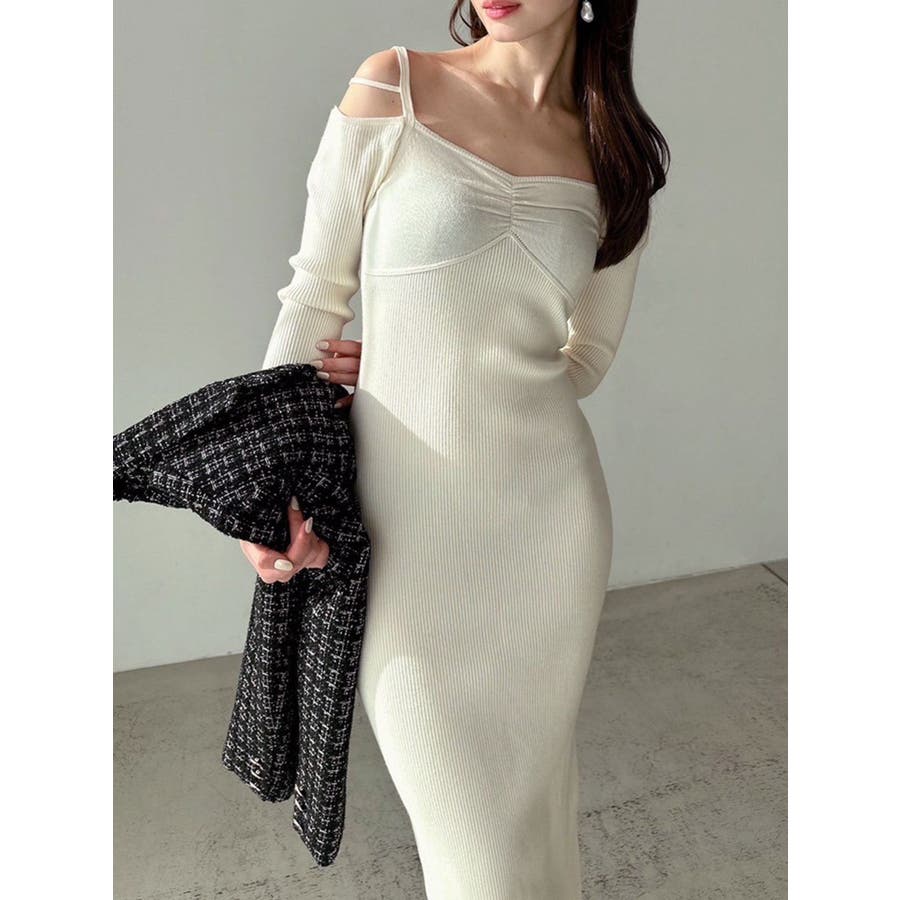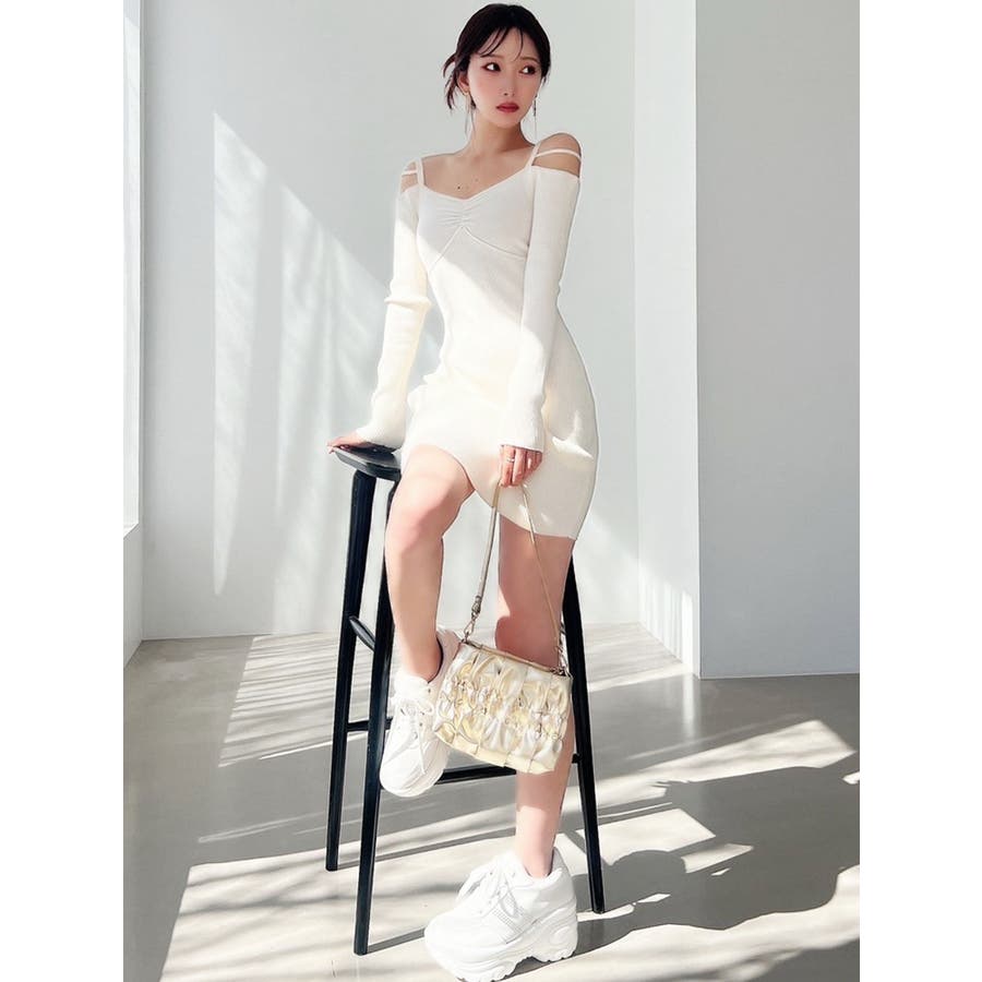 女性らしいデザインの美シルエットワンピース▽デザイン▽華奢なストラップ使いがポイントのニットワンピース♪ショルダー部分に垂れるように設定したストラップが肩回りを華奢に見せてくれるポイント◎ピタッとしたサイズ感でしっかりフィットするので着るだけでスタイルアップ効果抜群◎ミニ丈とロング丈の2サイズ展開なので雰囲気に合わせて丈感をお選びいただけます♪▽カラー▽白・黒・オレンジの3色展開。▽スタイリング▽1枚でコーデが完成する優れもの◎1枚での着用はもちろん、タイトなサイズ感なので薄手のアウターも羽織ることができ、ロングシーズン活躍します。※着用画像はフラッシュの加減で実際の製品と色味等が異なる場合がございますので、生地のズームアップ画像をご確認ください。※ご利用の端末画面の設定により実際の商品と色味が異なる場合がございます。【商品特徴】透け感:なし伸縮性:あり生地の厚さ:普通サイズ感:細身裏地:なしポケット:なしファスナー:なし