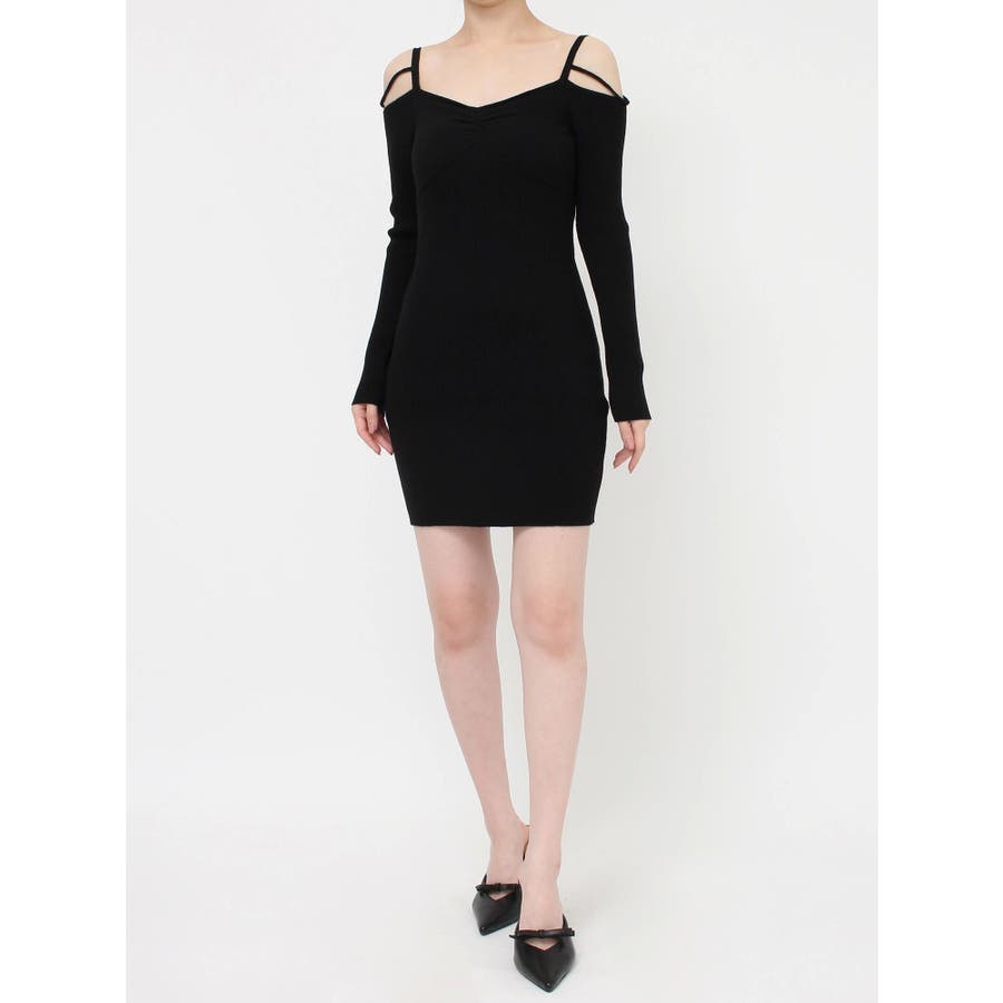 ナローストラップタイトニットワンピース