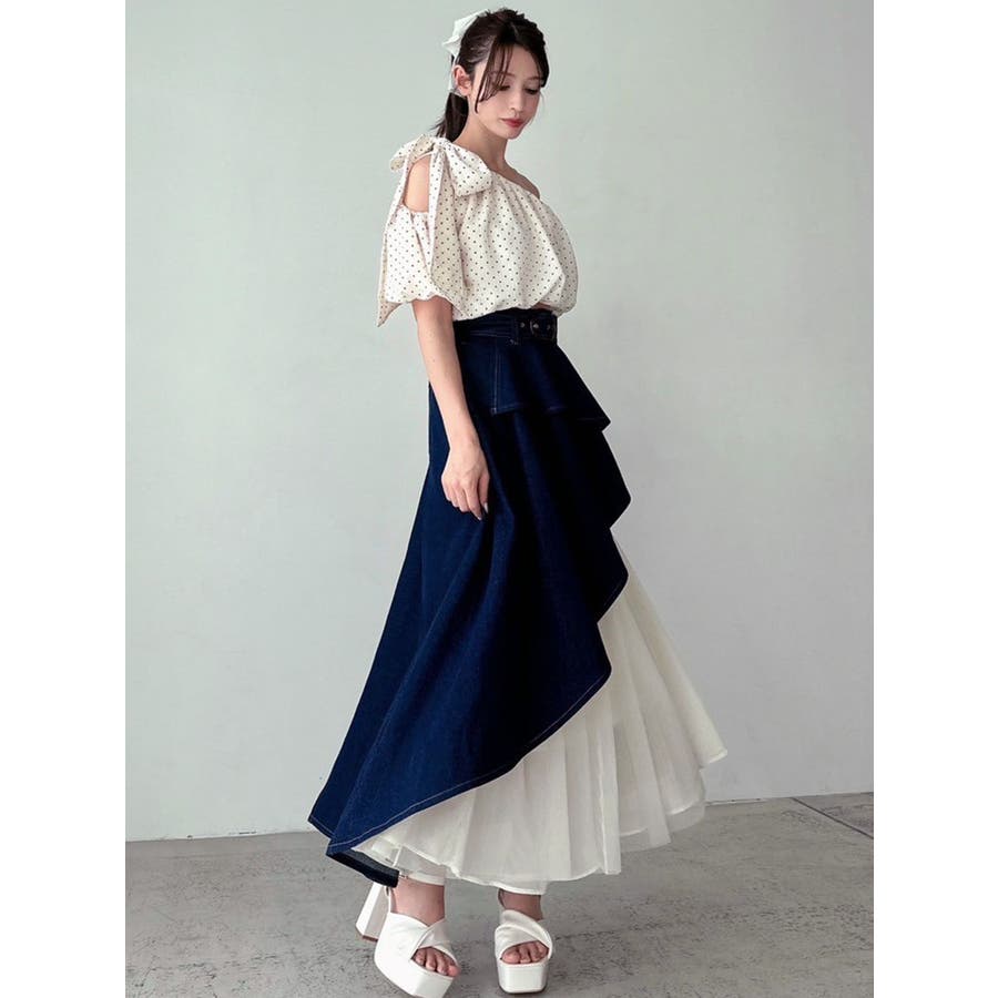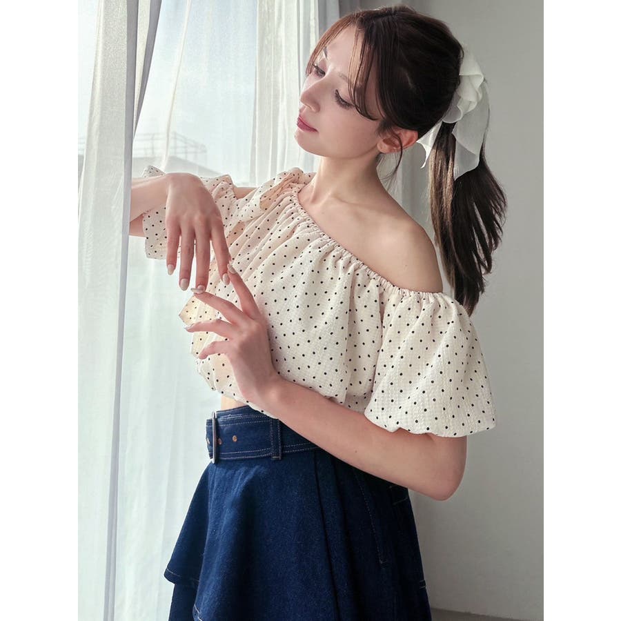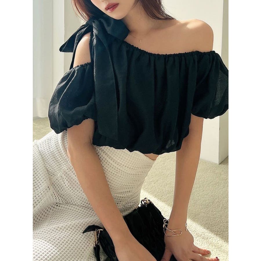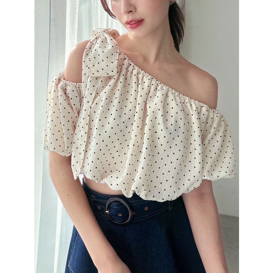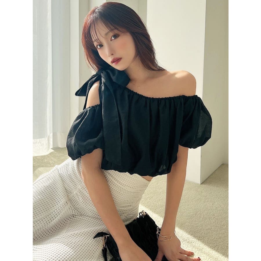 ビッグリボンワンショルブラウス