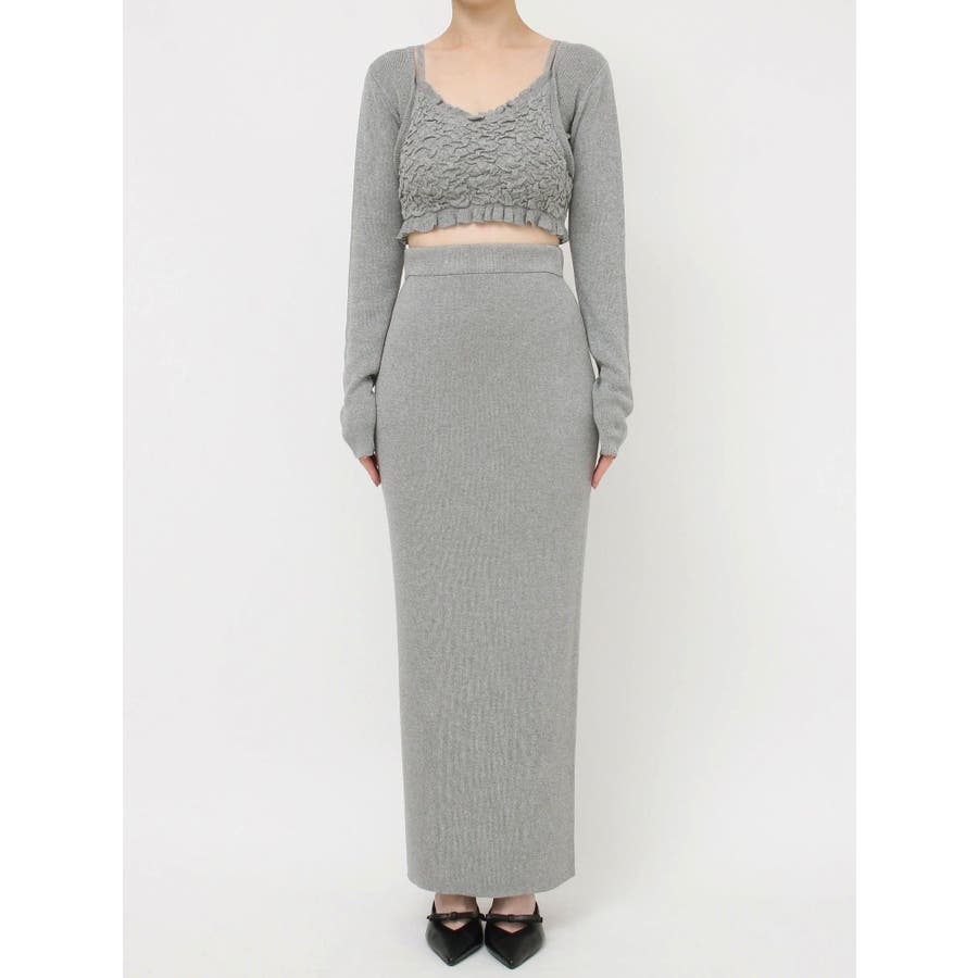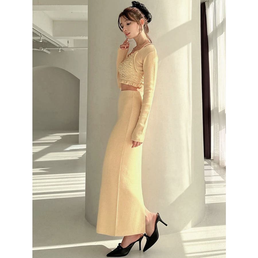 涼しげな糸で編み立てたニットスカート▽デザイン▽ベーシックなデザインで縦のラインを強調するタイトスカート。伸縮性に富んだニット素材でストレスフリーに着用可能◎ハイウエストでウエストゴムになっているのでどんな身長の方でも着やすいアイテムです。シンプルなタイトスカートは1枚持っているとオールシーズン活躍します!▽カラー▽ライトグレー・黄色・ネイビーの3色展開。▽スタイリング▽同色のニットと合わせたセットアップ着用が一気にレディなコーデに。お持ちのTシャツやブラウスなど様々なトップスに合わせやすいベーシックアイテムです。※着用画像はフラッシュの加減で実際の製品と色味等が異なる場合がございますので、生地のズームアップ画像をご確認ください。※ご利用の端末画面の設定により実際の商品と色味が異なる場合がございます。【商品特徴】透け感:なし伸縮性:あり生地の厚さ:普通サイズ感:細身裏地:なしポケット:なし