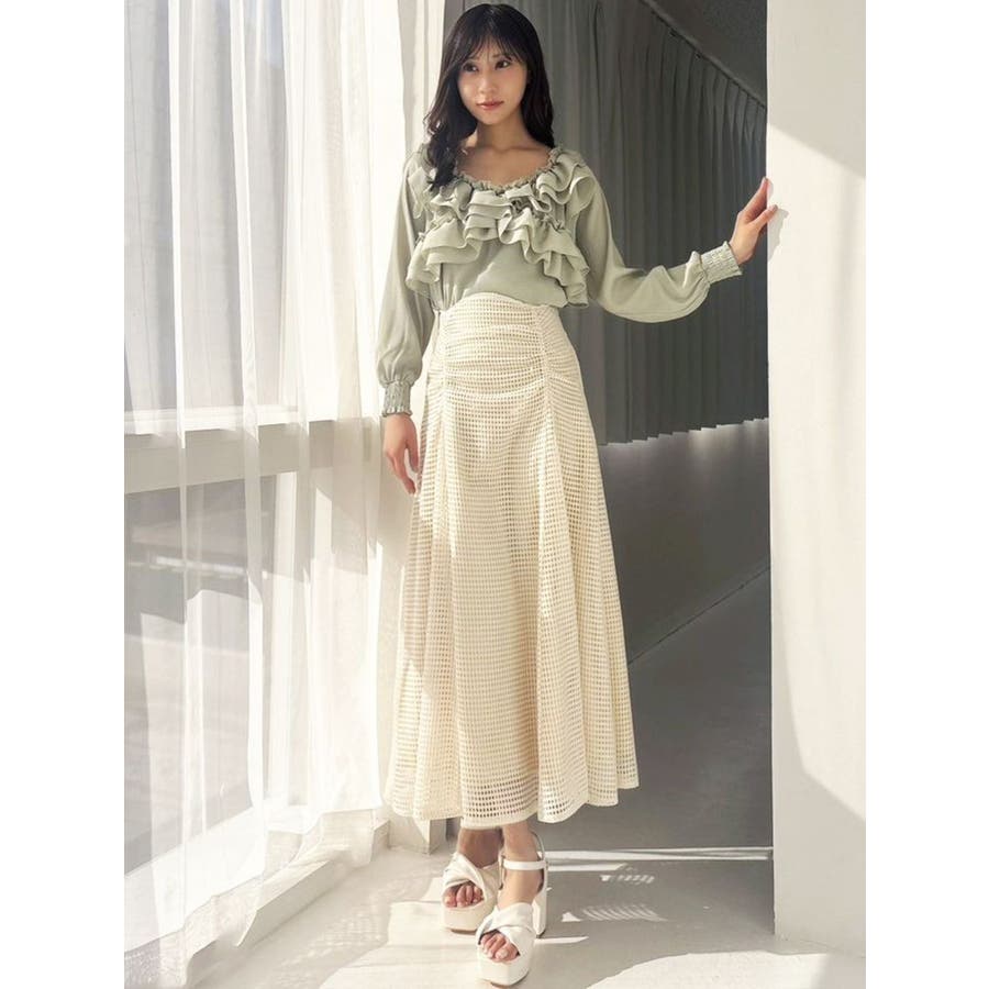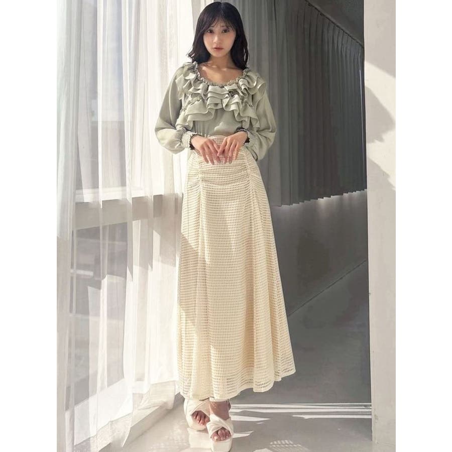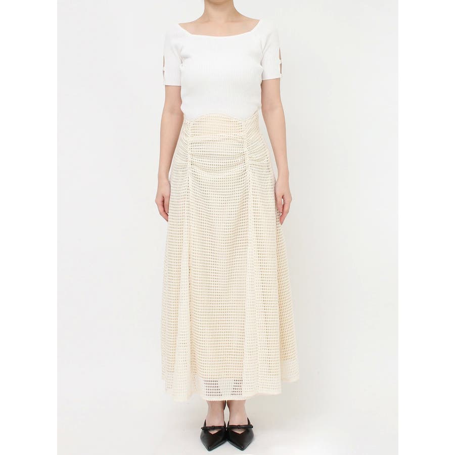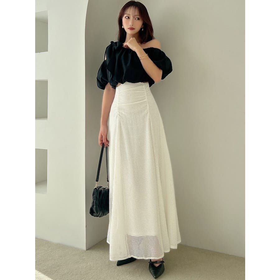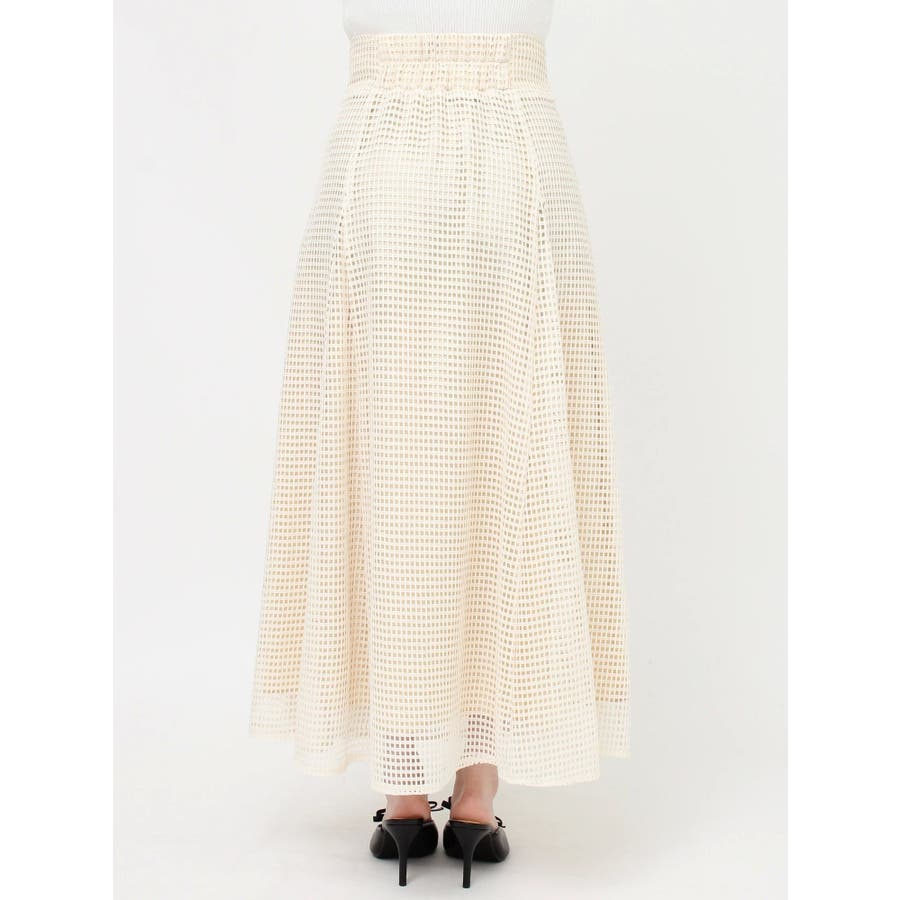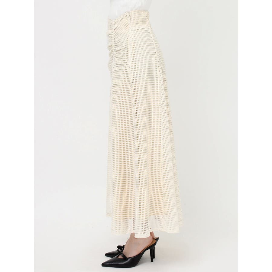 フレアシルエットとレースの透け感が春らしいスカート▽デザイン▽たっぷり寄せたフロントのギャザーがデザインポイント。メッシュ見えのようなレースを使用した軽やかな印象の春アイテム♪ハイウエストに設定してあるのでウエストのホールド感がありフレアスカートでもボディラインを綺麗に拾ってくれます。裾には透け感を出し重たくならないロングスカートです。▽カラー▽白・黒・黄色の3色展開。▽スタイリング▽細見えするウエストデザインなのでトップスをインしたスタイルやクロップド丈のトップス合わせがおすすめ!春から夏にかけて活躍する1枚です。※着用画像はフラッシュの加減で実際の製品と色味等が異なる場合がございますので、生地のズームアップ画像をご確認ください。※ご利用の端末画面の設定により実際の商品と色味が異なる場合がございます。【商品特徴】透け感:なし伸縮性:なし生地の厚さ:普通サイズ感:普通裏地:ありポケット:なし