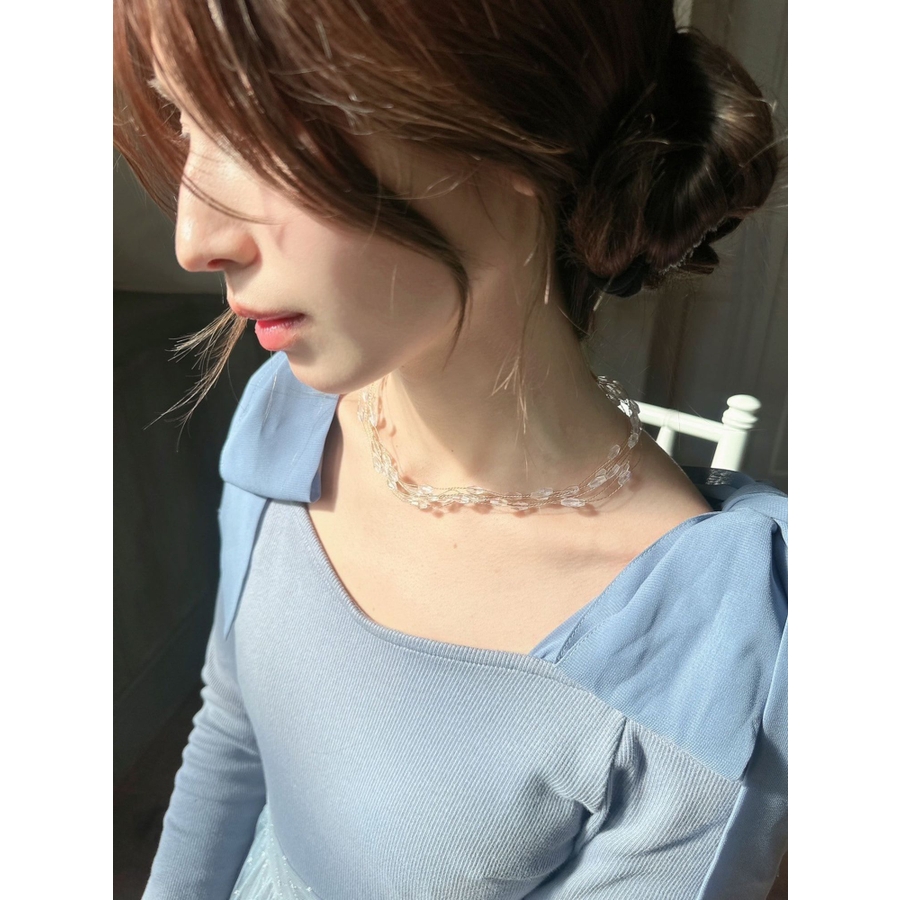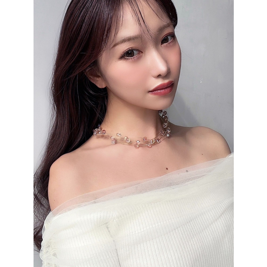 クリアビーズが何重にも重なったシャイニーネックレス。クリアビーズの為、重たくならず、だけど存在感のあるネックレスです。春先から夏まで、華やかに見せたいときにピッタリのアイテムです。