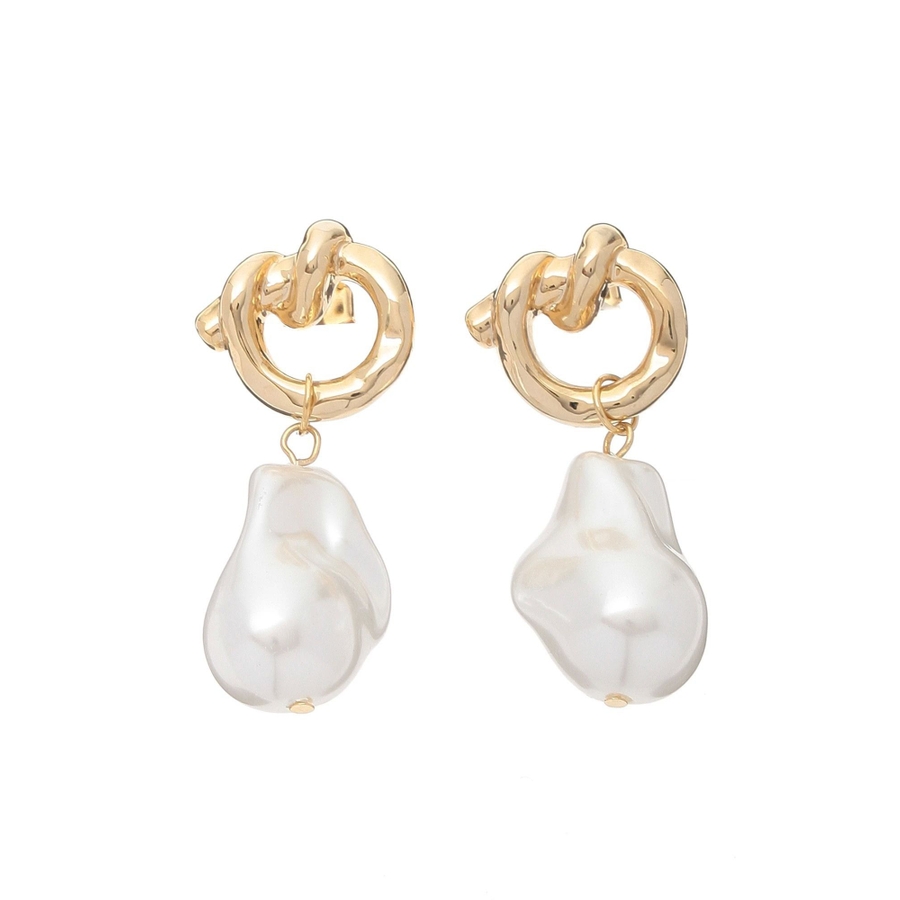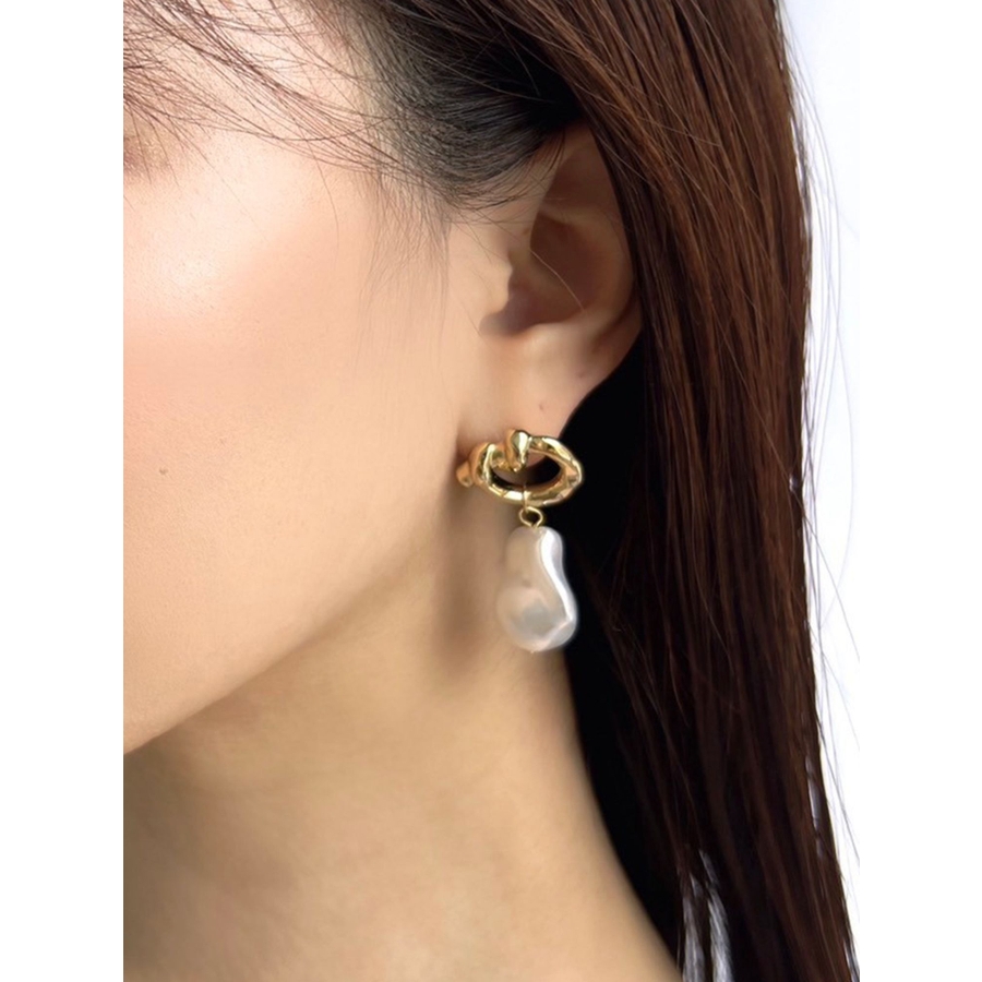 大粒のバロック調のモチーフが新鮮なピアス。さりげなく揺れるパールの優しい光沢感がコーディネートのアクセントに。シンプルなデザインで普段使いやオケージョンにもお使いいただけるアイテムです。