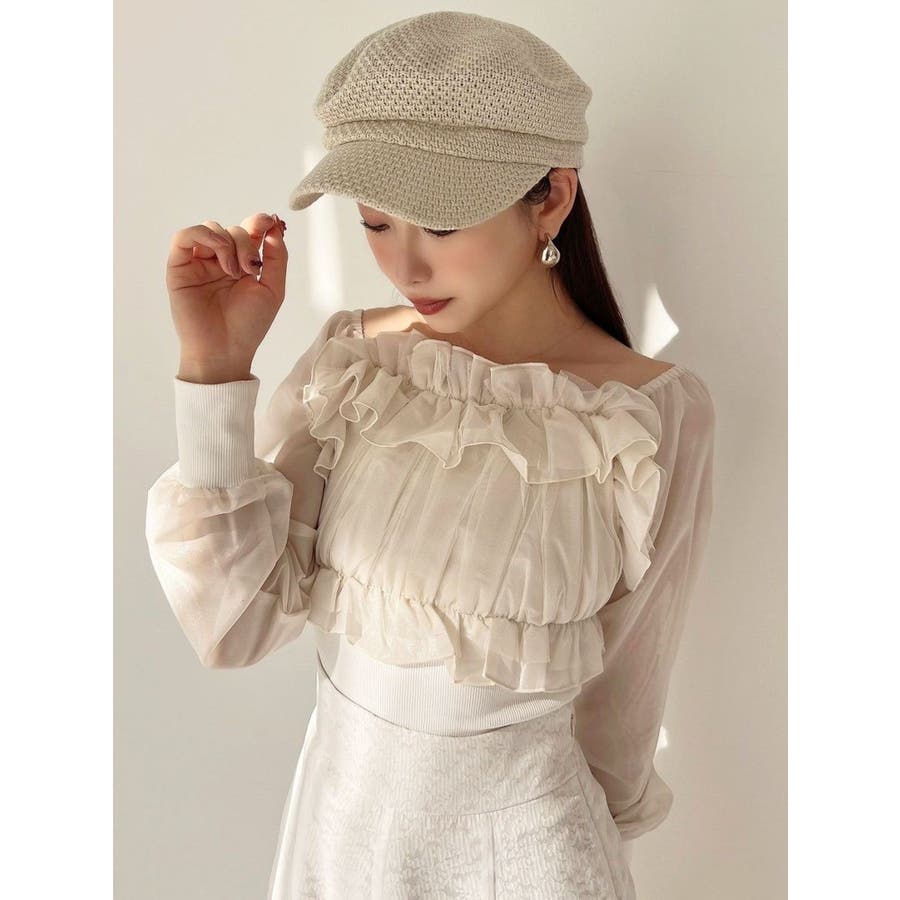 シンプルなデザインのキャスケット。小顔効果抜群のサイズ感とフィット感でスタイルアップも叶うアイテムです♪トレンドっぽい編地で一気にオシャレな印象に。