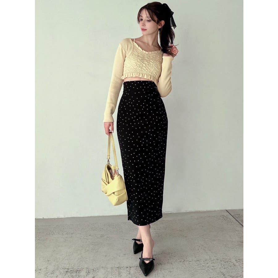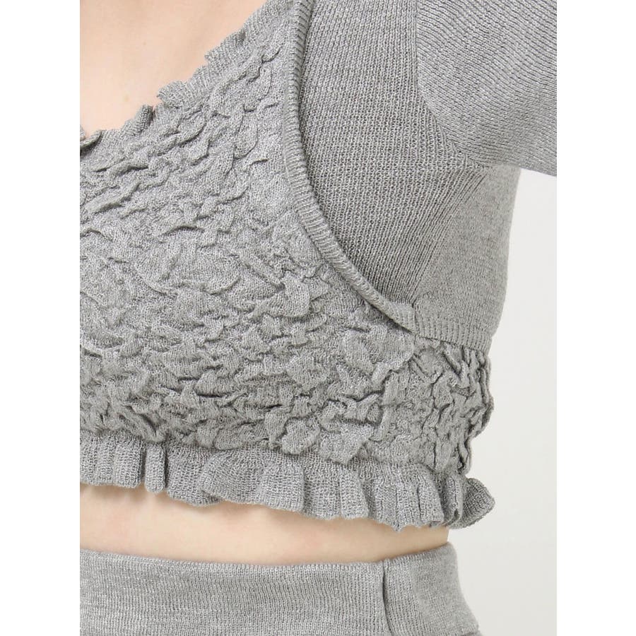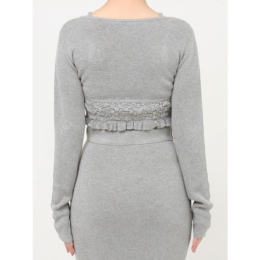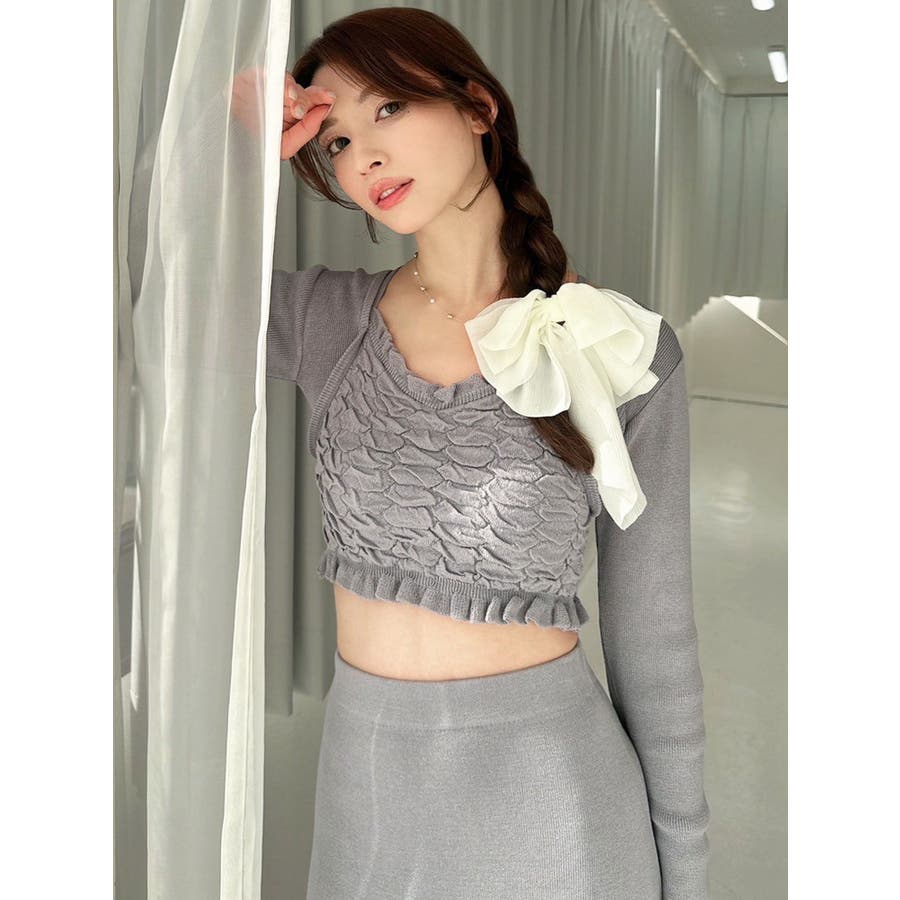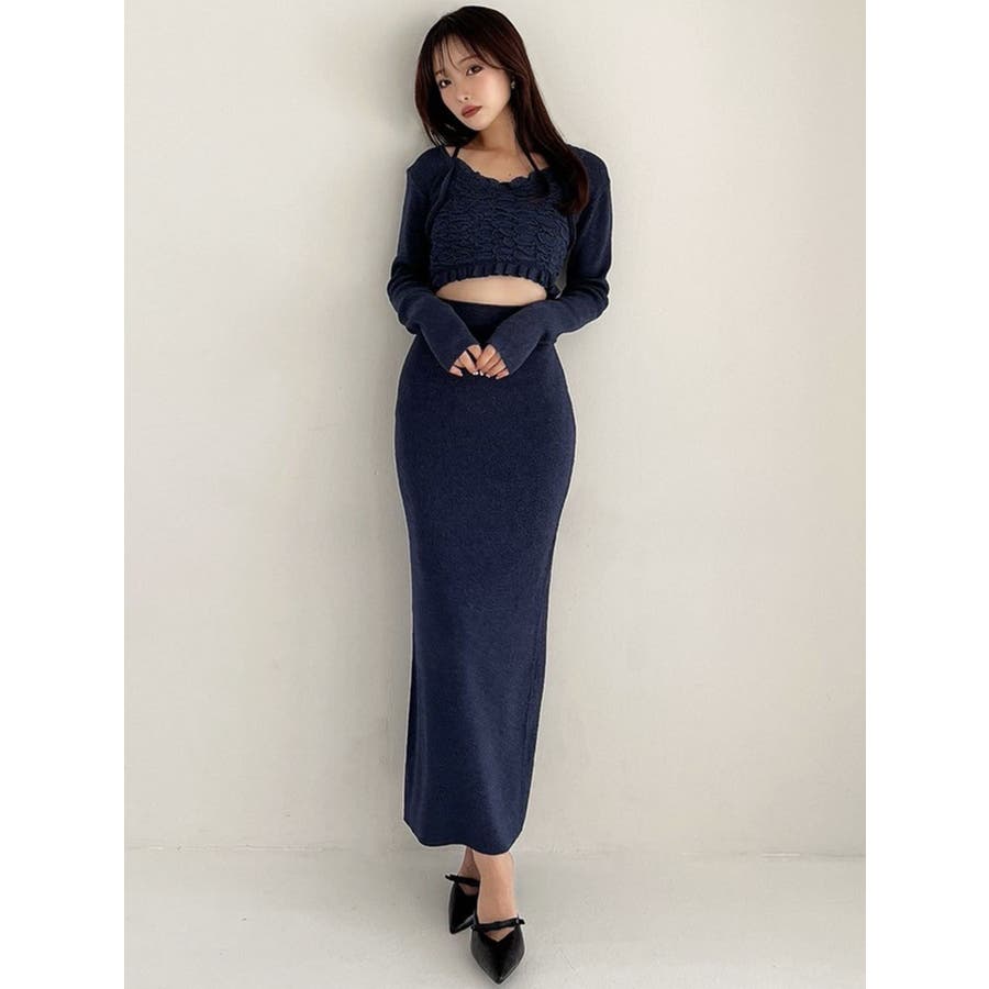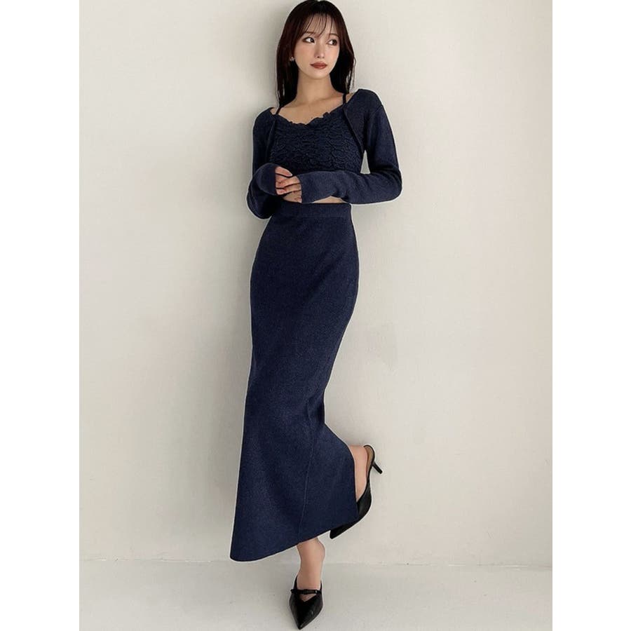 タイトなシルエットで女性らしさUPのニット▽デザイン▽凹凸感のあるデザインがポイントでオシャレ度の上がる1着。キャミとカーディガンのレイヤード見えデザインでこなれ感をプラス。Vネックで顔周りをスッキリ見せ、タイトでボディにフィットするので1枚で女性らしい雰囲気に仕上がります。▽カラー▽ライトグレー・黄色・ネイビーの3色展開。▽スタイリング▽同色のニットスカートと合わせたセットアップ着用が一気にレディなコーデに。クロップド丈なので上半身をコンパクトに見せ、スタイルアップが叶います。【セットアップアイテムはコチラ】152520809301:タイトロングスカート※着用画像はフラッシュの加減で実際の製品と色味等が異なる場合がございますので、生地のズームアップ画像をご確認ください。※ご利用の端末画面の設定により実際の商品と色味が異なる場合がございます。【商品特徴】透け感:なし伸縮性:あり生地の厚さ:普通サイズ感:細身裏地:なしポケット:なし