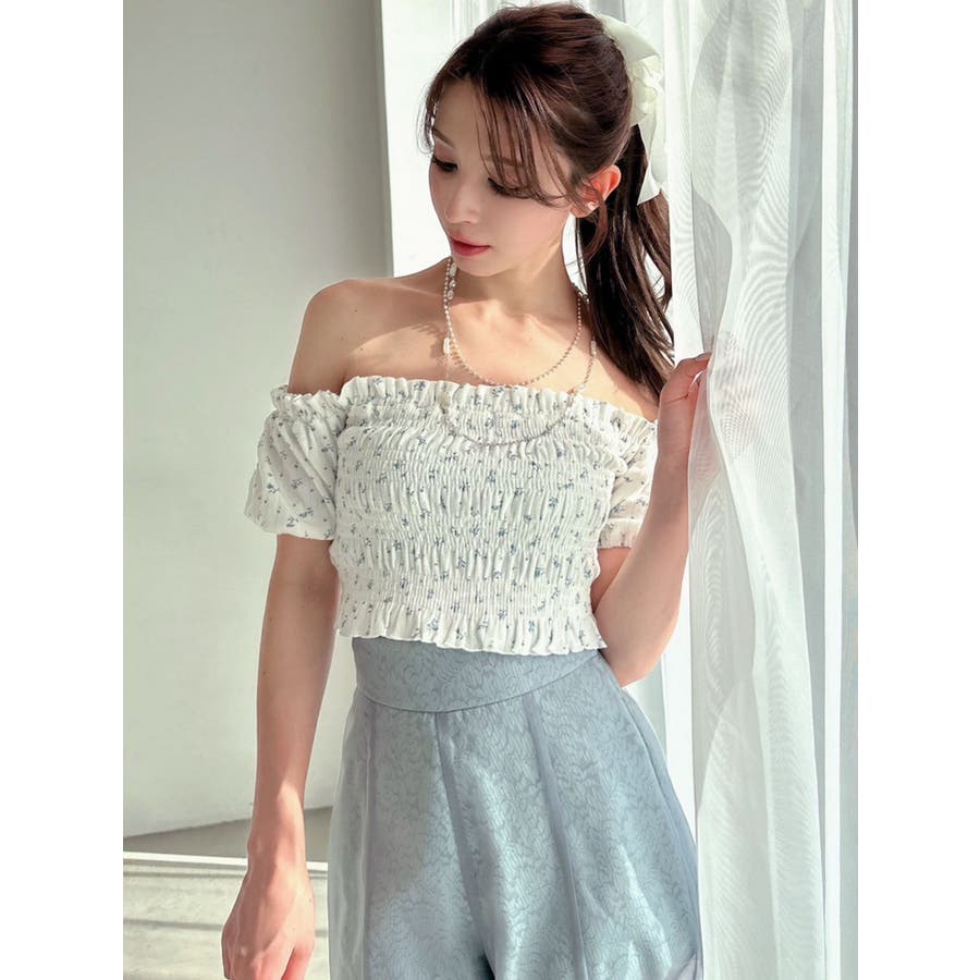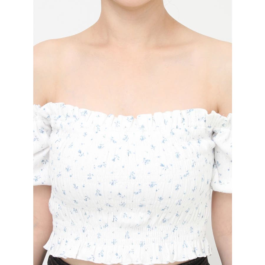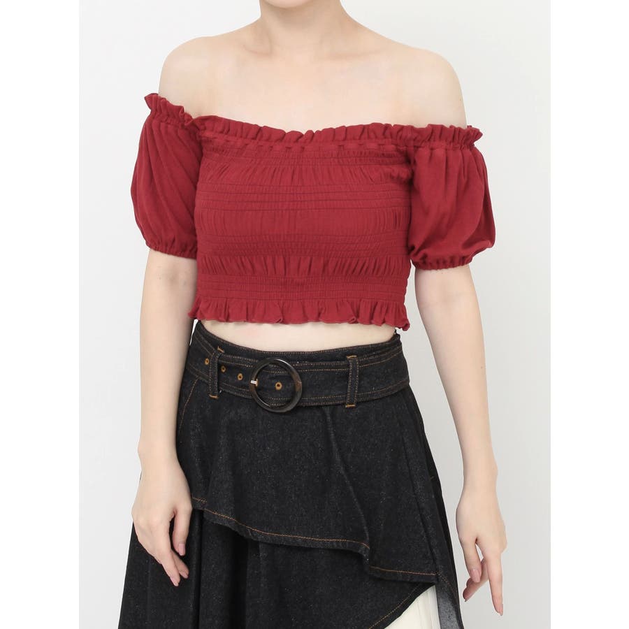 コンパクトなサイズ感のカットブラウス▽デザイン▽身頃にはシャーリングをほどこし、程良く身体にフィットしてくれます。オフショルダーで肌見せができ、シンプルながら女性らしい1枚。カット素材なので着心地もよく、夏まで活躍します。▽カラー▽白・黒・赤の3色展開。白はトレンド感のある小花柄でご用意。▽スタイリング▽クロップド丈なのでハイウエストボトム合わせがおすすめ!夏には1枚で着用でき、春先にはタイトなサイズ感なので薄手の羽織りも合わせやすく着回ししやすいトップスです。※着用画像はフラッシュの加減で実際の製品と色味等が異なる場合がございますので、生地のズームアップ画像をご確認ください。※ご利用の端末画面の設定により実際の商品と色味が異なる場合がございます。【商品特徴】透け感:なし伸縮性:あり生地の厚さ:普通サイズ感:普通裏地:なし ポケット:なし