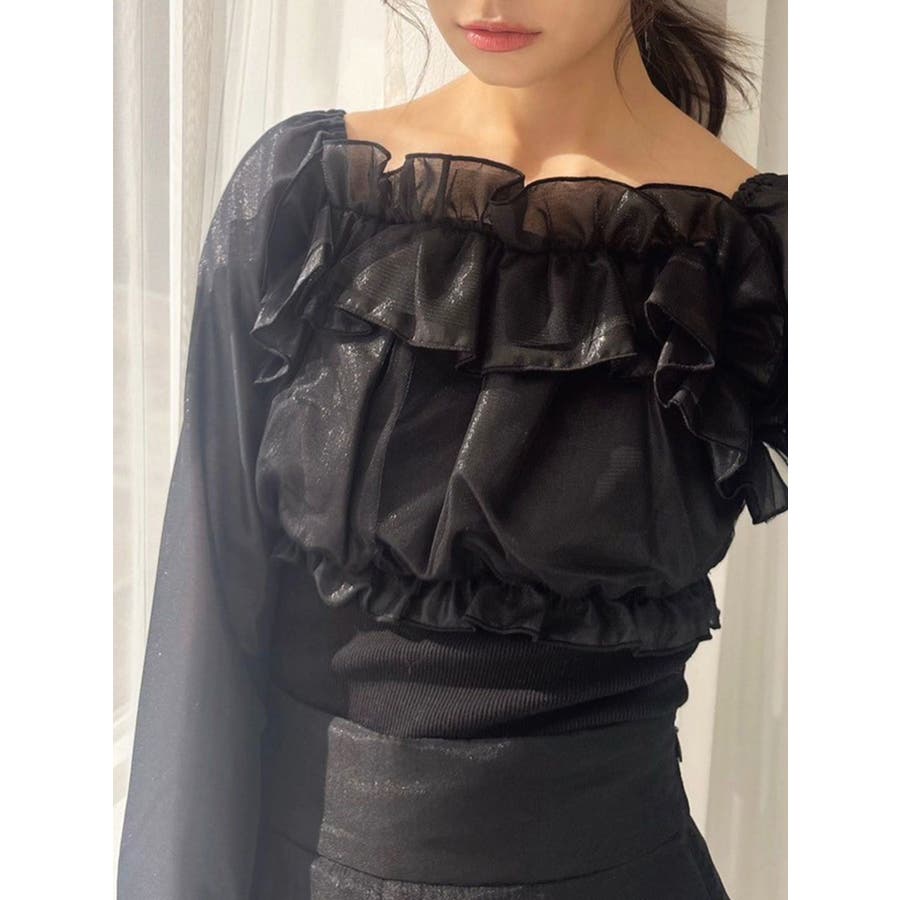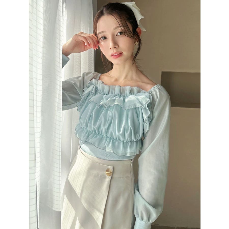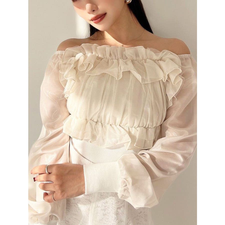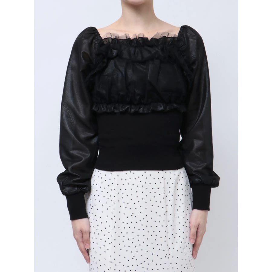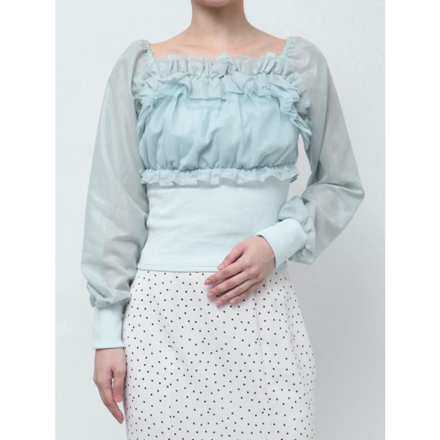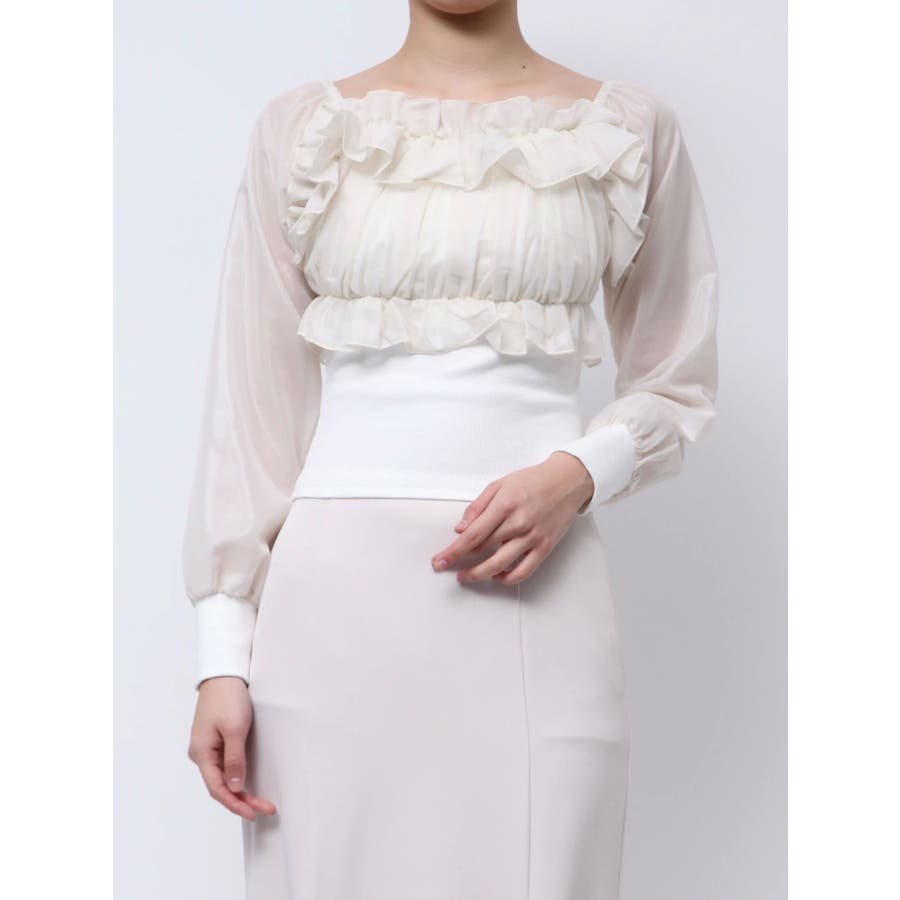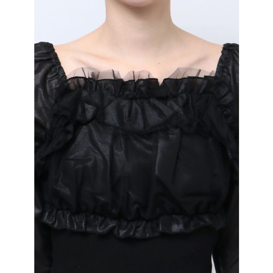 シアーとチュールをドッキングした華やかで贅沢なトップス▽デザイン▽たっぷりとギャザーを寄せたシアー生地とチュールのボリューム感に目を惹く1着♪テレコリブにしたことで春先まで長く活躍。オフショルでも着用できる2WAY仕様です◎バスト部分がチュール維持でボリューム感があるのでオフショルで肌見せすることでバランス感の取れたコーデになります。▽カラー▽白・黒・青の3色展開。▽スタイリング▽華やかでコーデの主役になるトップスなのでスカートからパンツまで様々なボトムとマッチ。インしたスタイリングが上半身をコンパクトに見せてくれます◎※着用画像はフラッシュの加減で実際の製品と色味等が異なる場合がございますので、生地のズームアップ画像をご確認ください。※ご利用の端末画面の設定により実際の商品と色味が異なる場合がございます。【商品特徴】透け感:なし伸縮性:ややあり生地の厚さ:普通サイズ感:普通裏地:なしポケット:なし