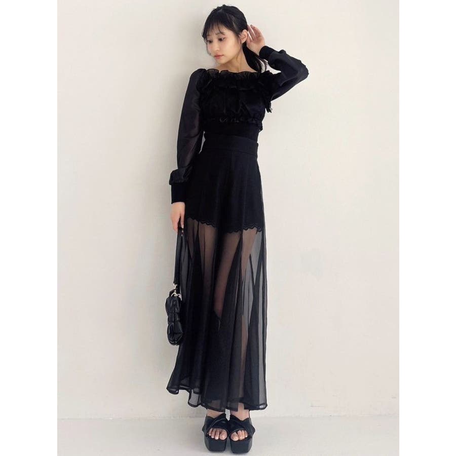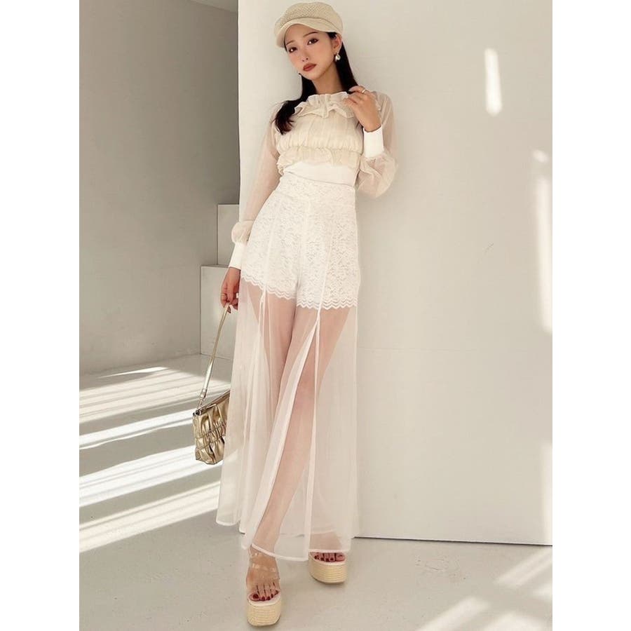 | 素材 | リブ:綿93% ポリウレタン7% 布帛部分:ポリエステル100% チュール:ポリエステル100% |