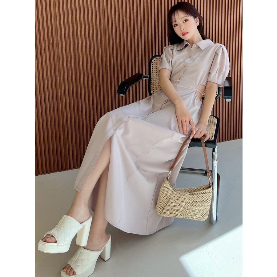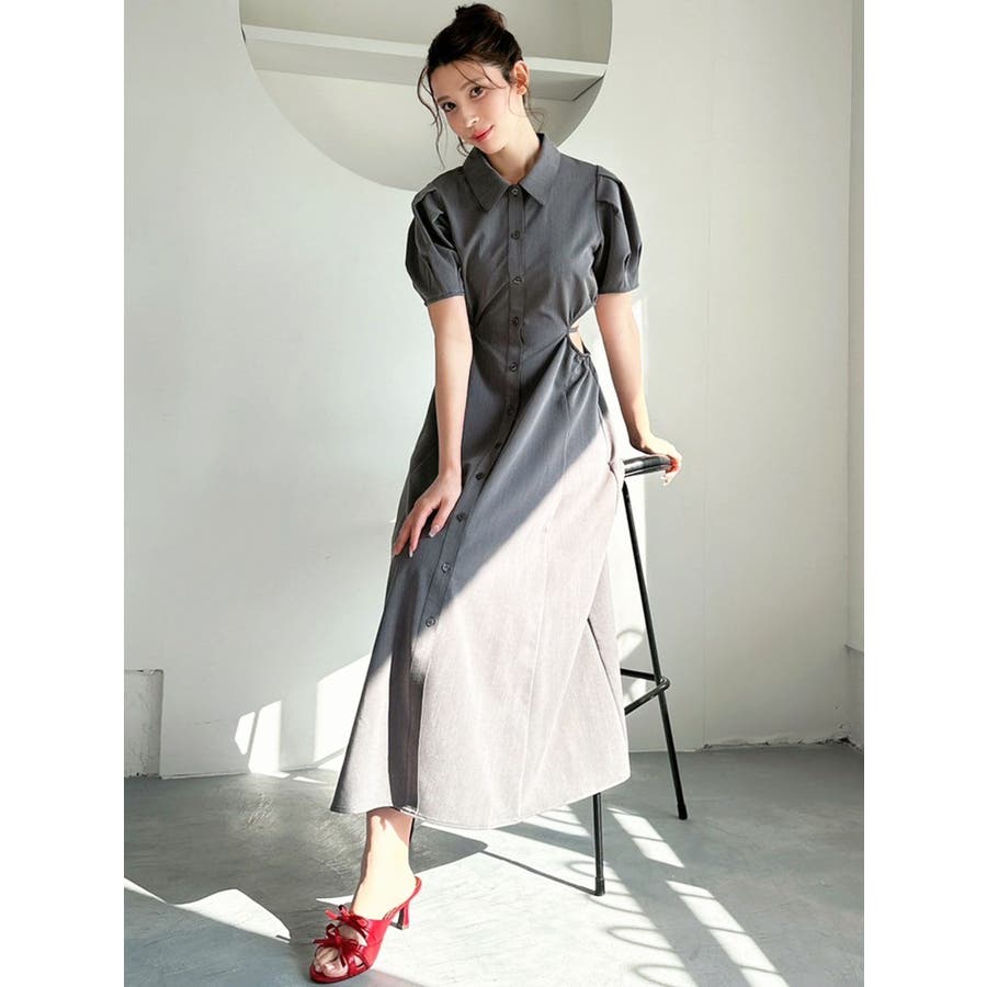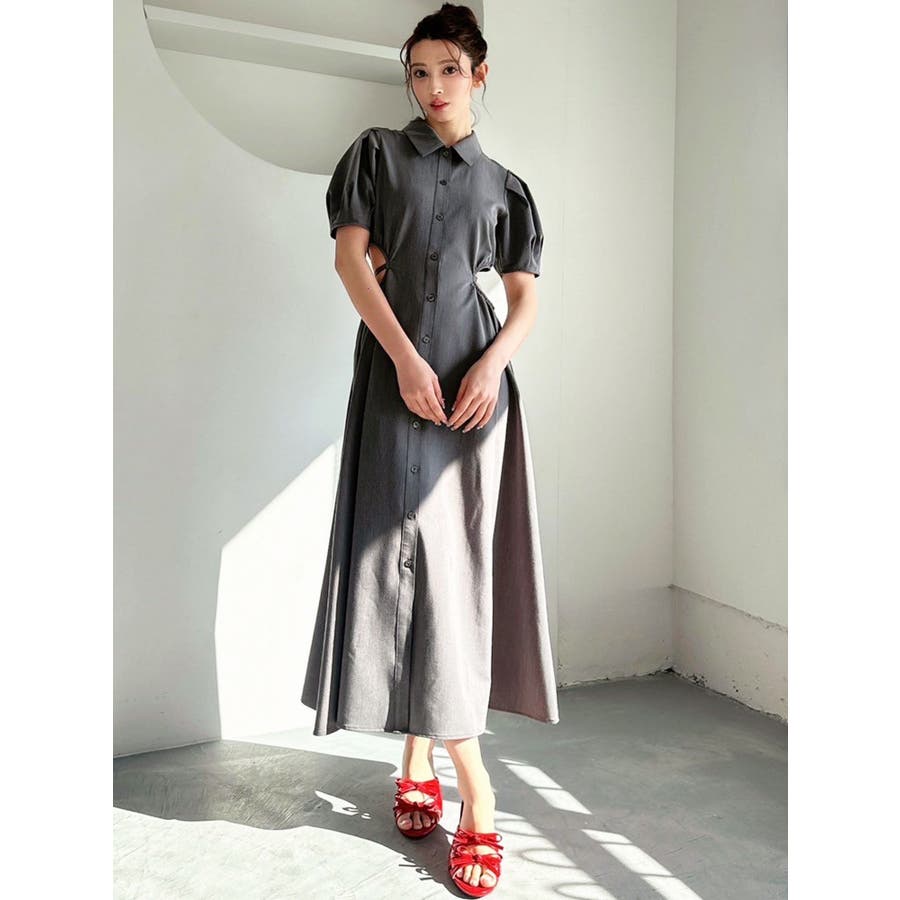 ウエストオープンシャツワンピース