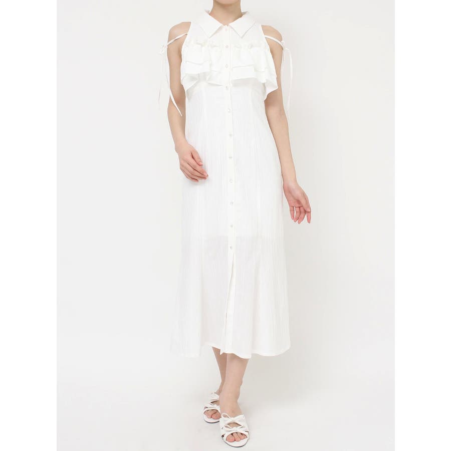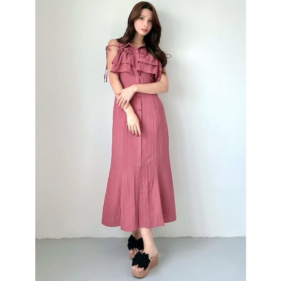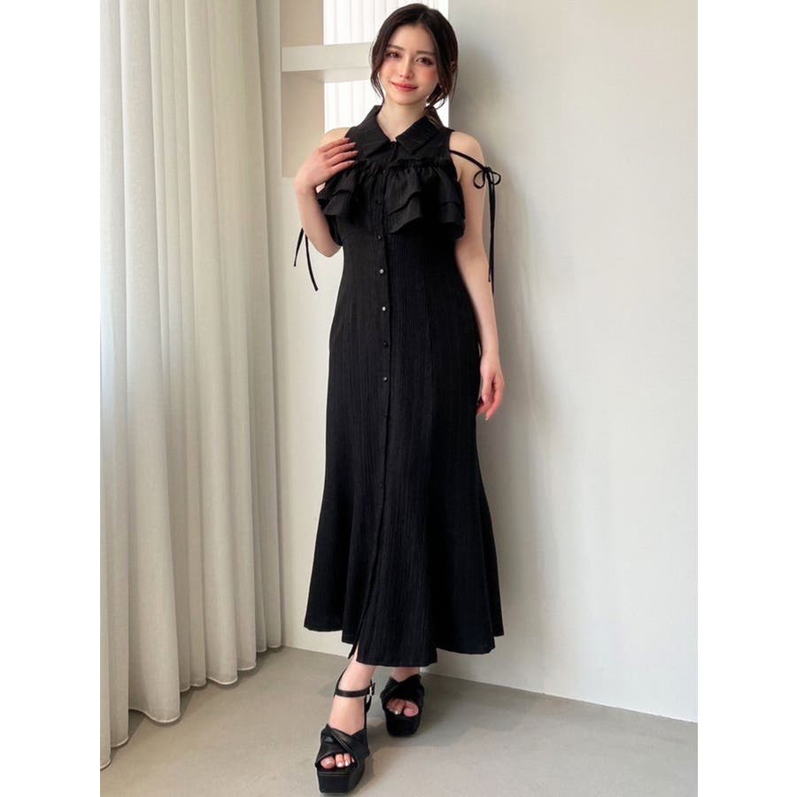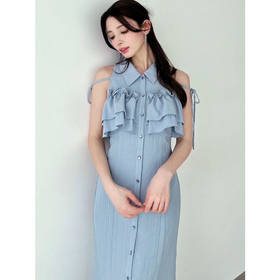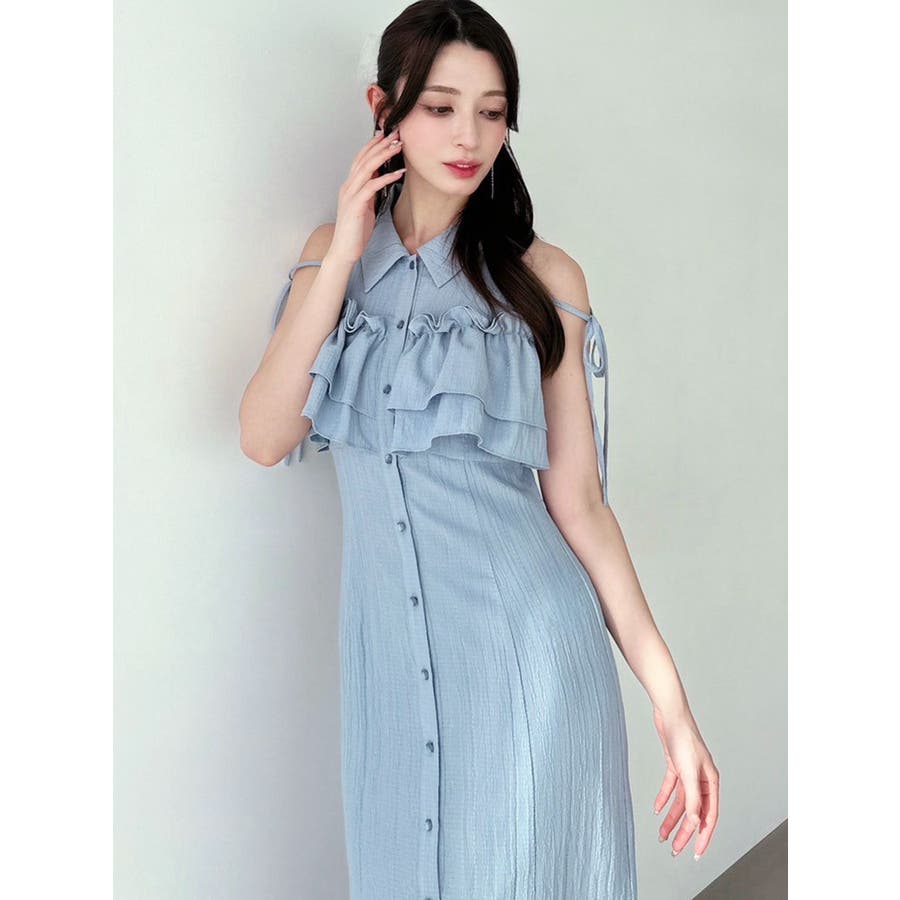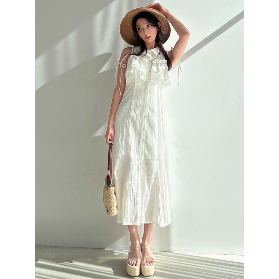 今季イチオシ!NEWデザインのシャツワンピース▽完売カラーはこちら152540321501:【追加生産分】ラッフルマーメイドシャツワンピース▽デザイン▽バストのラッフルデザインに目を惹くシャツワンピース。ショルダー部分はストラップを垂らし付け、リボン結びをすることで可愛さをプラスさせました♪裾に向かって広がるマーメイドシルエットとバックウエストゴムでボディラインも綺麗に見えるのがポイント。表面感のある生地を使用し、シーズンムードを高めます。▽カラー▽白・黒・青・プラムの4色展開。▽スタイリング▽1枚でサラッと涼し気に着れて、上品で大人なキレイ目コーデが完成◎普段使いはもちろん、デートやパーティー・リゾートなど様々なシーンで映える華やかなデザインのワンピース。夏小物との相性も抜群です♪※着用画像はフラッシュの加減で実際の製品と色味等が異なる場合がございますので、生地のズームアップ画像をご確認ください。※ご利用の端末画面の設定により実際の商品と色味が異なる場合がございます。【商品特徴】透け感:なし伸縮性:なし生地の厚さ:薄手サイズ感:普通裏地:ありポケット:なしファスナー:なし