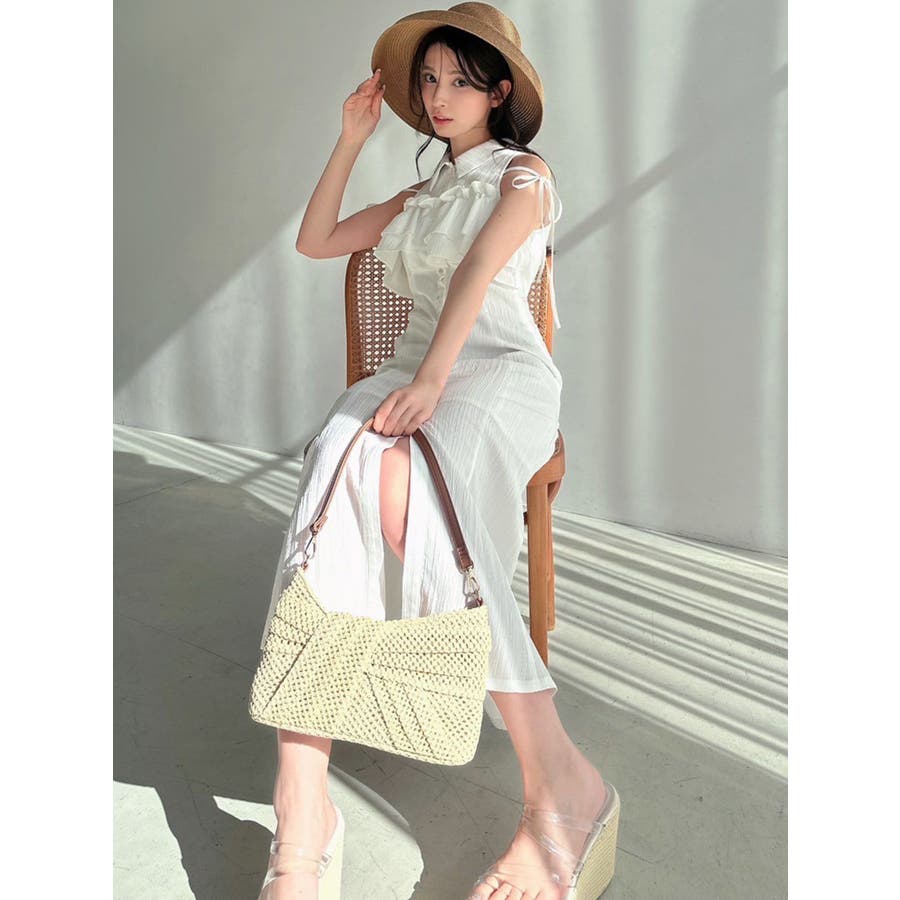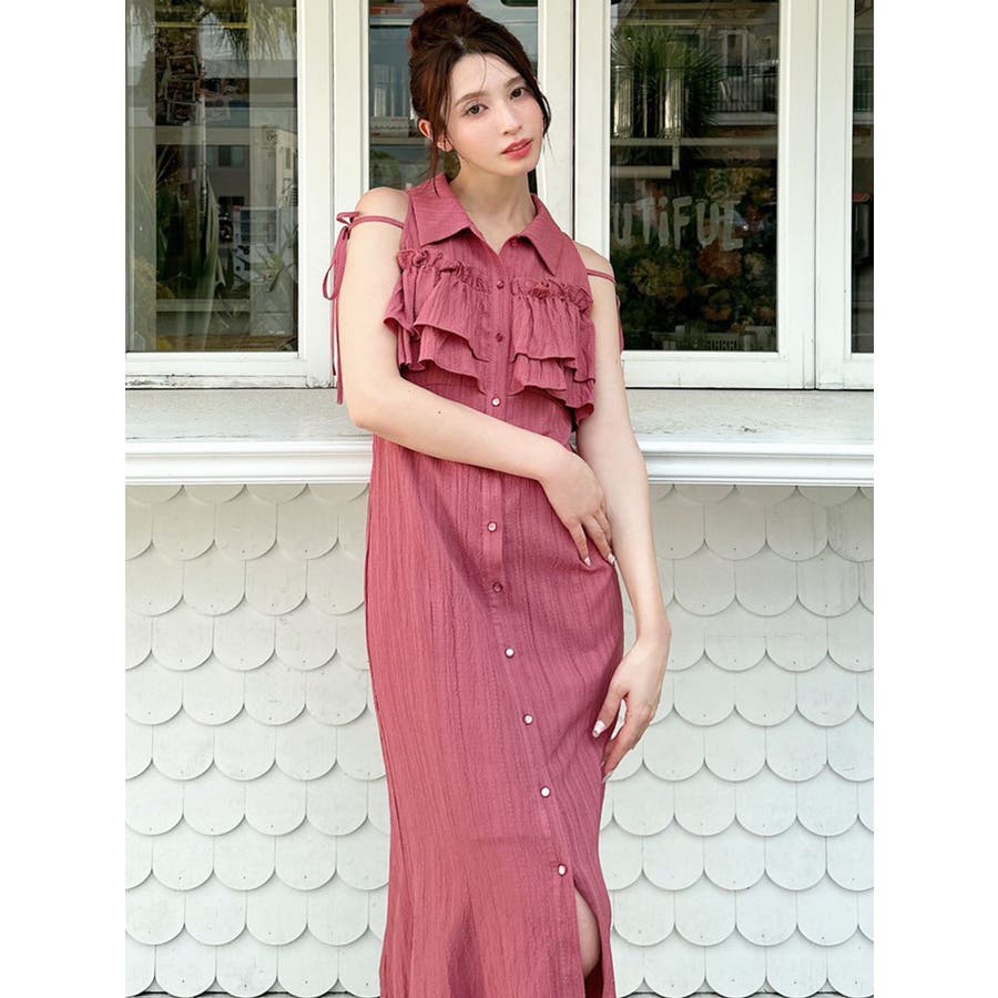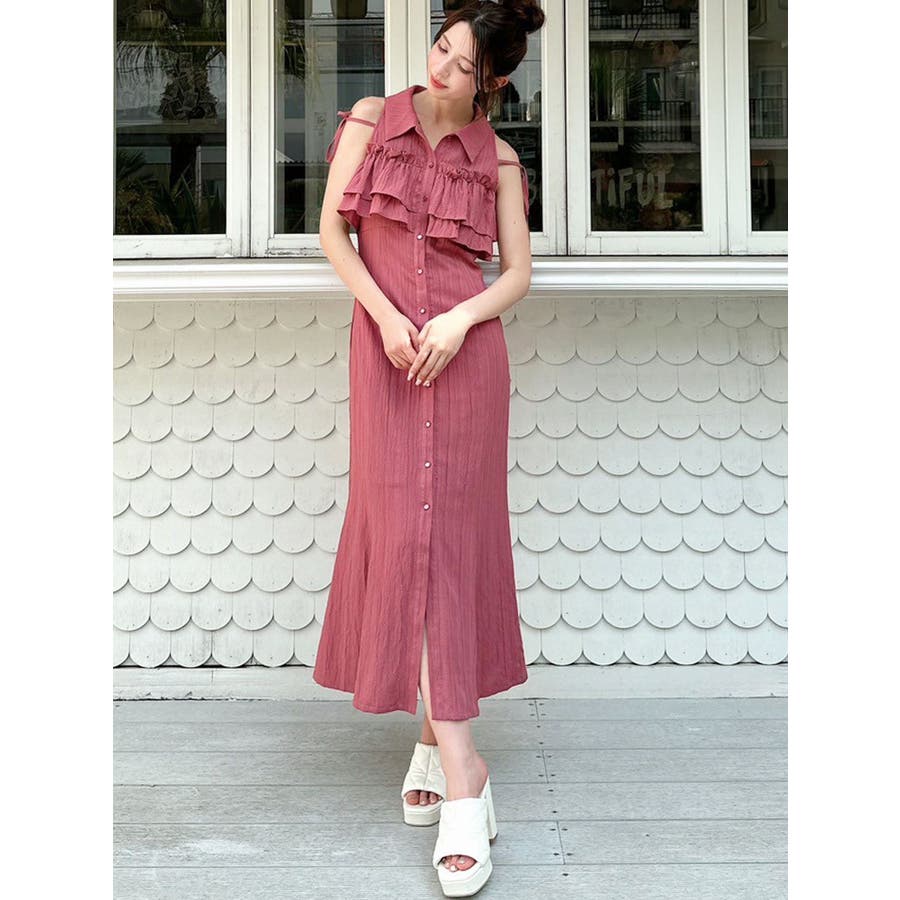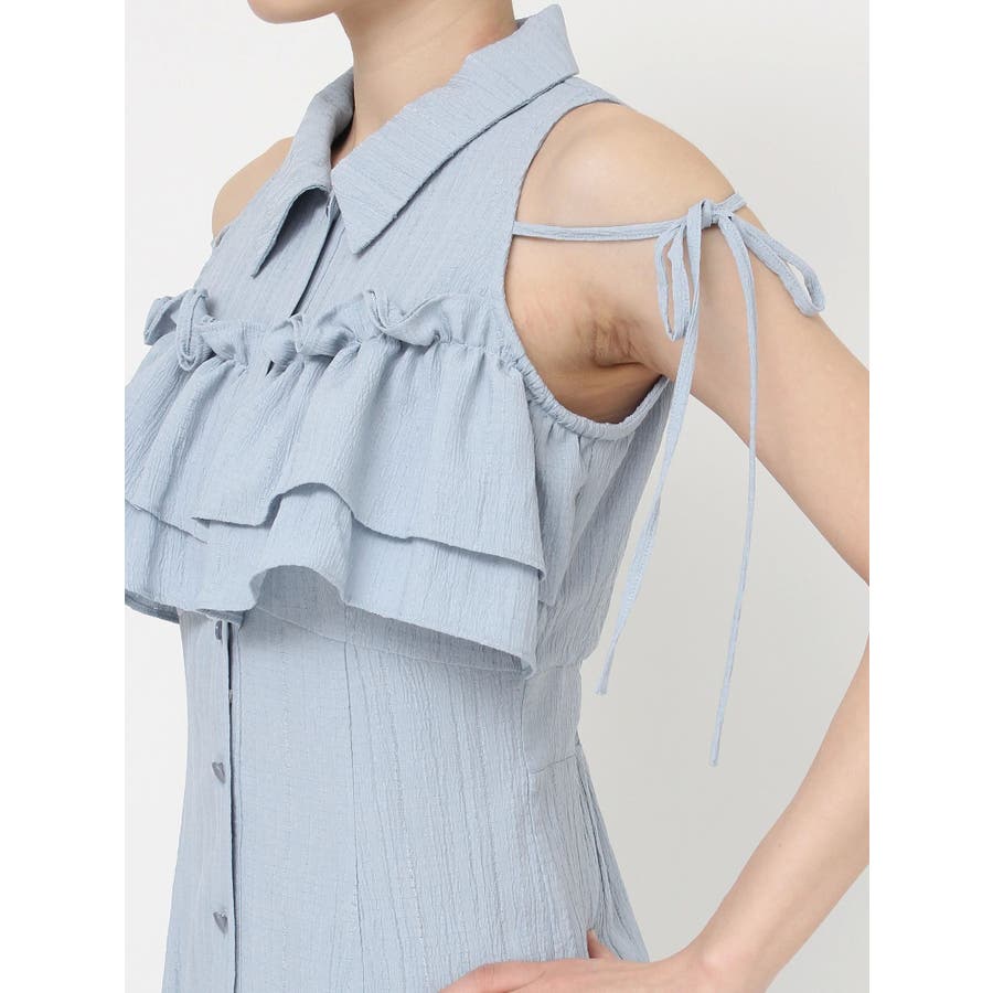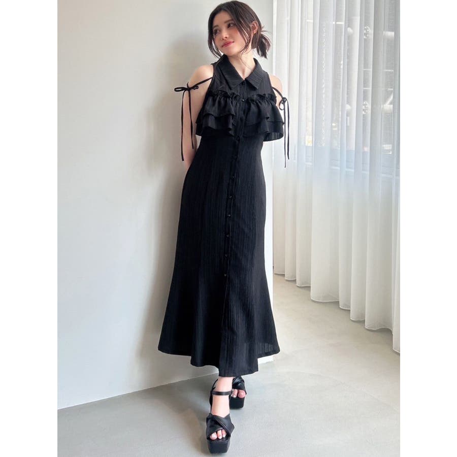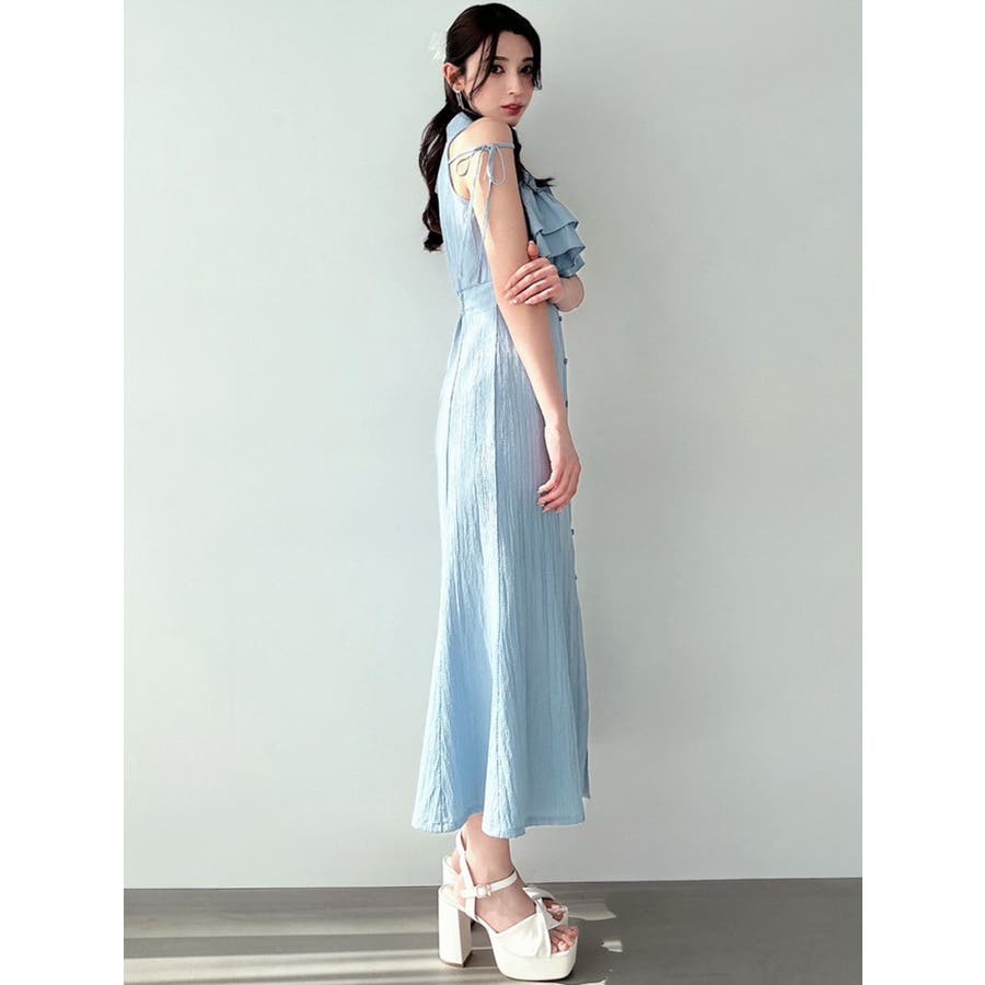 今季イチオシ!NEWデザインのシャツワンピース▽完売カラーはこちら152540321501:【追加生産分】ラッフルマーメイドシャツワンピース▽デザイン▽バストのラッフルデザインに目を惹くシャツワンピース。ショルダー部分はストラップを垂らし付け、リボン結びをすることで可愛さをプラスさせました♪裾に向かって広がるマーメイドシルエットとバックウエストゴムでボディラインも綺麗に見えるのがポイント。表面感のある生地を使用し、シーズンムードを高めます。▽カラー▽白・黒・青・プラムの4色展開。▽スタイリング▽1枚でサラッと涼し気に着れて、上品で大人なキレイ目コーデが完成◎普段使いはもちろん、デートやパーティー・リゾートなど様々なシーンで映える華やかなデザインのワンピース。夏小物との相性も抜群です♪※着用画像はフラッシュの加減で実際の製品と色味等が異なる場合がございますので、生地のズームアップ画像をご確認ください。※ご利用の端末画面の設定により実際の商品と色味が異なる場合がございます。【商品特徴】透け感:なし伸縮性:なし生地の厚さ:薄手サイズ感:普通裏地:ありポケット:なしファスナー:なし