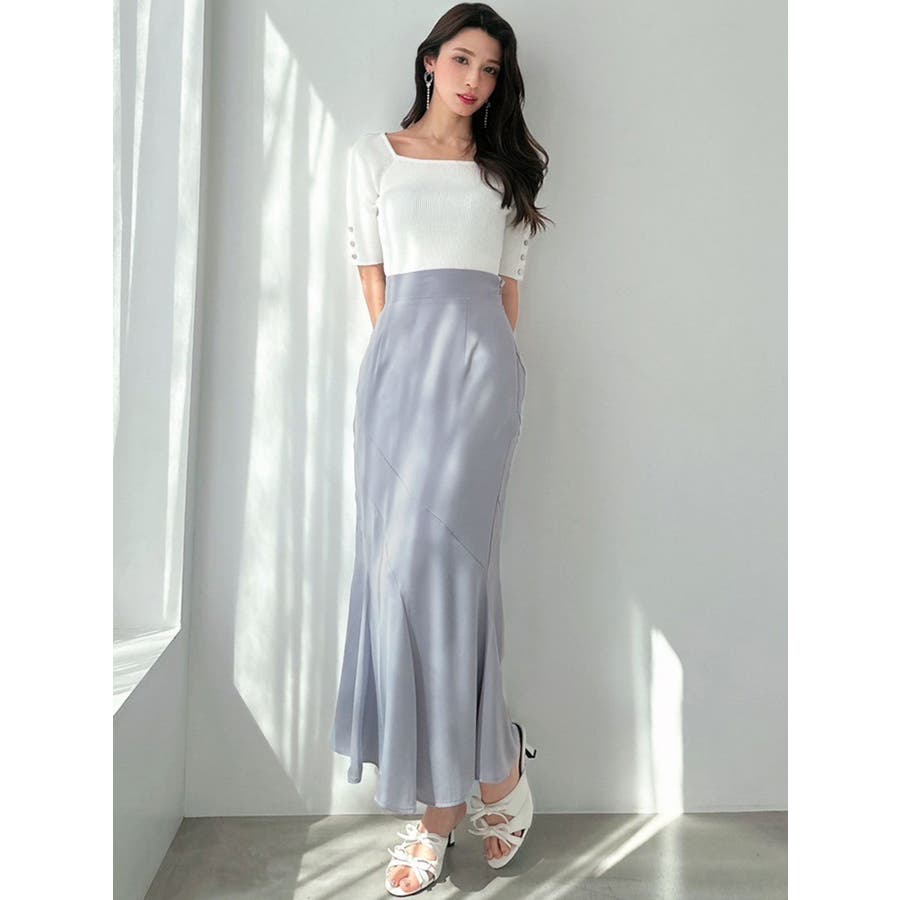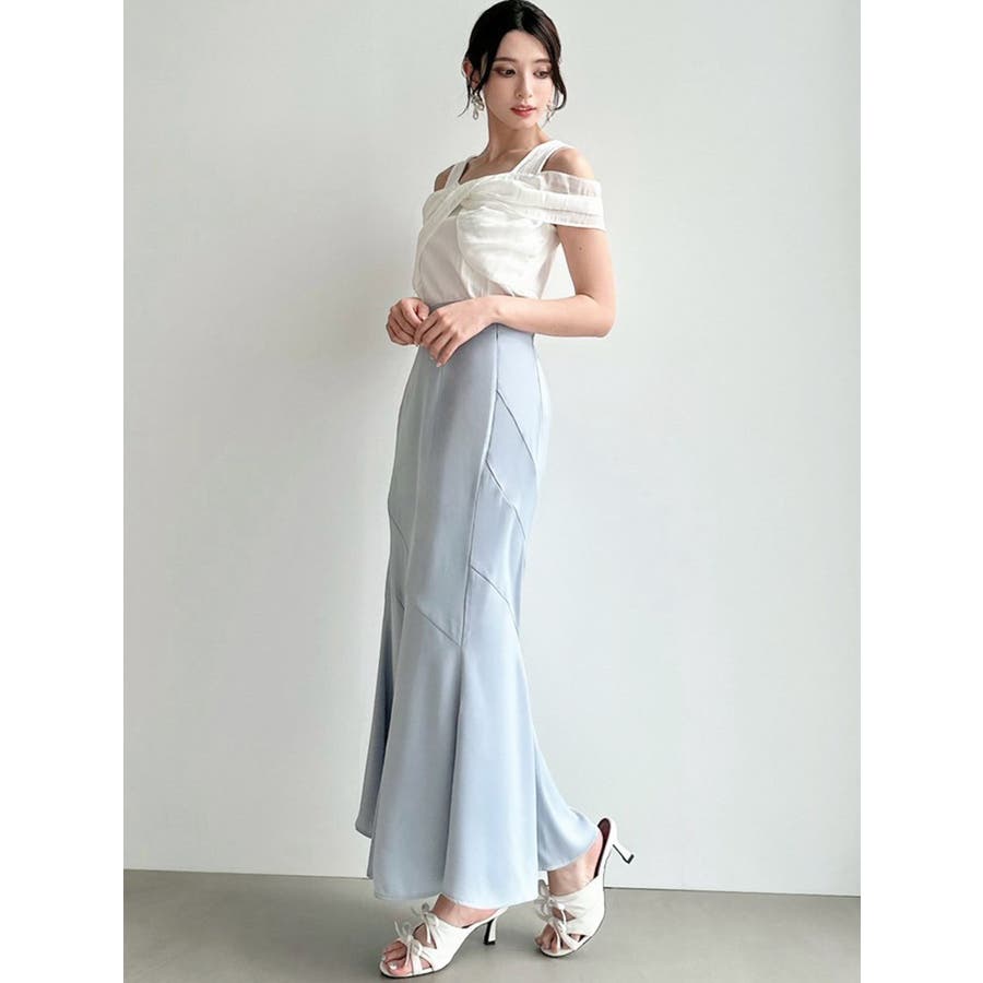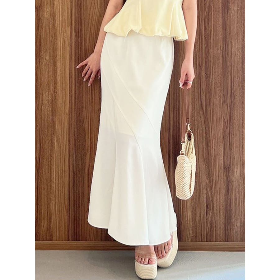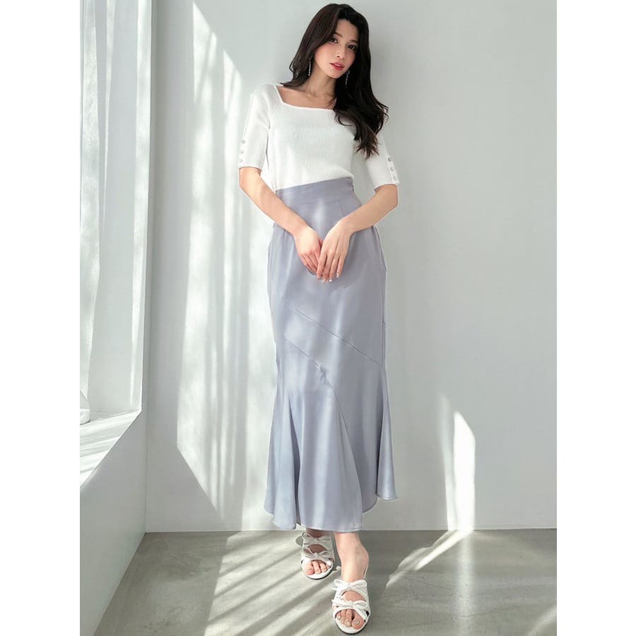 シルエットと艶感が自慢のマーメイドスカート▽デザイン▽定番のマーメイドスカートをサテン生地で作り、高級感のある1枚に仕上げました。アシンメトリーな切り替えを入れ、デザイン性とシルエットの美しさを両立。ハイウエストでバックゴムになっているので着用しやすく、緩やかなマーメイドシルエットが大人な印象をプラスします。▽カラー▽白・黒・青の3色展開。▽スタイリング▽どんなシーンでも活躍するシルエット・生地感・デザインにこだわりました。普段使いからオケージョンシーン、オフィスコーデまで幅広く着回し可能◎ハイウエストなのでトップスも選ばず、シーズンレスに活躍するアイテムです。※着用画像はフラッシュの加減で実際の製品と色味等が異なる場合がございますので、生地のズームアップ画像をご確認ください。※ご利用の端末画面の設定により実際の商品と色味が異なる場合がございます。【商品特徴】透け感:なし伸縮性:なし生地の厚さ:薄手サイズ感:普通裏地:ありポケット:なし