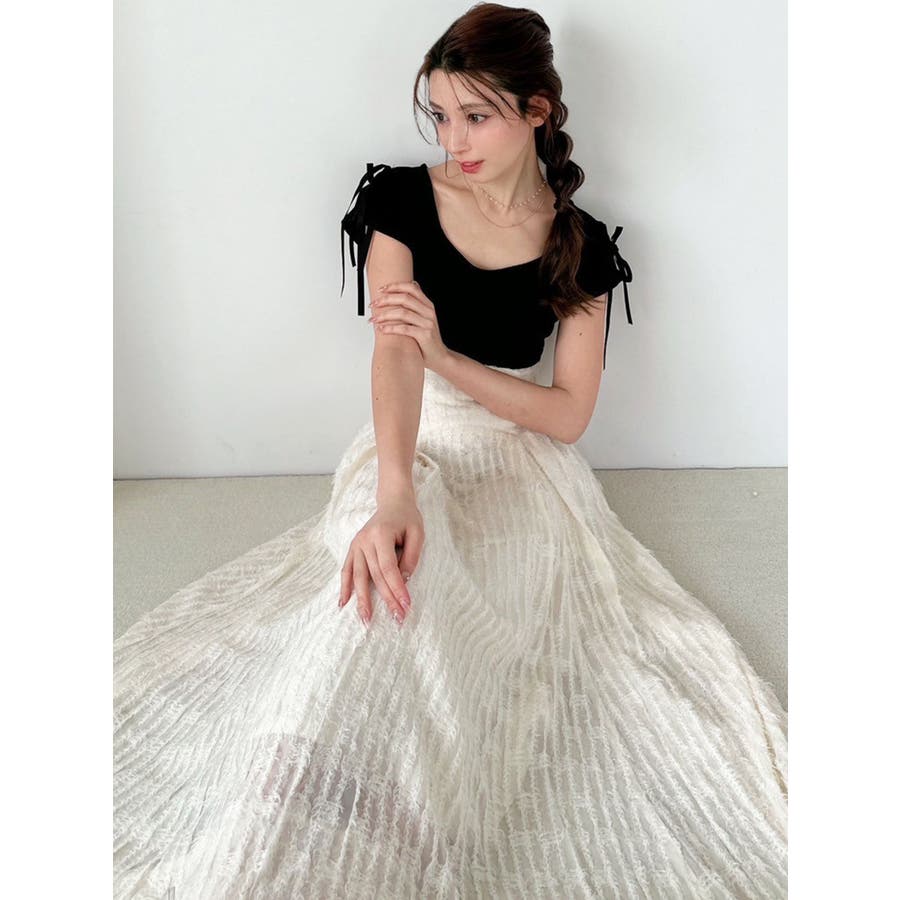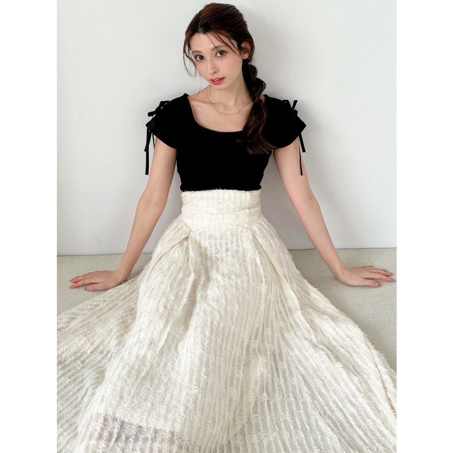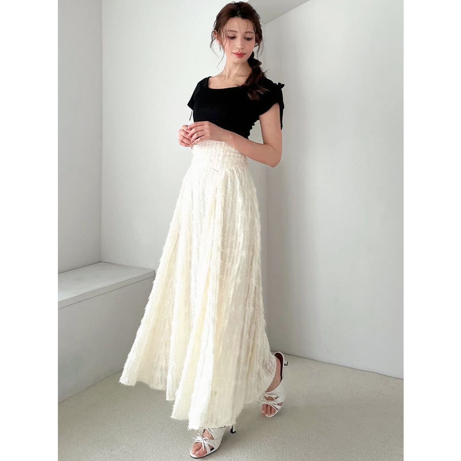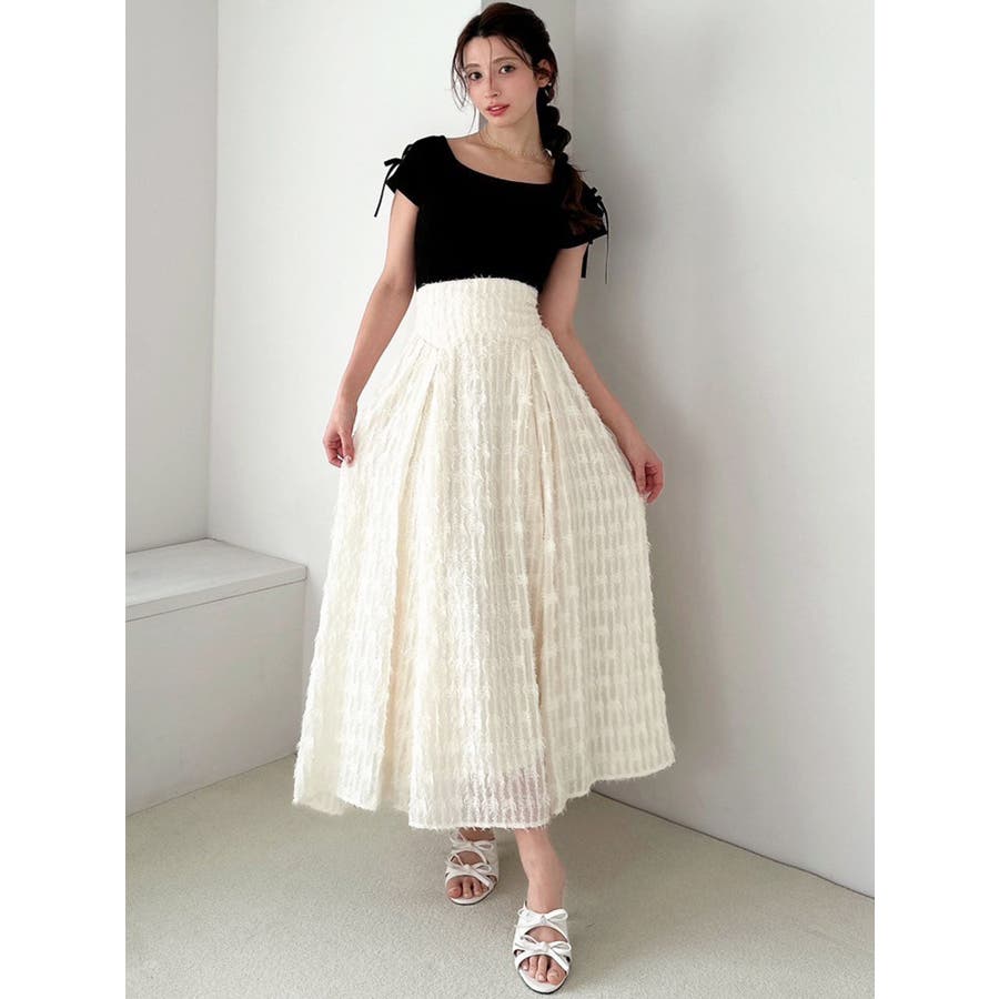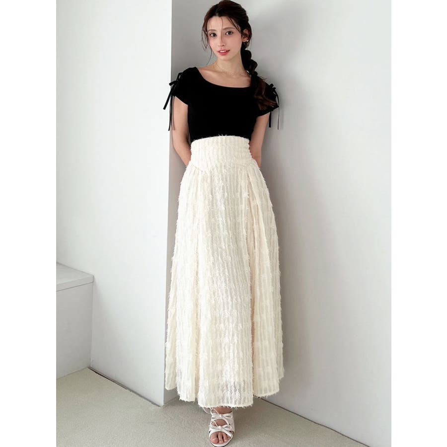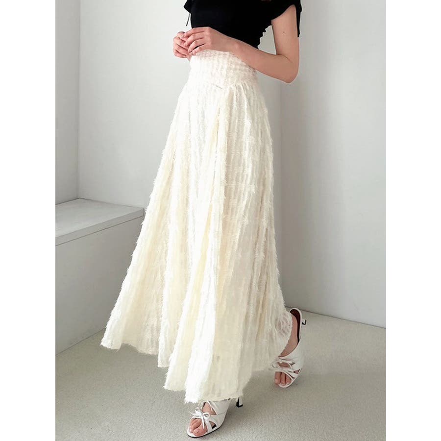 1枚で高級感のあるフレアスカート▽デザイン▽毛足のあるジャガード生地を贅沢に全体に使用したフレアスカート。ウエスト部分はベルト幅を太めに取ったことでフォールド感がUPしウエストラインを綺麗に見せてくれます♪フィットフレアのシルエットが女性らしさを高めます。▽カラー▽白・黒の2色展開。▽スタイリング▽表面感のある生地のスカートなのでシンプルなトップス合わせでもサマになります。コーデにプラスするだけで高見えする大人キレイ目コーデに◎※着用画像はフラッシュの加減で実際の製品と色味等が異なる場合がございますので、生地のズームアップ画像をご確認ください。※ご利用の端末画面の設定により実際の商品と色味が異なる場合がございます。【商品特徴】透け感:なし伸縮性:なし生地の厚さ:薄手サイズ感:普通裏地:ありポケット:なし
