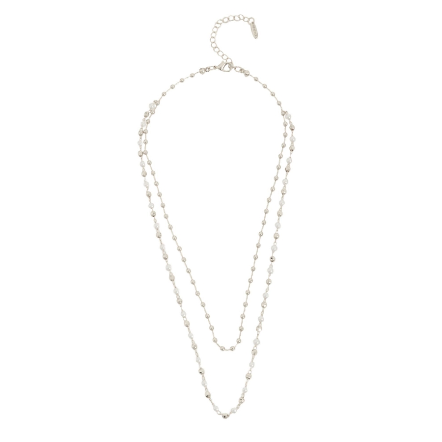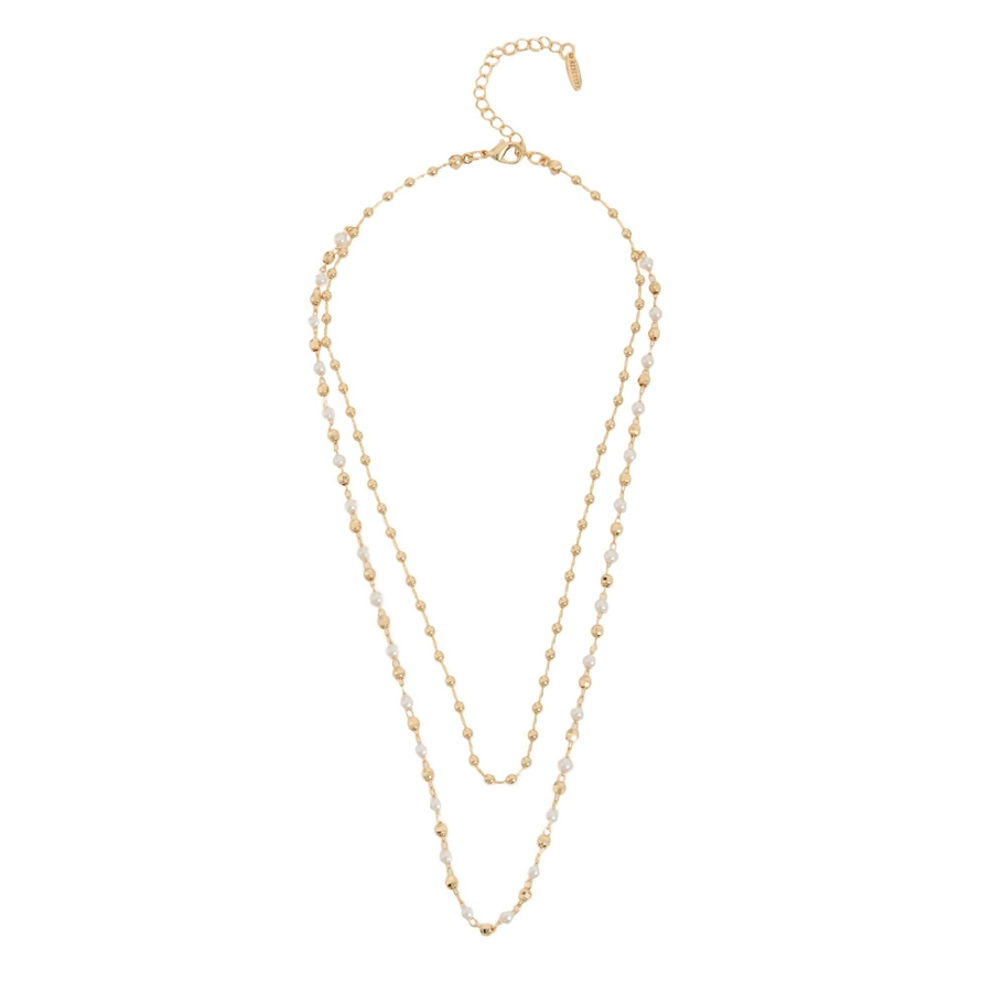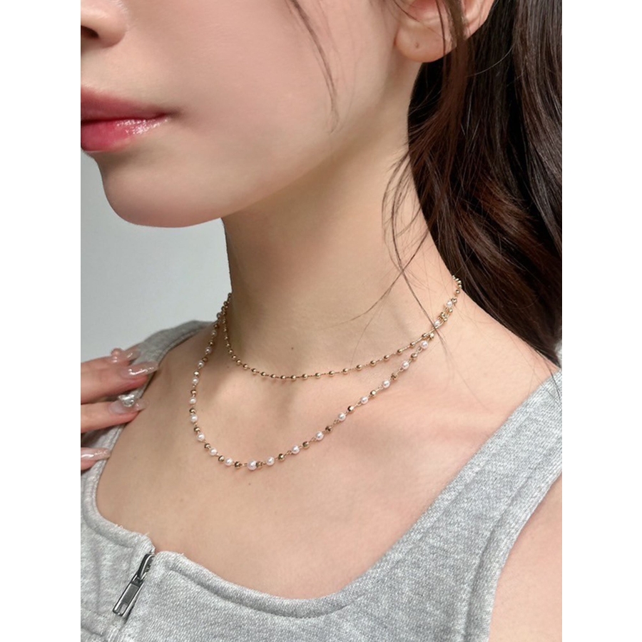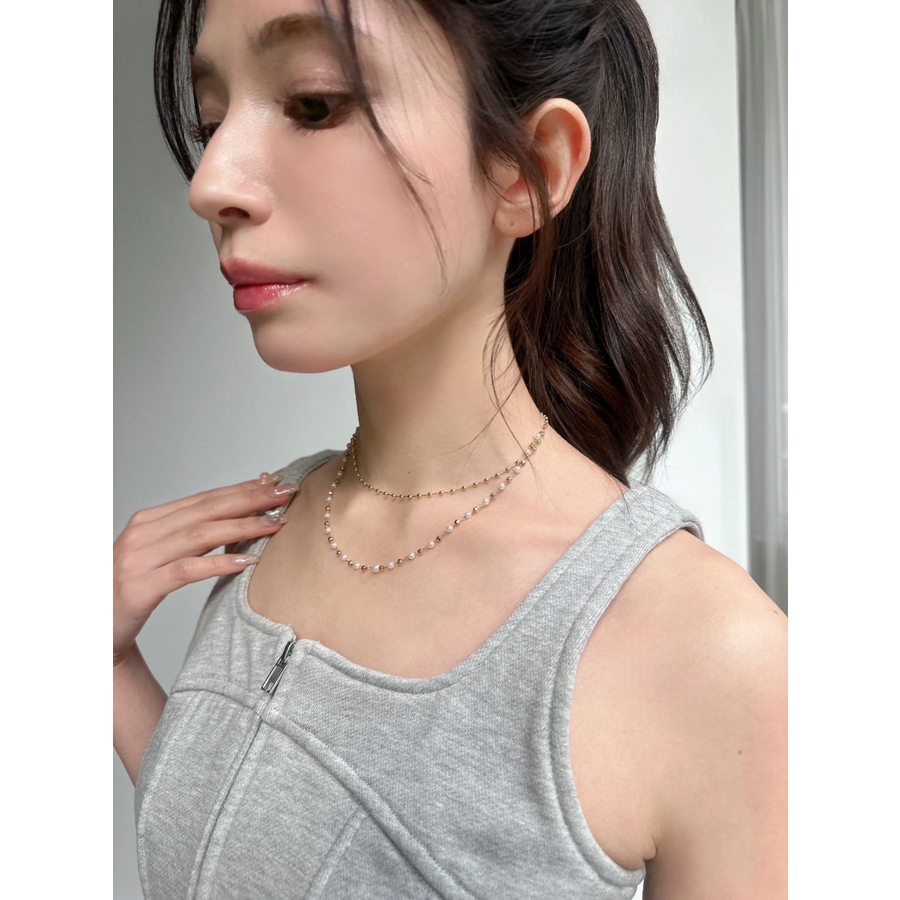 シンプルながら小ぶりのパールとボールがシャイニー感をプラスするネックレス。華奢な印象なので2連でもつけやすく、どんなコーデにもマッチします♪