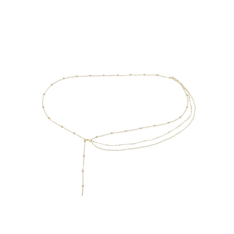 華奢なチェーンを組み合わせたチェーンベルト。小ぶりなボールチェーンが洗練された雰囲気を作り、いつものコーデのアクセントになります。長さの調節が可能なのでジャケットやスカートなどお好きな洋服と合わせてお使いいただけます♪