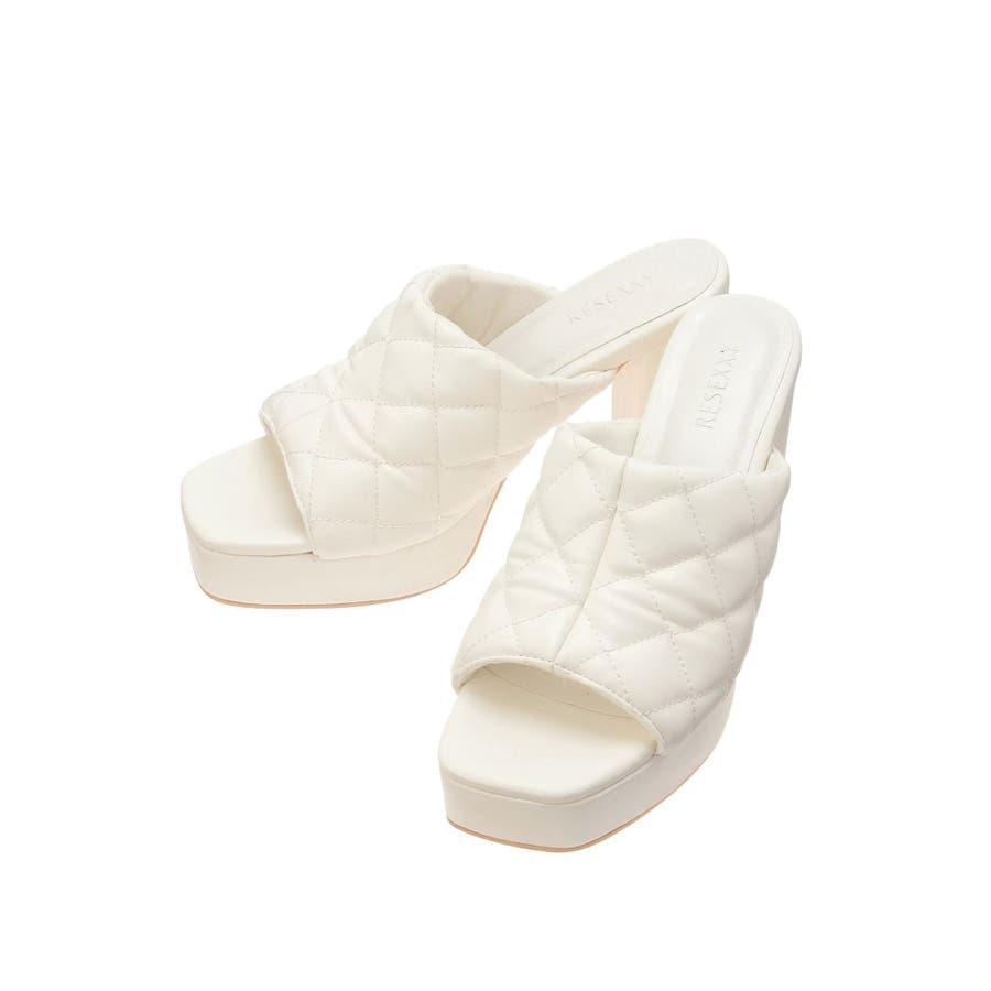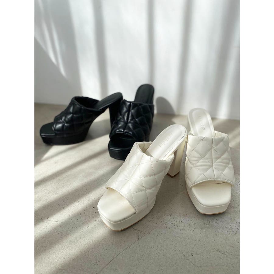 美脚効果抜群の厚底サンダルが今年も登場!▽デザイン▽太ヒールとソールの厚みで安定感があり履きやすさにこだわった一足です。キルティングデザインがカジュアルすぎない女性らしさをプラスしてくれます。ワンピースやボトムス等どんなコーディネートでも合わせやすいサンダルです♪毎年人気の白・黒の2色展開。【スタッフ着用レビュー】スタッフC(普段のサイズ: 24.0cm/足の幅: 9.7cm/甲の高さ: 6.1cm/ふくらはぎ周り:33.5cm)Mサイズ着用でピッタリでした。足裏にフィットするインソールで歩きやすく、長時間履いても疲れにくいです。かかとのホールド感もあり、安定感があります。程よいヒールの高さで脚長効果も抜群です。