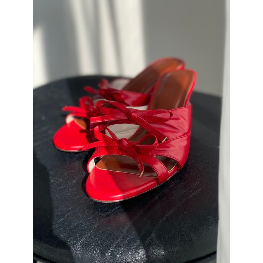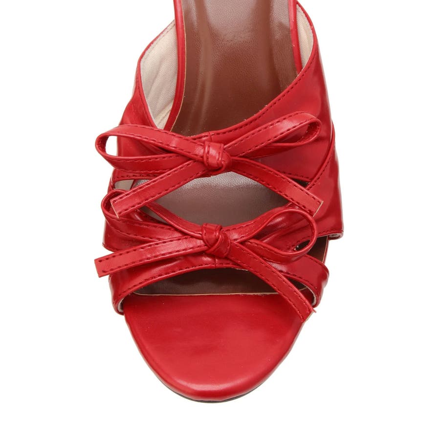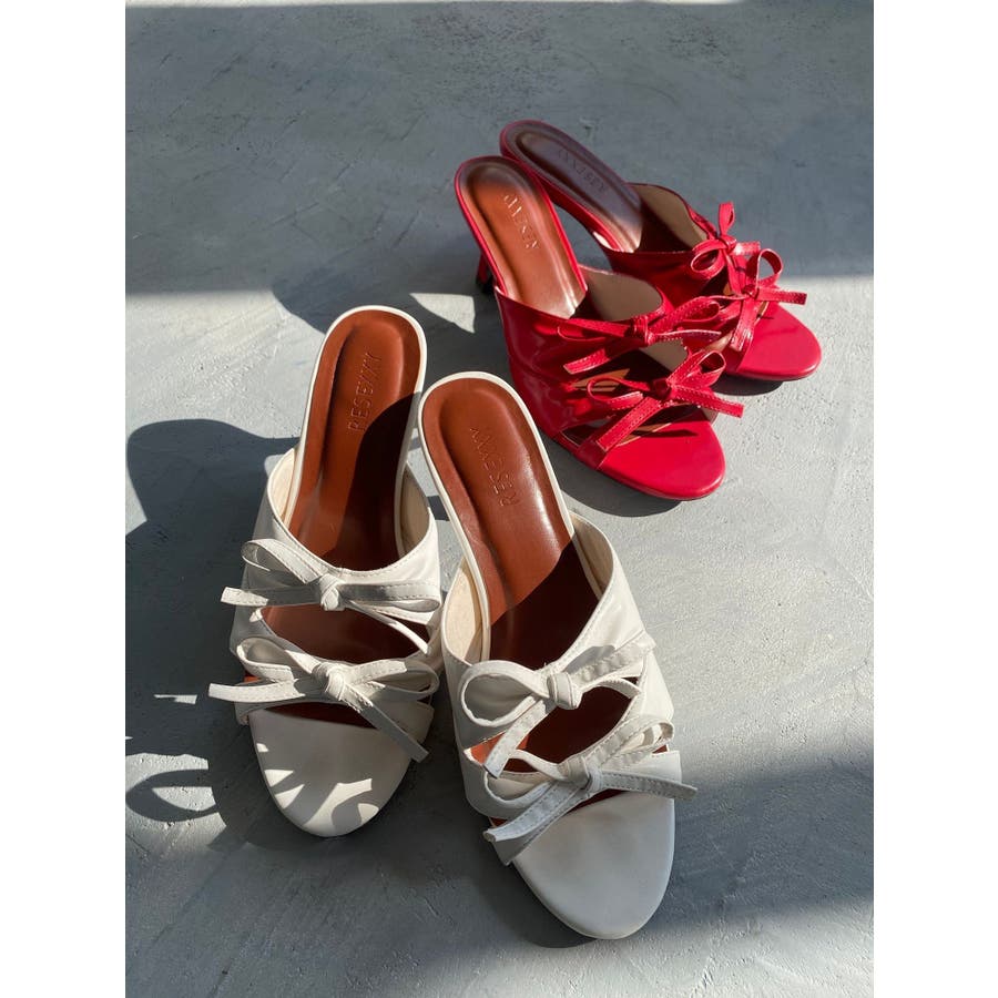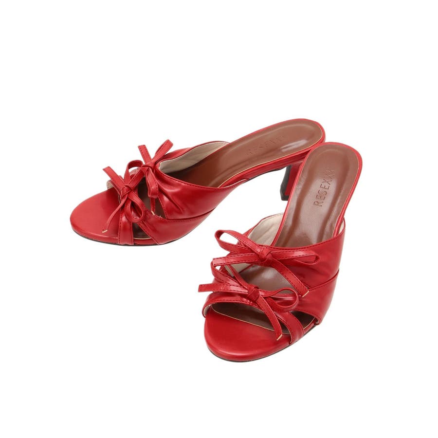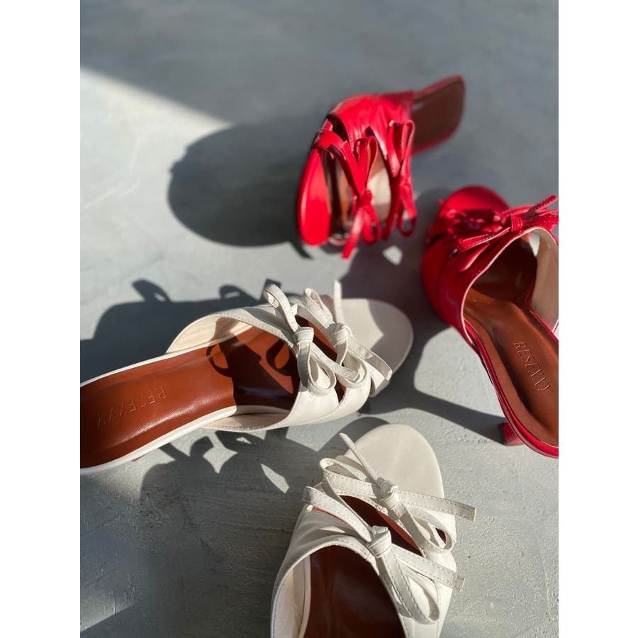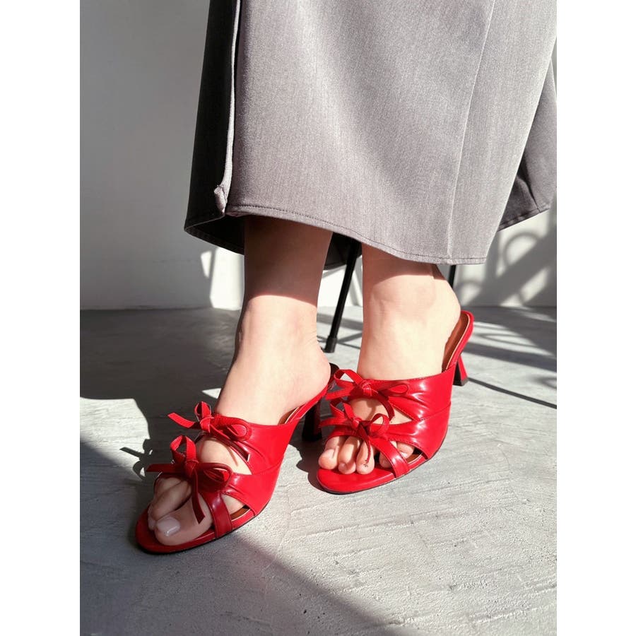 トレンドのリボンデザインのサンダルが登場▽デザイン▽トレンドのリボンを付けたキャッチーなデザインサンダル。華奢なリボンで足元から可愛らしさを演出できる一足です。パンツやスカートなど様々なスタイリングで合わせやすく、デイリー使いにぴったりです。白・赤の2色展開でコーデの差し色になります♪【スタッフ着用レビュー】 スタッフB(普段のサイズ: 24.5cm/足の幅: 9.8cm/甲の高さ: 5.6cm/ふくらはぎ周り:34cm)Lサイズ着用でぴったりでした。クッション性があり履きやすく、ヒールが低めなので歩きやすいです。