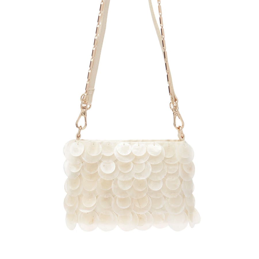 夏らしいカピスシェルをたっぷり使ったハンドバッグ▽デザイン▽透明感と光沢感のあるカピスシェルをたっぷり使用。光を通すので動くたびにキラキラ光りコーデのアクセントに。コンパクトなサイズ感なのでコーデの邪魔をせず、一気にシーズンムードを高めます。2WAY仕様なのでハンドバッグとしてもショルダーバッグとしてもお使いいただけます。普段使いはもちろん、リゾートシーンにもピッタリの夏小物♪