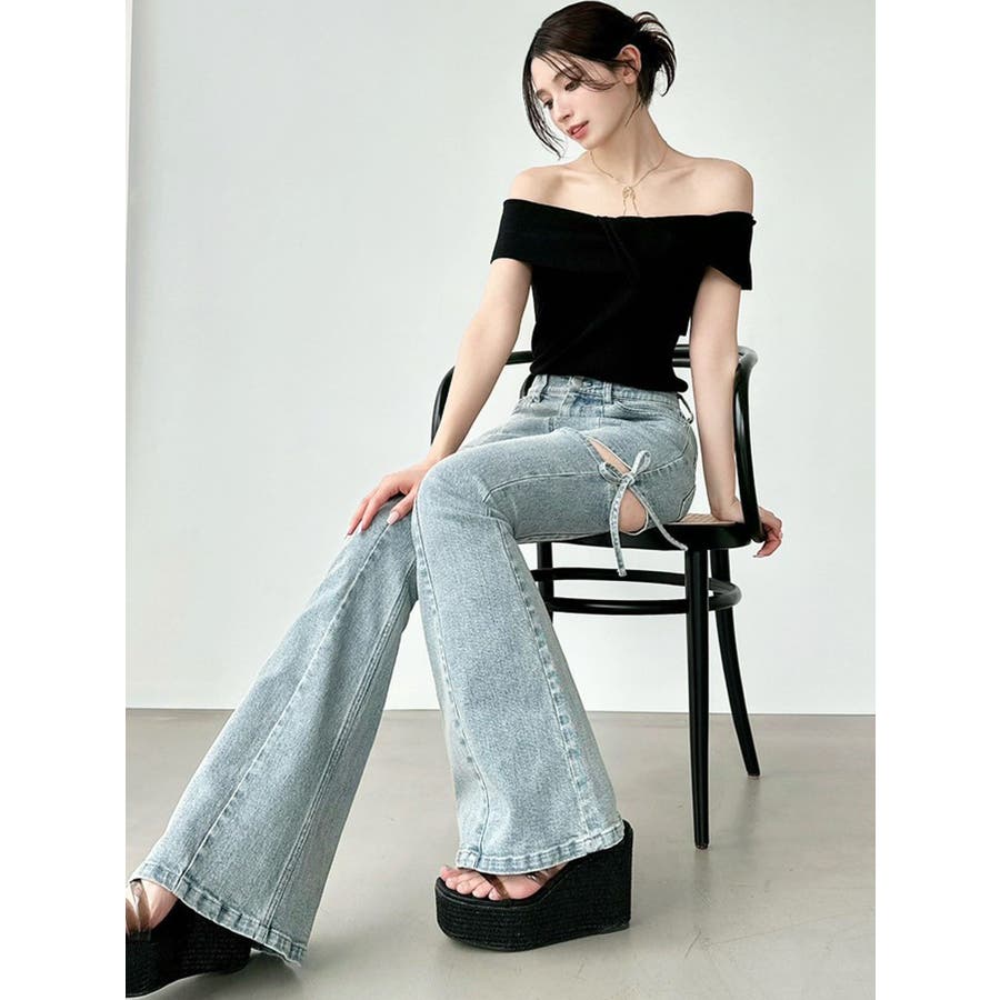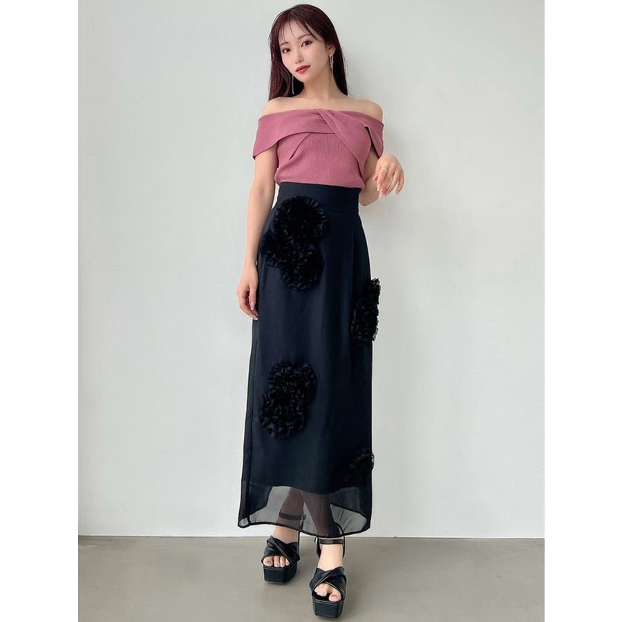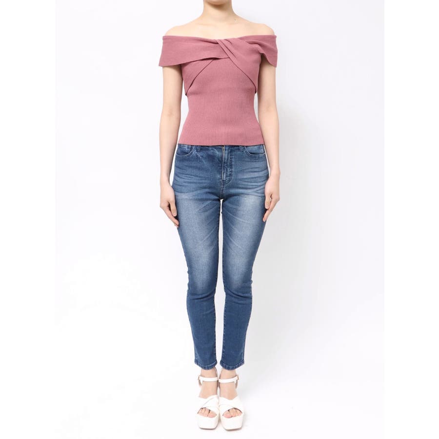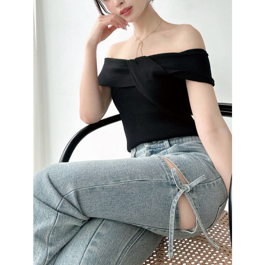 ツイストオフショルニットトップス