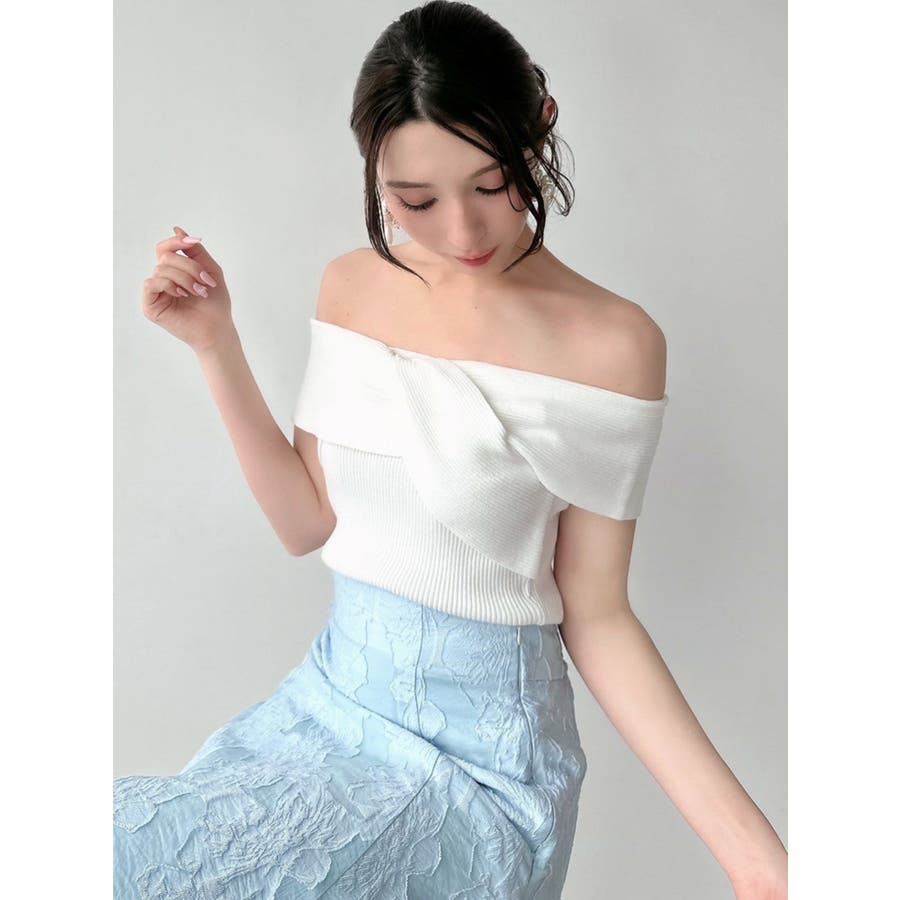 ツイストデザインがポイントのニットトップス▽デザイン▽オフショルデザインですっきりとした肌見せが可能なトップス。二の腕カバーができデコルテや肩周りはすっきり見せつつ、バストのツイストデザインがアクセントに!ニット生地なので伸縮性があり着やすさ抜群!シンプルなデザインで1枚持っていると夏場に重宝します◎▽カラー▽白・黒・ピンクの3色展開。▽スタイリング▽スカートからパンツまで、どんなボトムスにも万能にマッチ◎インスタイリングが上半身をコンパクトに見せてくれるのでおすすめ!※着用画像はフラッシュの加減で実際の製品と色味等が異なる場合がございますので、生地のズームアップ画像をご確認ください。※ご利用の端末画面の設定により実際の商品と色味が異なる場合がございます。【商品特徴】透け感:なし伸縮性:あり生地の厚さ:薄手サイズ感:細身裏地:なしポケット:なし
