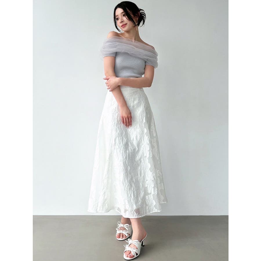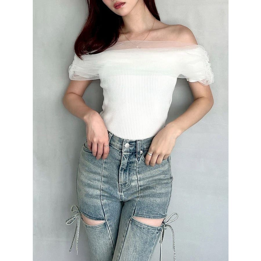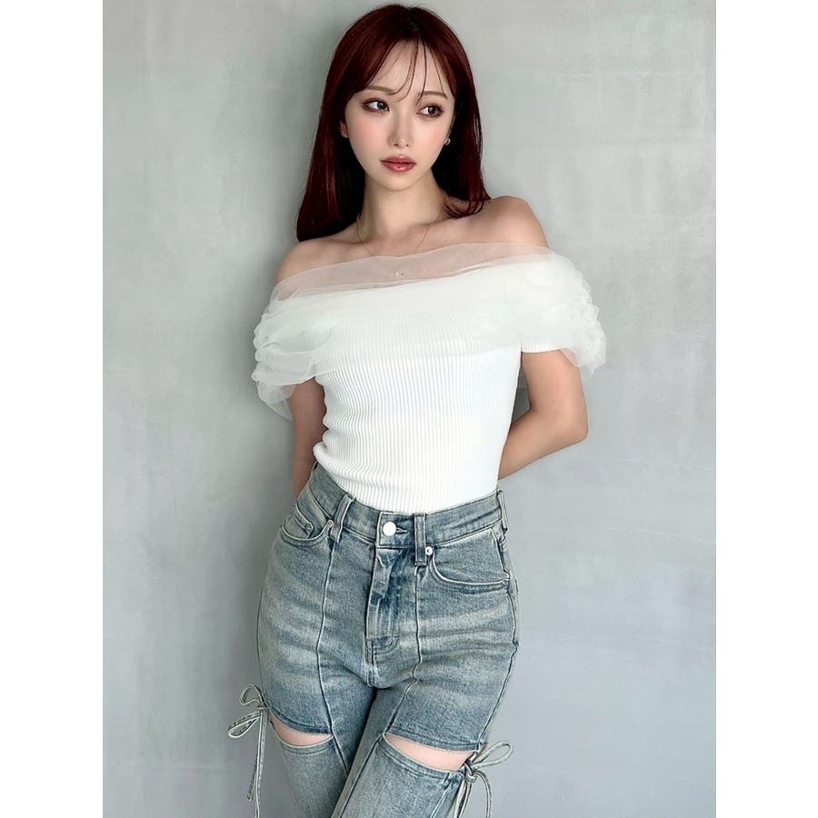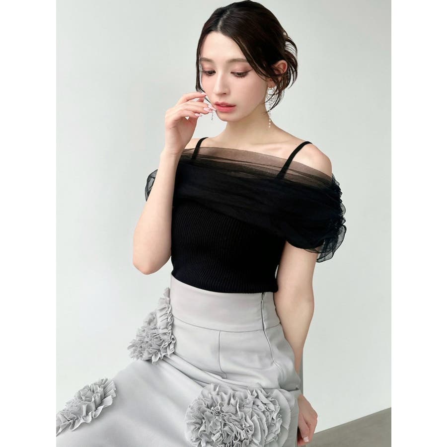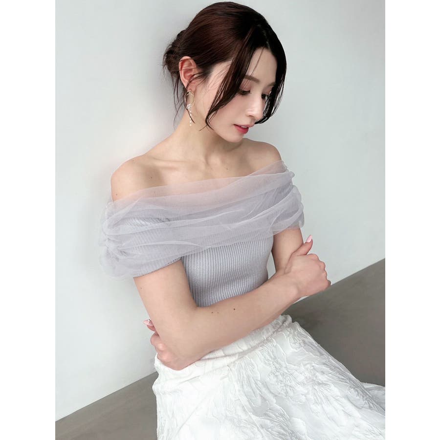 透け感とオフショルデザインが女性らしいニット▼完売カラーはこちら152542620501:シアーコンビオフショルニット▽デザイン▽シアー感のあるチュールをくしゅっと重ねたような胸元のデザインがシンプルなスタイリングをドラマティックな表情にしてくれるニットトップス。シアー感のある繊細なチュールとリブニットのフィット感のギャップが女性らしいスタイルにしてくれる1枚です。▽カラー▽白・黒・青・ピンクの4色展開。▽スタイリング▽スカートからパンツまでどんなボトムスにも万能にマッチ。1枚もっていると着回しの幅が広がるアイテムです。※着用画像はフラッシュの加減で実際の製品と色味等が異なる場合がございますので、生地のズームアップ画像をご確認ください。※ご利用の端末画面の設定により実際の商品と色味が異なる場合がございます。【商品特徴】透け感:なし伸縮性:あり生地の厚さ:薄手サイズ感:細身裏地:なしポケット:なし