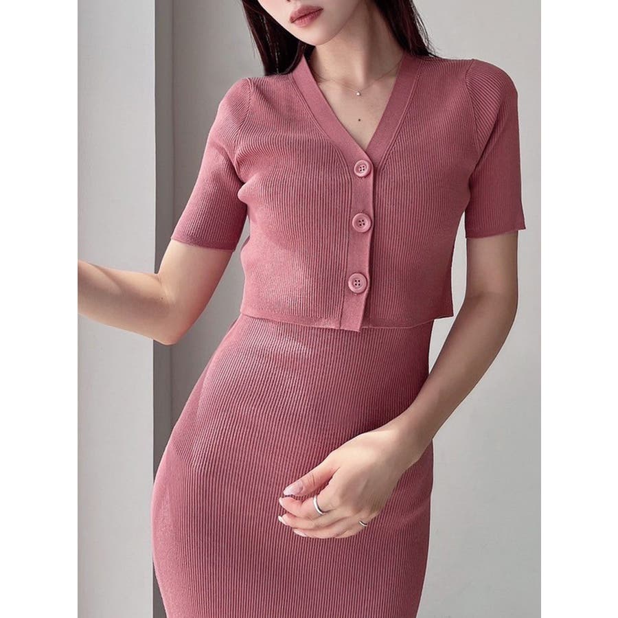 定番人気!コンパクトなニットカーディガンが再登場▽デザイン▽トレンド感を押さえたショート丈のニットカーディガン。ニット生地でボディにフィットするのでスタイリングをタイトにまとめてくれます。五分袖なので気になる二の腕周りもカバーしてくれる万能アイテム。ネックはすっきりとVネックにし、程よい抜け感をプラスしてくれます。シンプルなデザインなのでロングシーズン活躍し、夏場の体温調節にもピッタリの1枚です。▽カラー▽無地の黒・ピンクと、コーデのアクセントになるボーダー柄2色ご用意。▽スタイリング▽同色のニットワンピースと合わせればアンサンブルとして着用可能◎サラッと羽織れるニットカーディガンとしても、前を閉めてニットトップスとしても着用できる2WAY仕様なのでコーデの幅が広がるアイテムです。※着用画像はフラッシュの加減で実際の製品と色味等が異なる場合がございますので、生地のズームアップ画像をご確認ください。※ご利用の端末画面の設定により実際の商品と色味が異なる場合がございます。【商品特徴】透け感:なし伸縮性:あり生地の厚さ:薄手サイズ感:細身裏地:なしポケット:なし