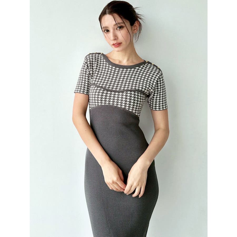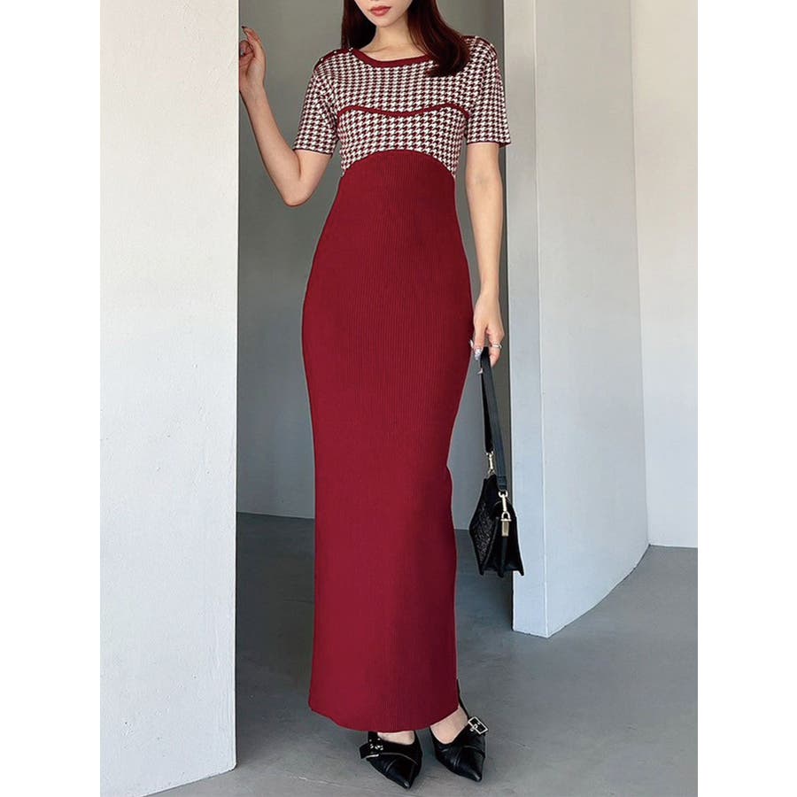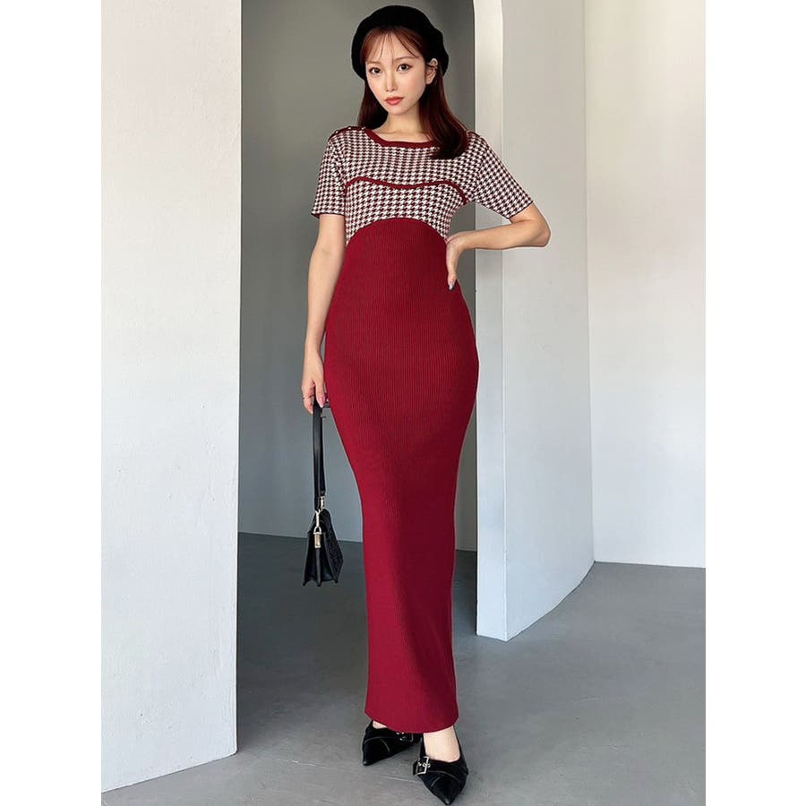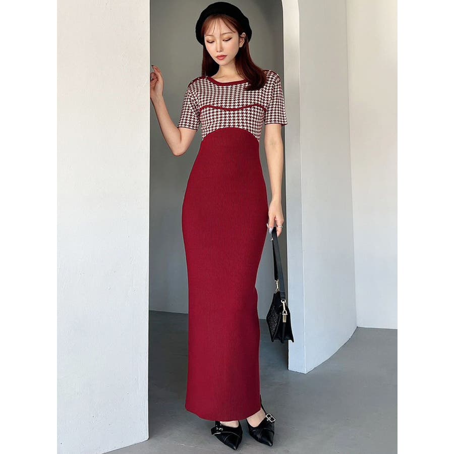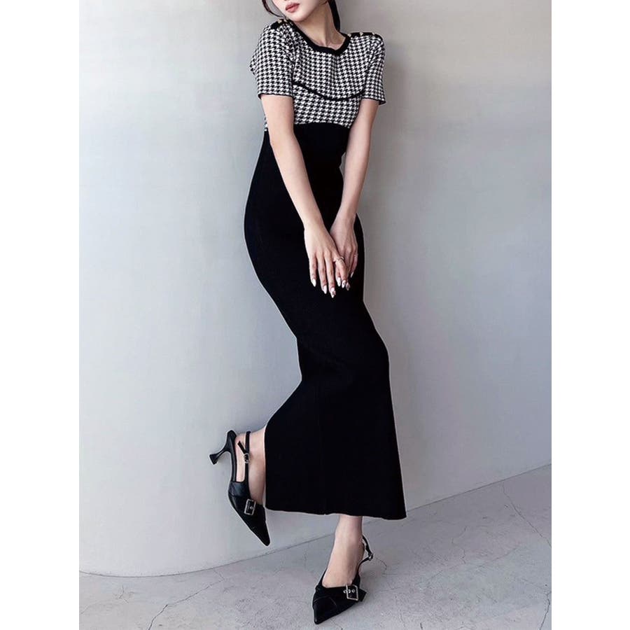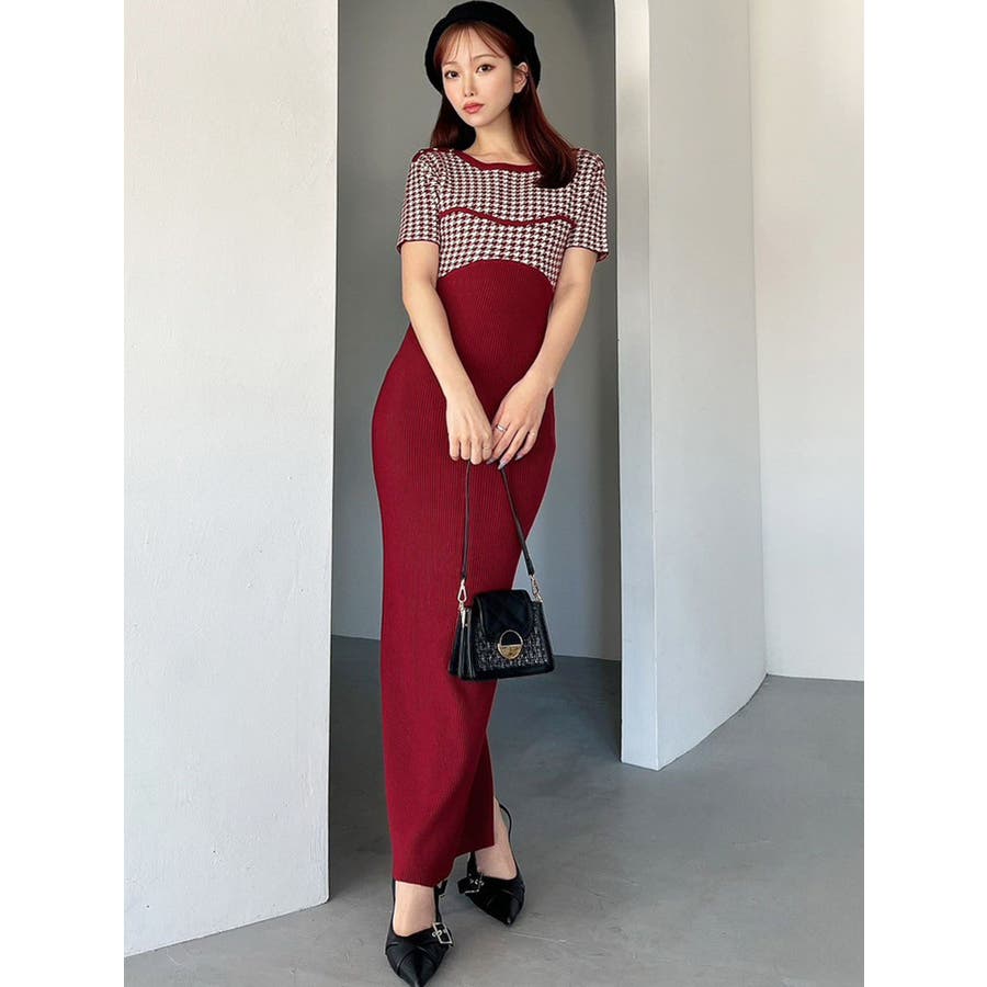 シーズンムードを高める千鳥チェックのニットワンピース▽デザイン▽ロング丈×タイトシルエットで大人なキレイ目ワンピース。デコルテをボートネックに開けることでデコルテを華奢見せ!肩には遊び心のあるハートボタンをあしらい、横から見た時もアクセントになります。バスト部分のパイピングと、バスト下の切り替えで1枚で細見え効果抜群!バックスリット入りなので足さばきも良く、後ろ姿もすっきりと見せてくれます。▽カラー▽黒・赤・チャコールグレーの3色展開。▽スタイリング▽1枚でコーデが決まる万能アイテム!千鳥チェックが秋らしさもプラスしつつ、晩夏におすすめの1枚。タイトなサイズ感なので薄手の羽織りも合わせやすく、長く使える1枚です。【ミニ丈はコチラ】152540303401:ハウンドトゥースミニニットワンピース