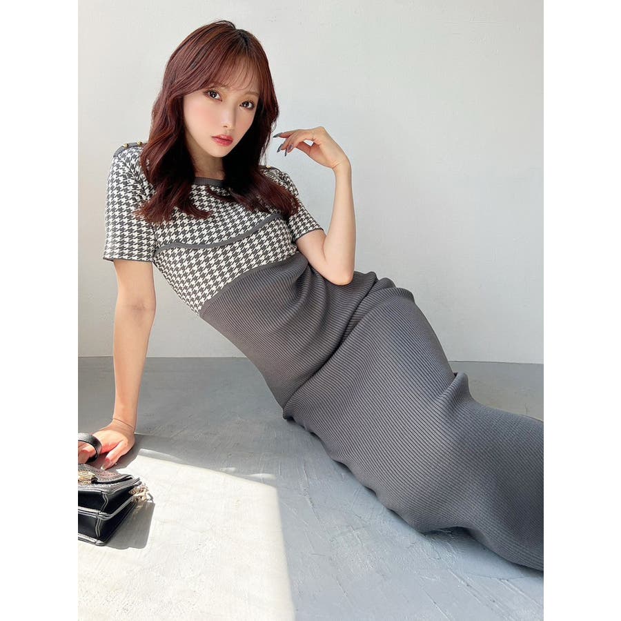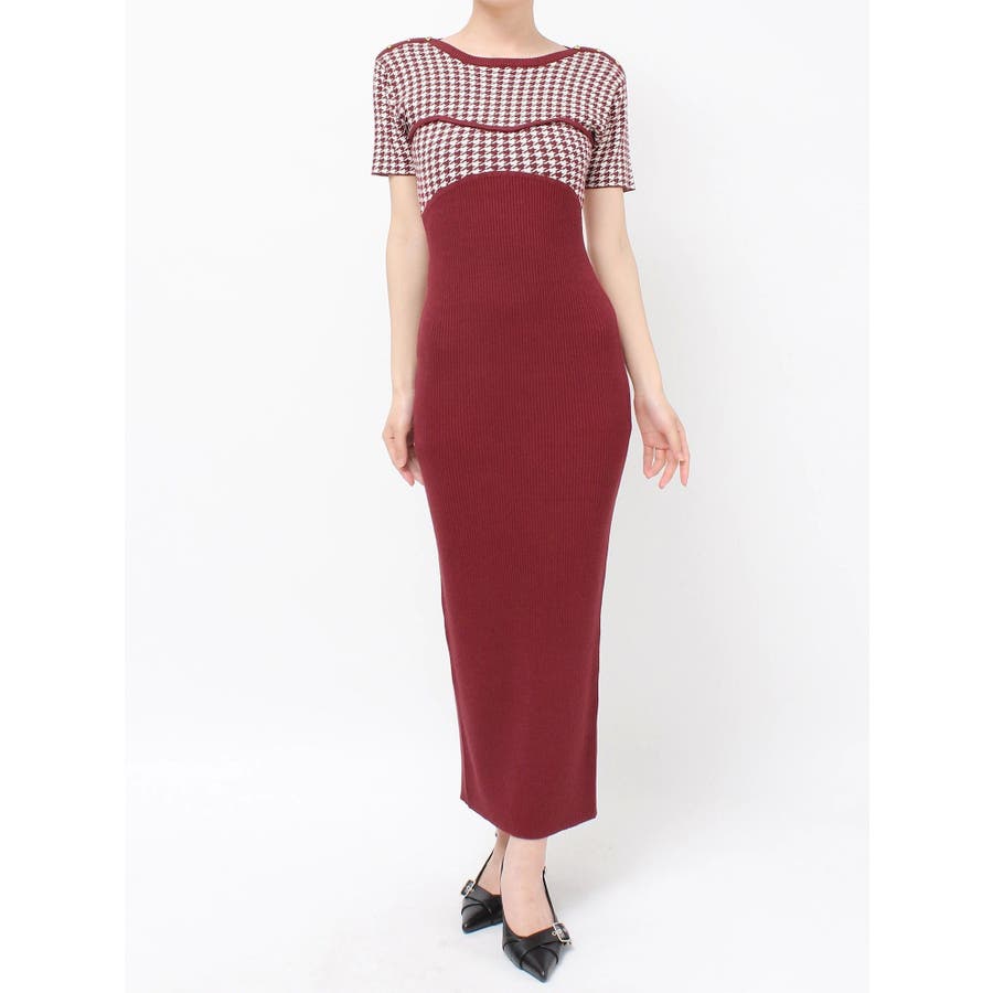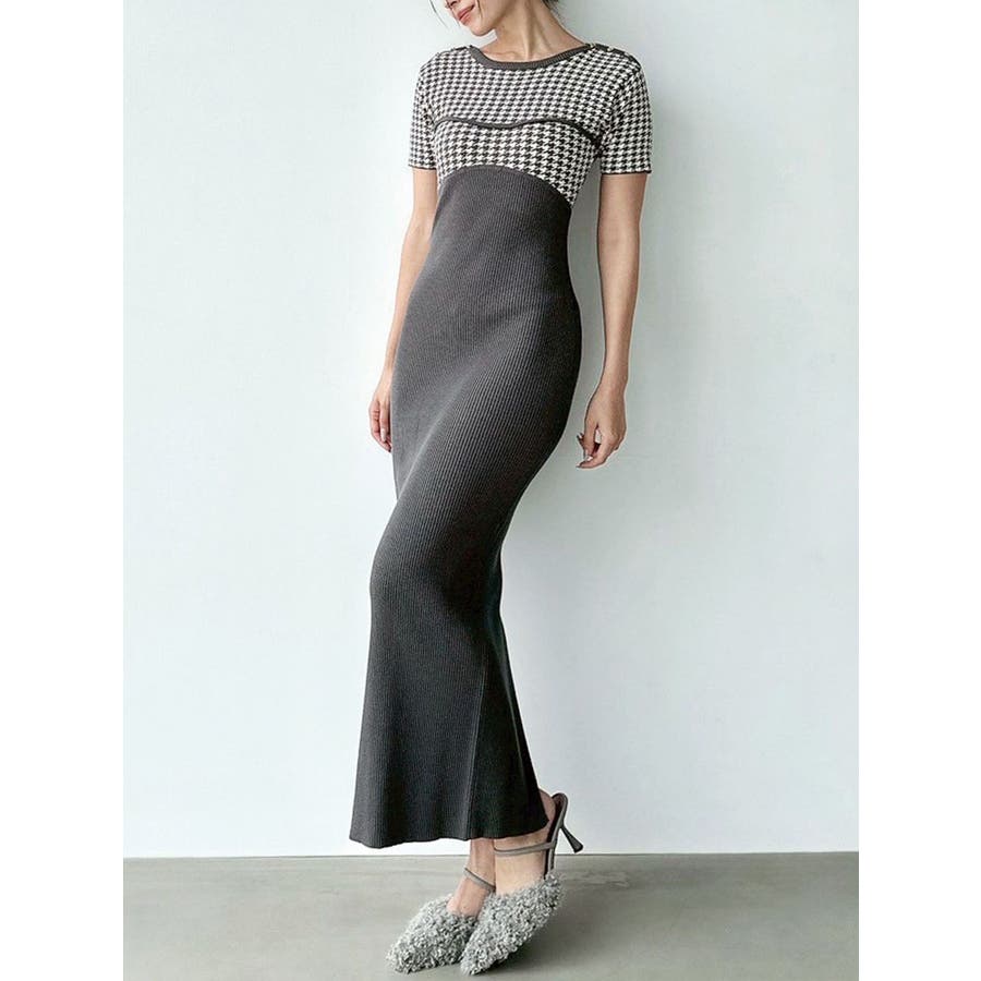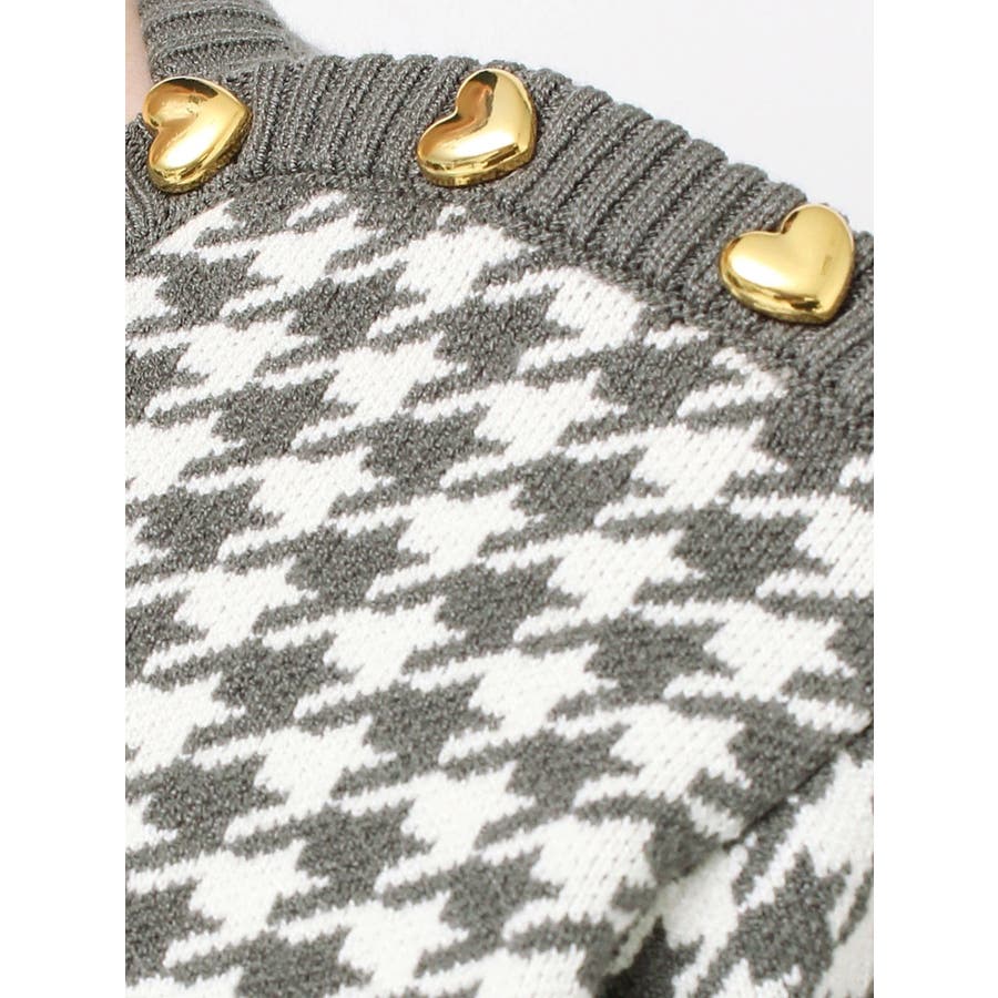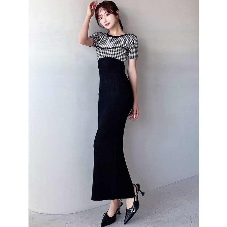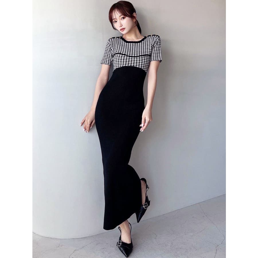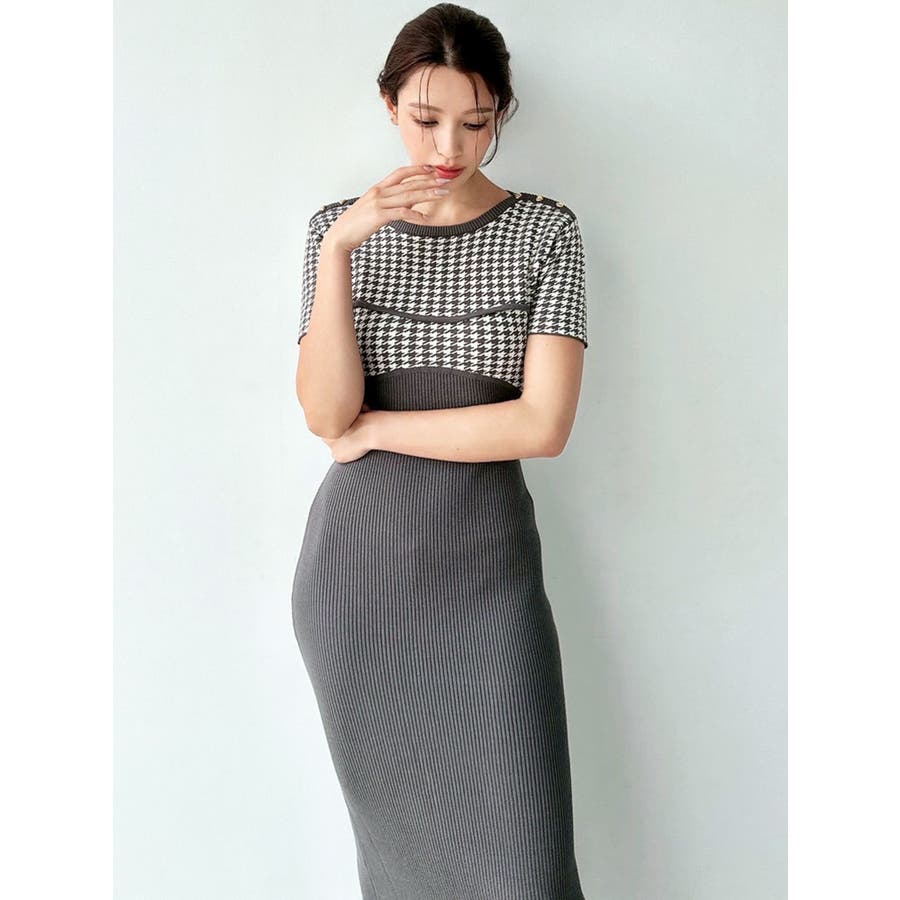 シーズンムードを高める千鳥チェックのニットワンピース▽デザイン▽ロング丈×タイトシルエットで大人なキレイ目ワンピース。デコルテをボートネックに開けることでデコルテを華奢見せ!肩には遊び心のあるハートボタンをあしらい、横から見た時もアクセントになります。バスト部分のパイピングと、バスト下の切り替えで1枚で細見え効果抜群!バックスリット入りなので足さばきも良く、後ろ姿もすっきりと見せてくれます。▽カラー▽黒・赤・チャコールグレーの3色展開。▽スタイリング▽1枚でコーデが決まる万能アイテム!千鳥チェックが秋らしさもプラスしつつ、晩夏におすすめの1枚。タイトなサイズ感なので薄手の羽織りも合わせやすく、長く使える1枚です。【ミニ丈はコチラ】152540303401:ハウンドトゥースミニニットワンピース