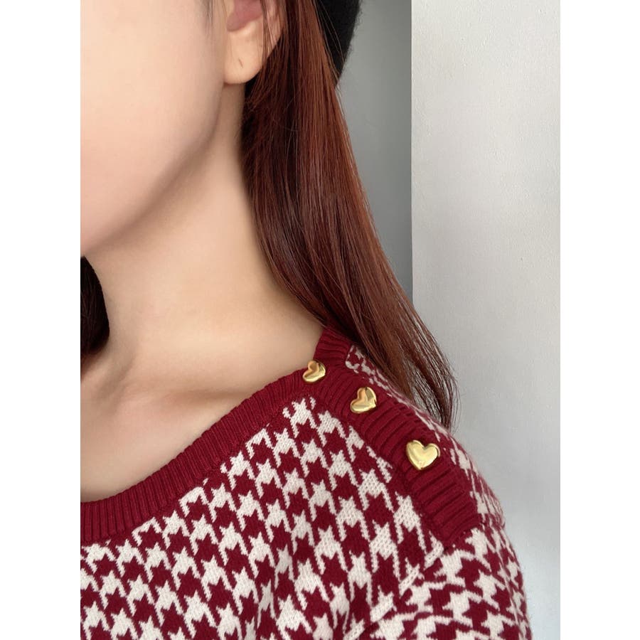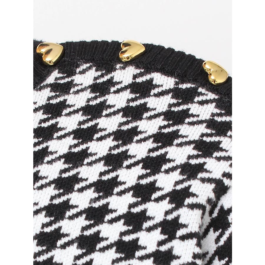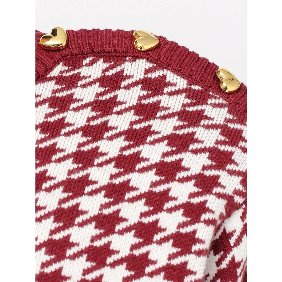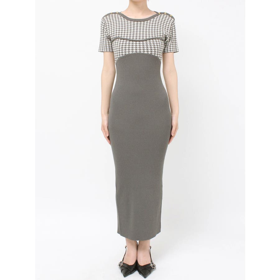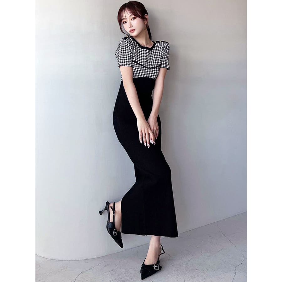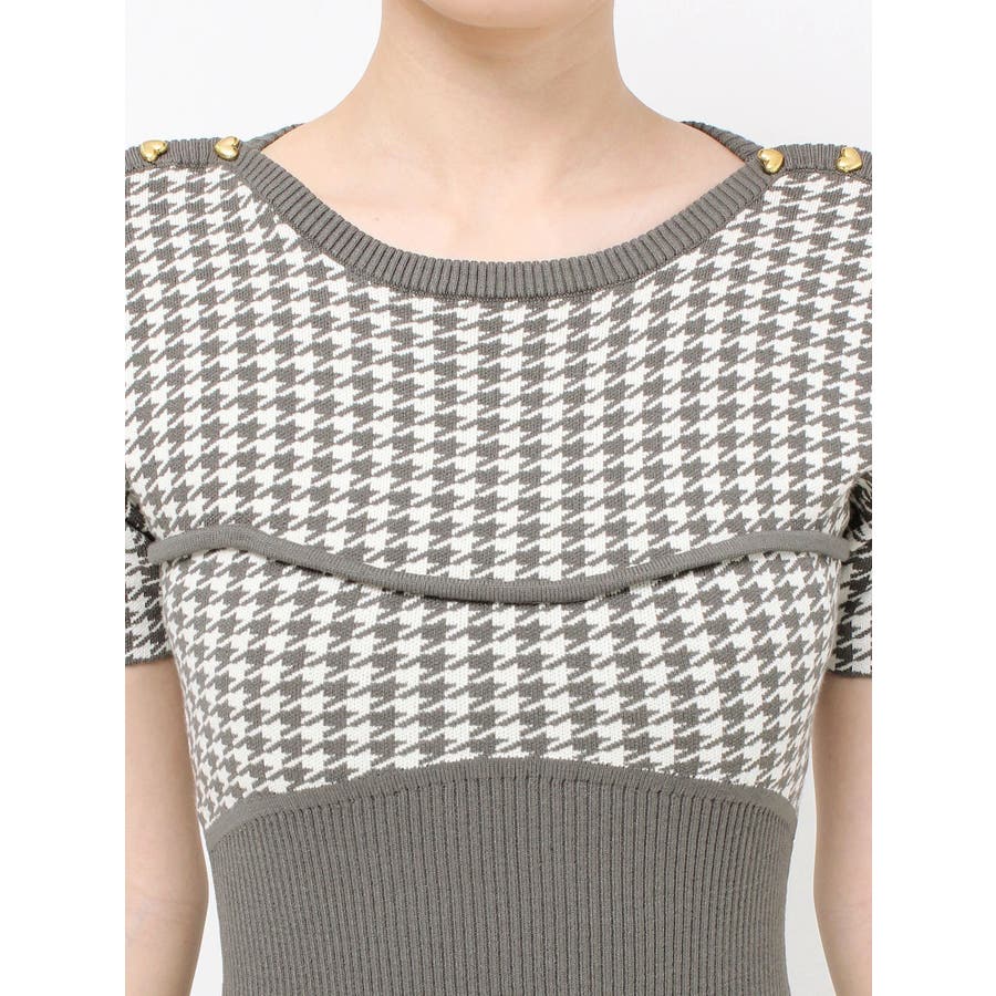 シーズンムードを高める千鳥チェックのニットワンピース▽デザイン▽ロング丈×タイトシルエットで大人なキレイ目ワンピース。デコルテをボートネックに開けることでデコルテを華奢見せ!肩には遊び心のあるハートボタンをあしらい、横から見た時もアクセントになります。バスト部分のパイピングと、バスト下の切り替えで1枚で細見え効果抜群!バックスリット入りなので足さばきも良く、後ろ姿もすっきりと見せてくれます。▽カラー▽黒・赤・チャコールグレーの3色展開。▽スタイリング▽1枚でコーデが決まる万能アイテム!千鳥チェックが秋らしさもプラスしつつ、晩夏におすすめの1枚。タイトなサイズ感なので薄手の羽織りも合わせやすく、長く使える1枚です。【ミニ丈はコチラ】152540303401:ハウンドトゥースミニニットワンピース