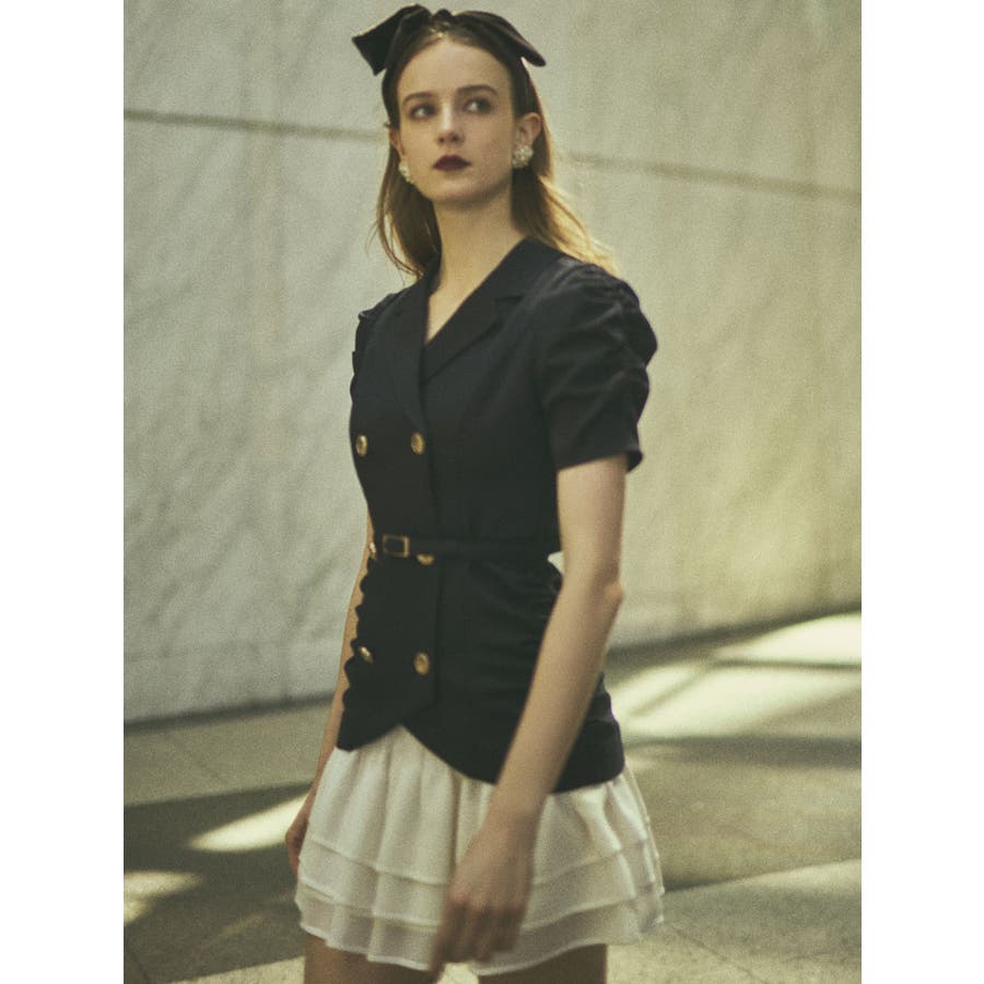 F: バスト[ワンピース]82cm/袖丈[ワンピース]25.5cm/肩幅[ワンピース]33cm/総丈[ワンピース]67[スカート]40cm/ウエスト[スカート]ゴム仕様:59~86cm