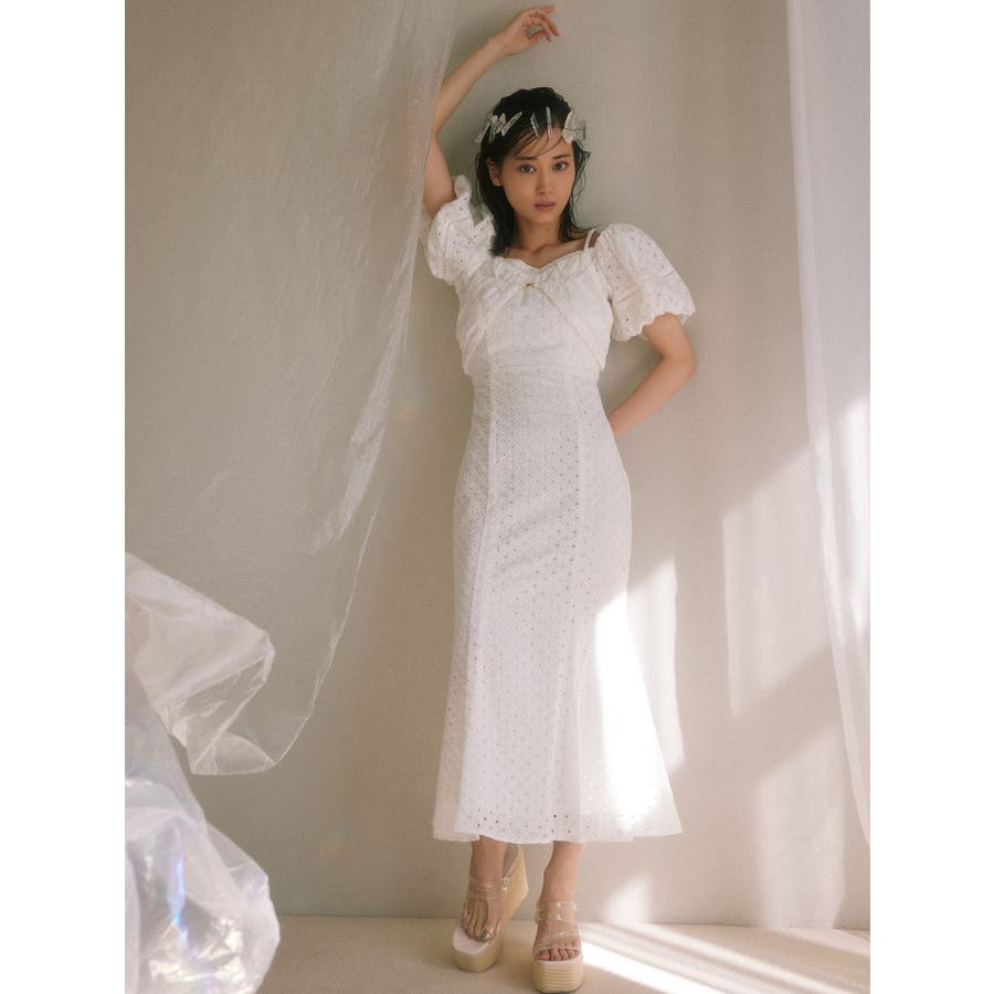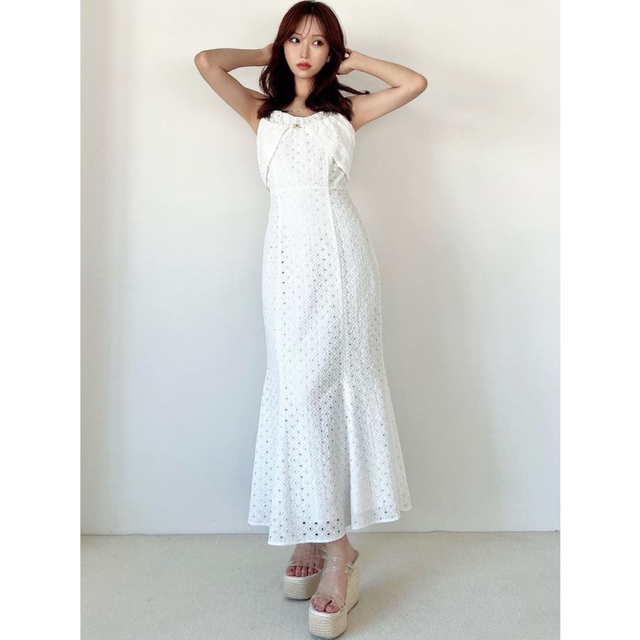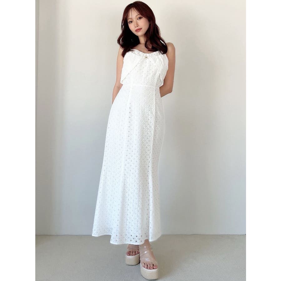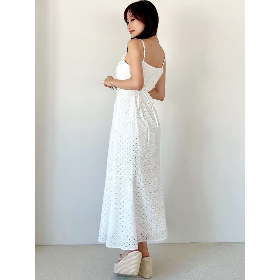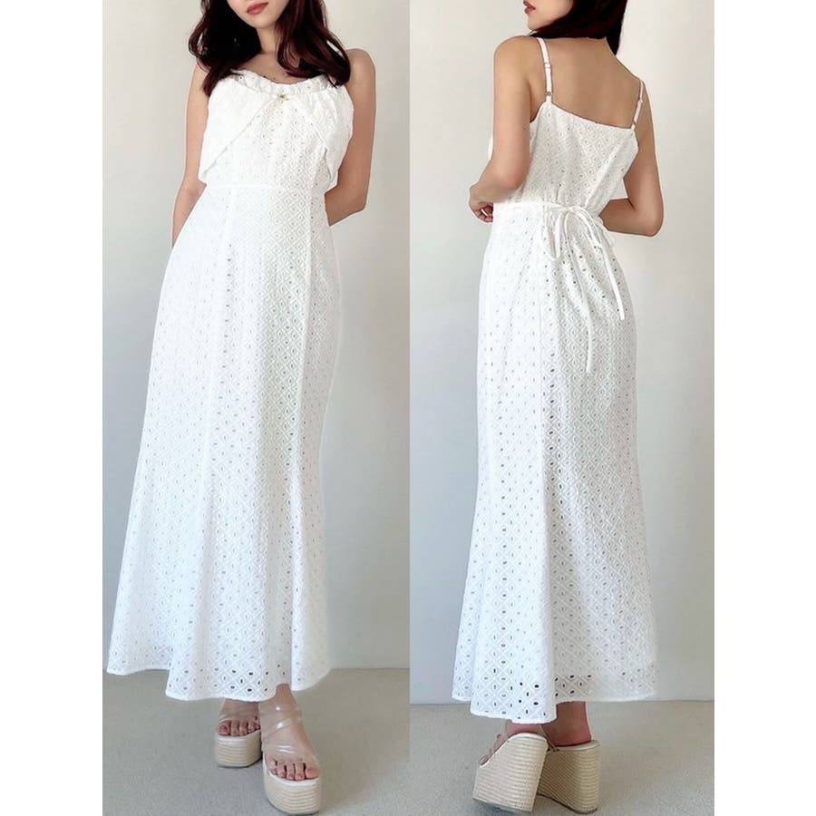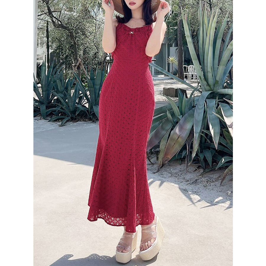 シーズンムードを高めるコットンレースのワンピース▽デザイン▽刺繍を施したコットンにドレープを重ねて上品な雰囲気を表現しました。華奢なゴールドパーツやマーメイドラインで素材とのコントラストを付け、今季らしいデザインに仕上げました。バックウエストはリボンでウエスト調節ができるので細見えシルエットが1枚で完成◎ハートネックデザインがデコルテをすっきりと見せ、女性らしい印象の夏ワンピース。▽カラー▽白・黒・赤の3色展開。▽スタイリング▽サラッと着用できて上品な印象に仕上がる1枚。マーメイドシルエットのキャミワンピなので薄手の羽織りも合わせやすく様々なシーンで活躍します。※着用画像はフラッシュの加減で実際の製品と色味等が異なる場合がございますので、生地のズームアップ画像をご確認ください。※ご利用の端末画面の設定により実際の商品と色味が異なる場合がございます。【商品特徴】透け感:なし伸縮性:なし生地の厚さ:薄手サイズ感:普通裏地:ありポケット:なしファスナー:あり(横)