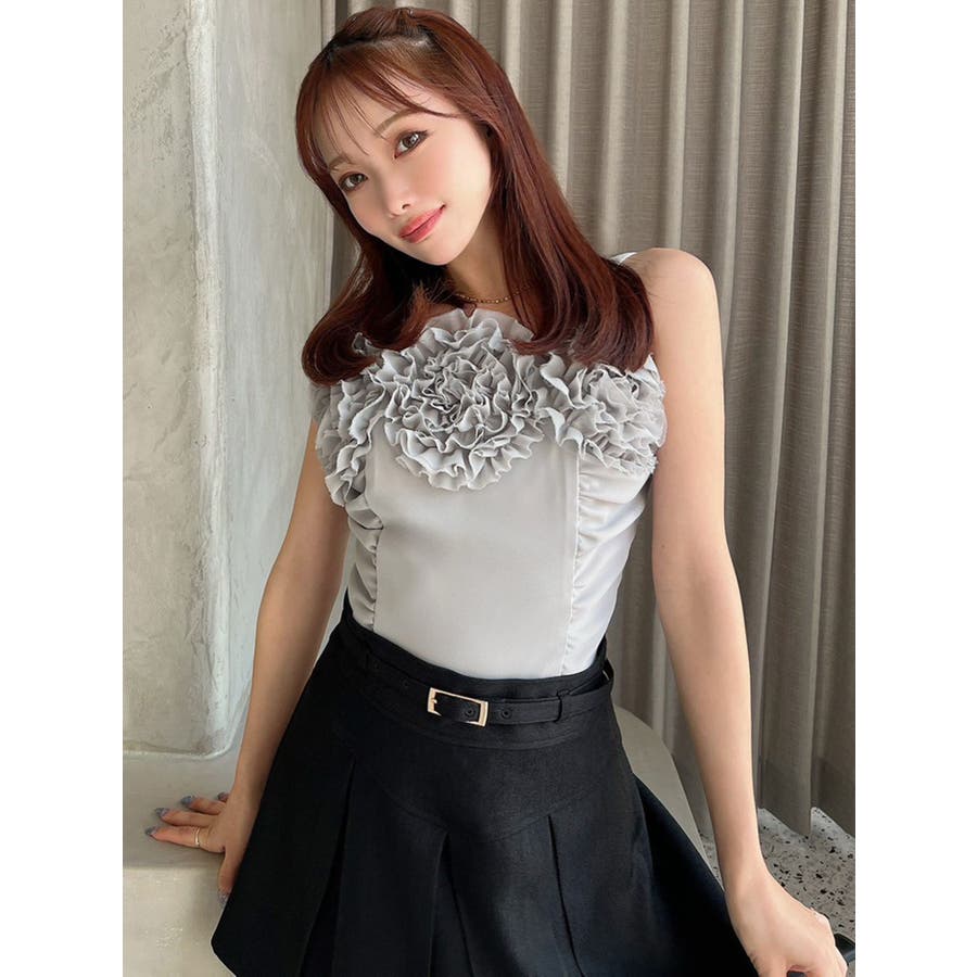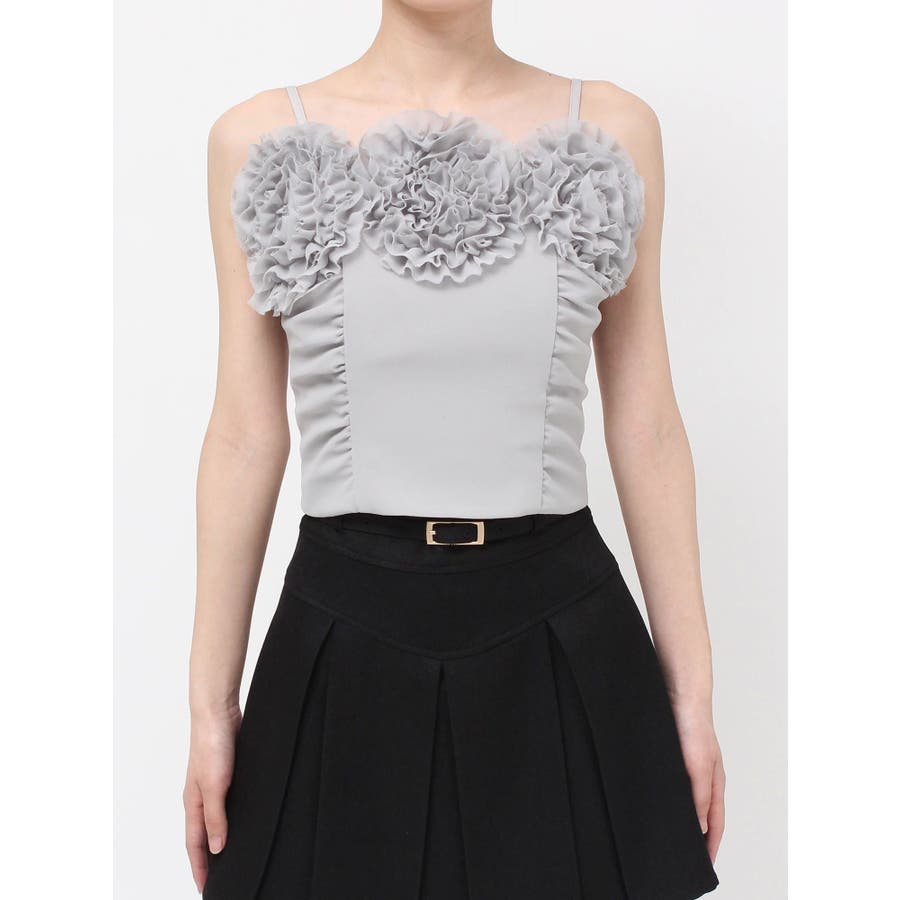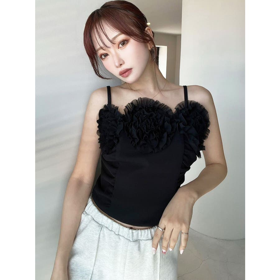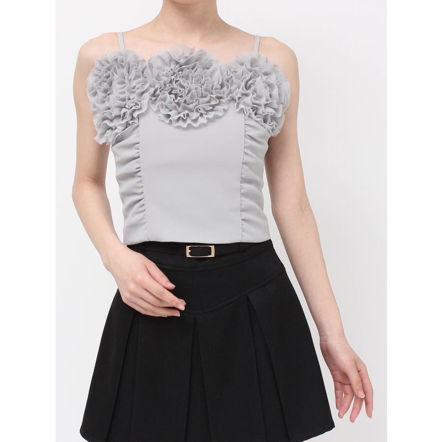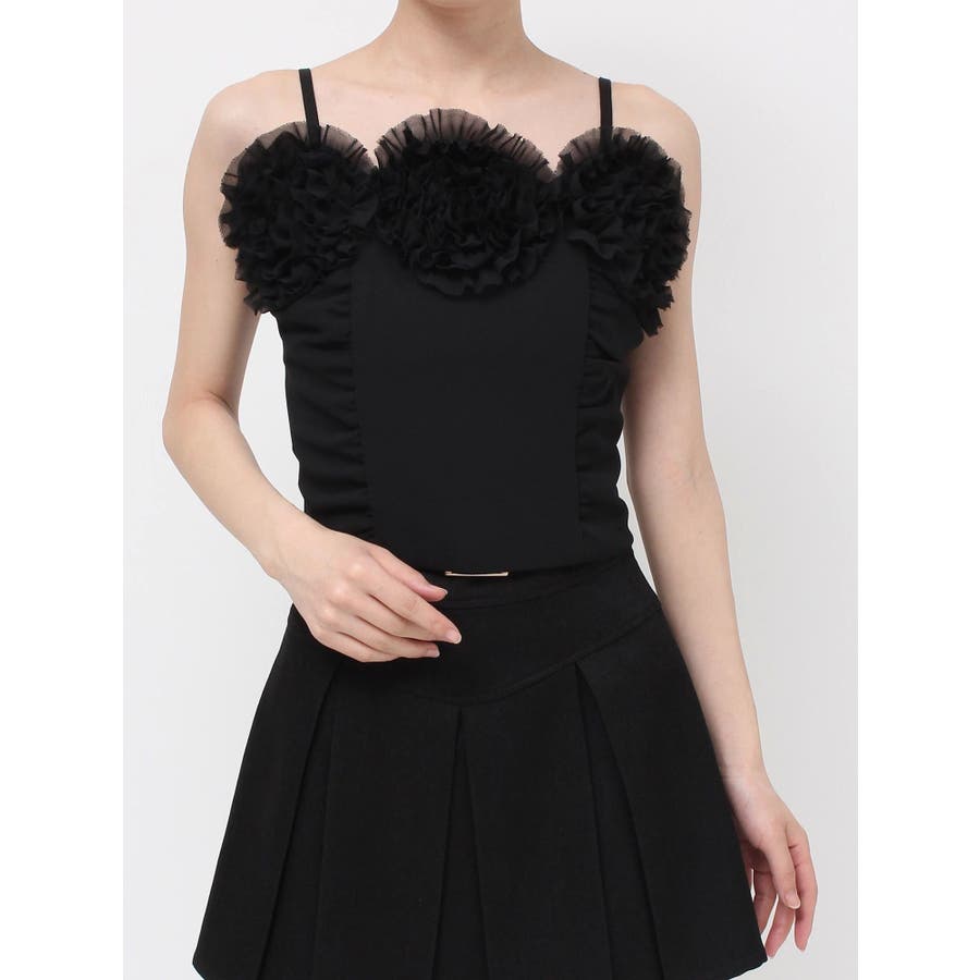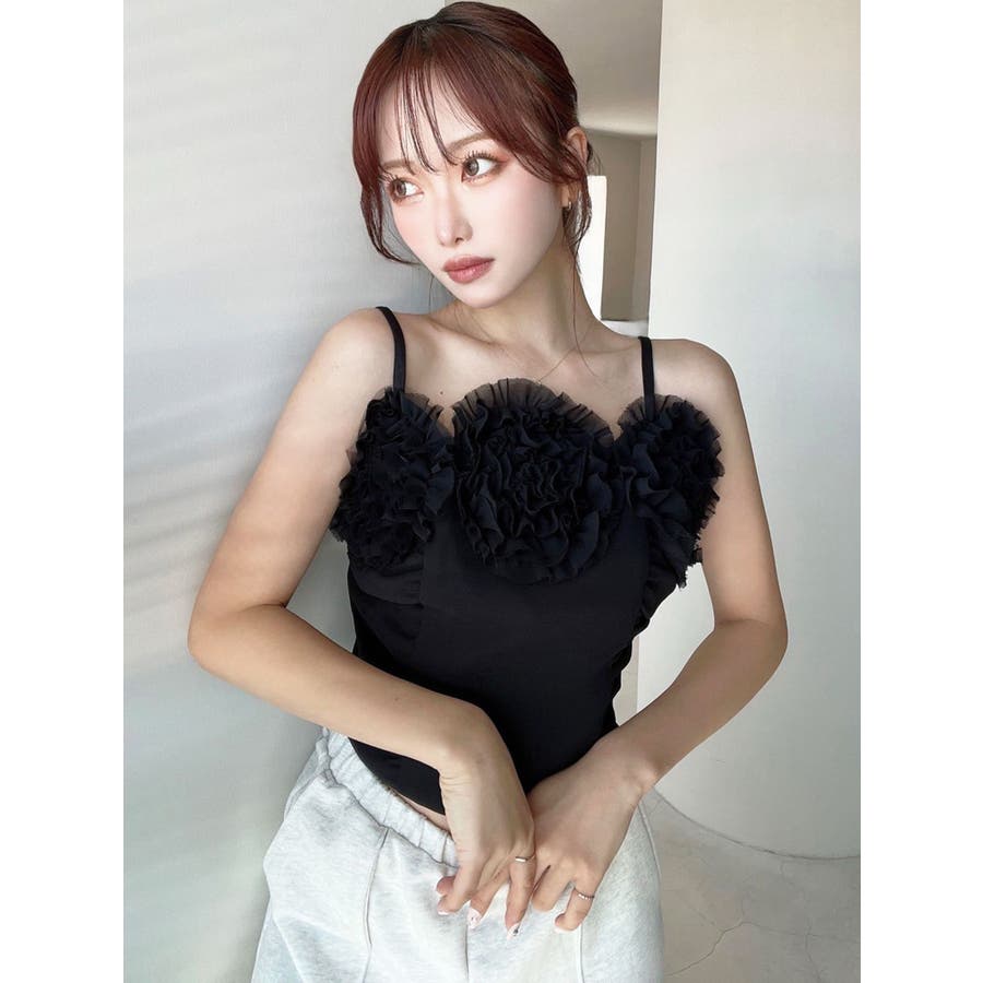 F: バスト一部ゴム仕様:74~86cm/前下がり調節可能cm/総丈29cm/計量約128g
