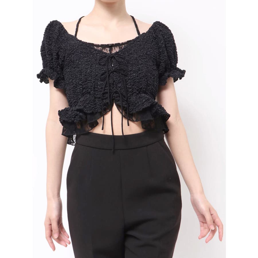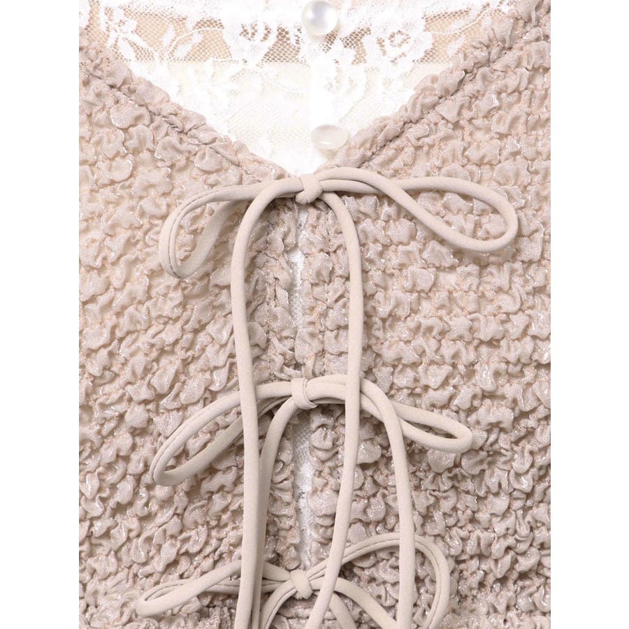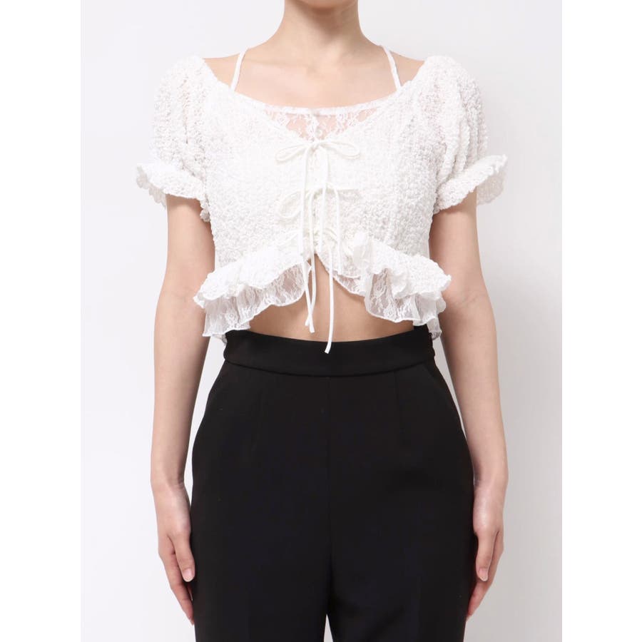 | 素材 | 本体:ポリエステル66% ナイロン33% ポリウレタン1% レース:ナイロン87% ポリウレタン13% 裏地:ポリエステル100% |